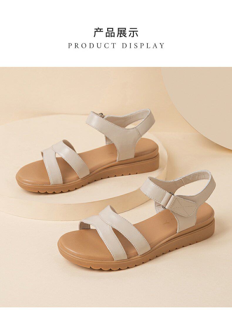 Сандалии для матери, летняя комфортная обувь, 2023, из натуральной кожи, мягкая подошва, для среднего возраста
