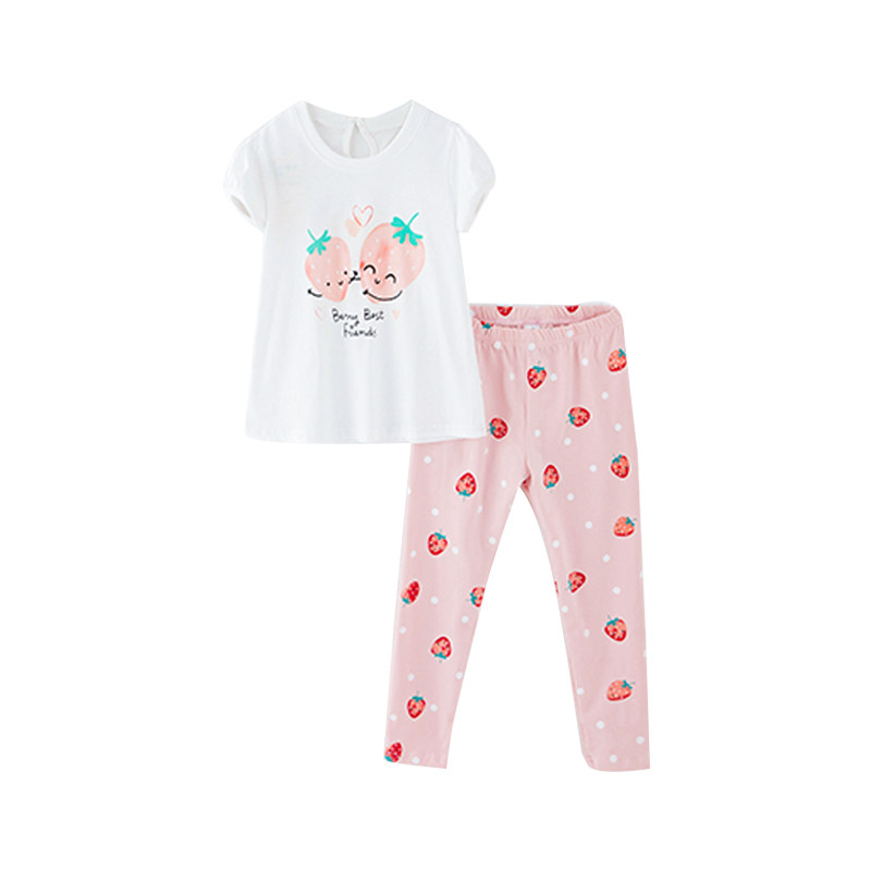Летние нарукавники, хлопковый комплект, клубника, футболка, штаны, короткий рукав, рукава фонарики