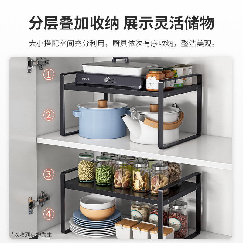 Выдвижной кухонный шкаф многослойный стойка для хранения стойки столешницы с двумя слоями и стойкой для хранения тарелок принадлежности для домашних предметов.