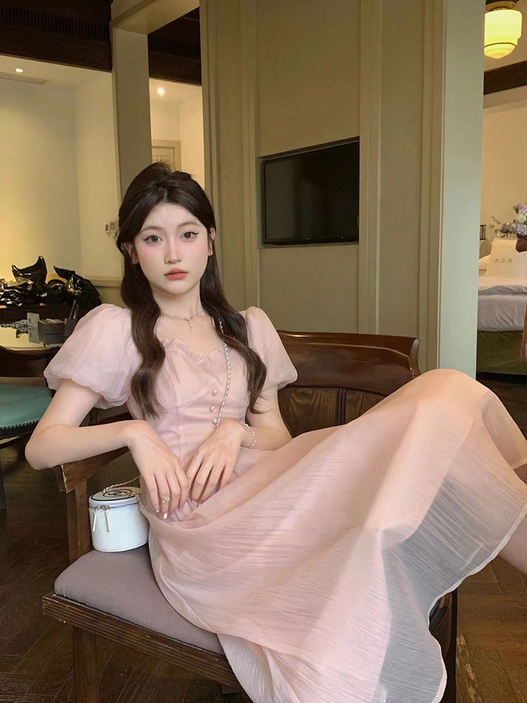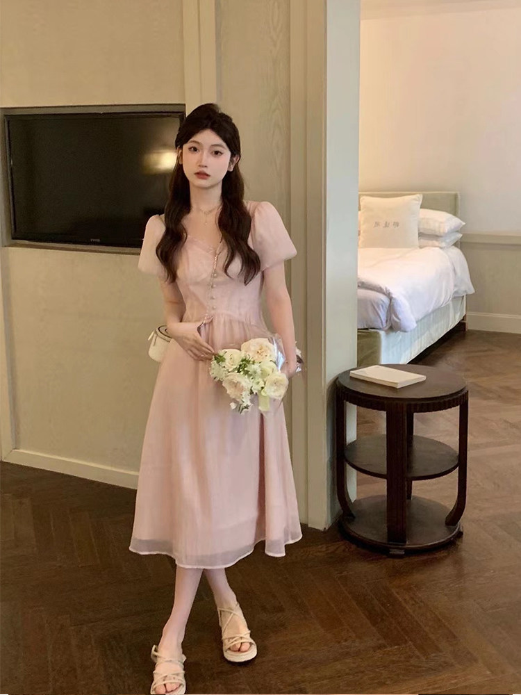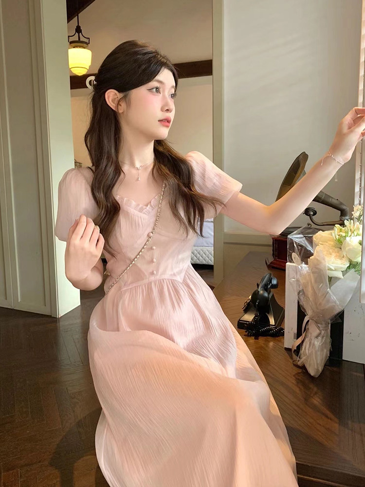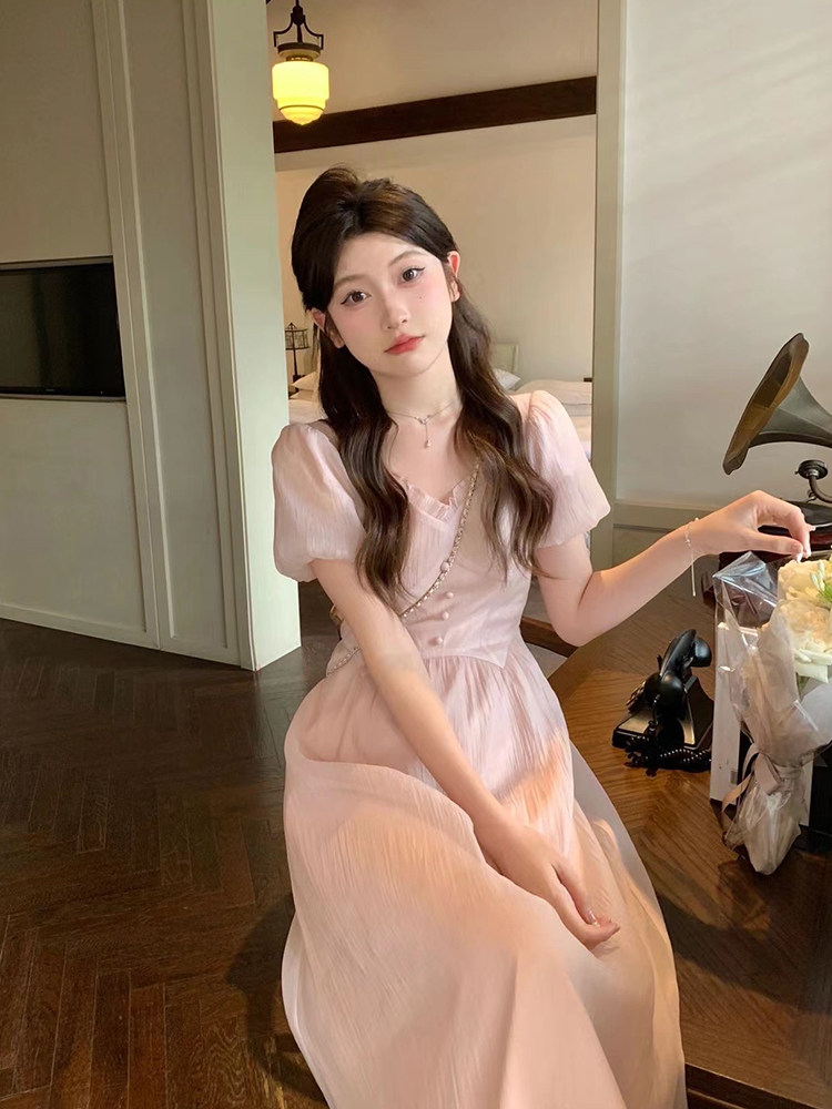Розовое платье, летняя длинная юбка, подходит для подростков, французский стиль, по фигуре