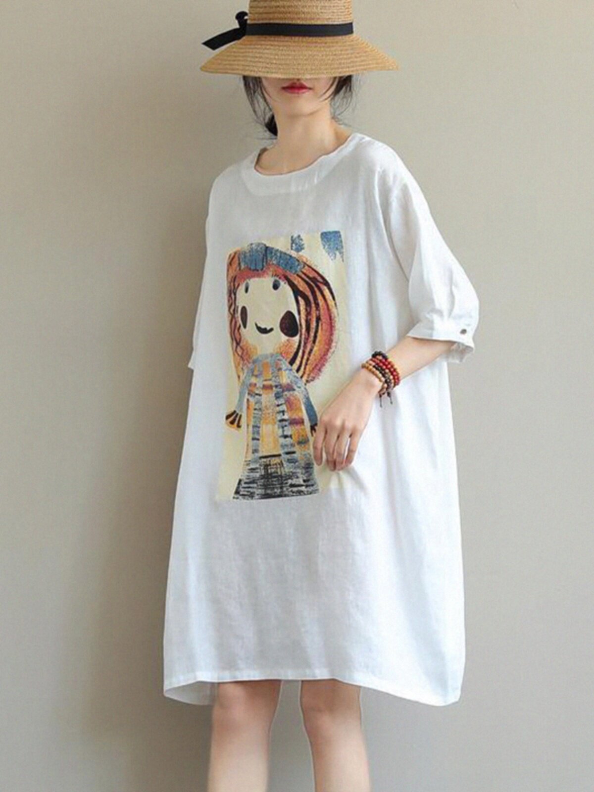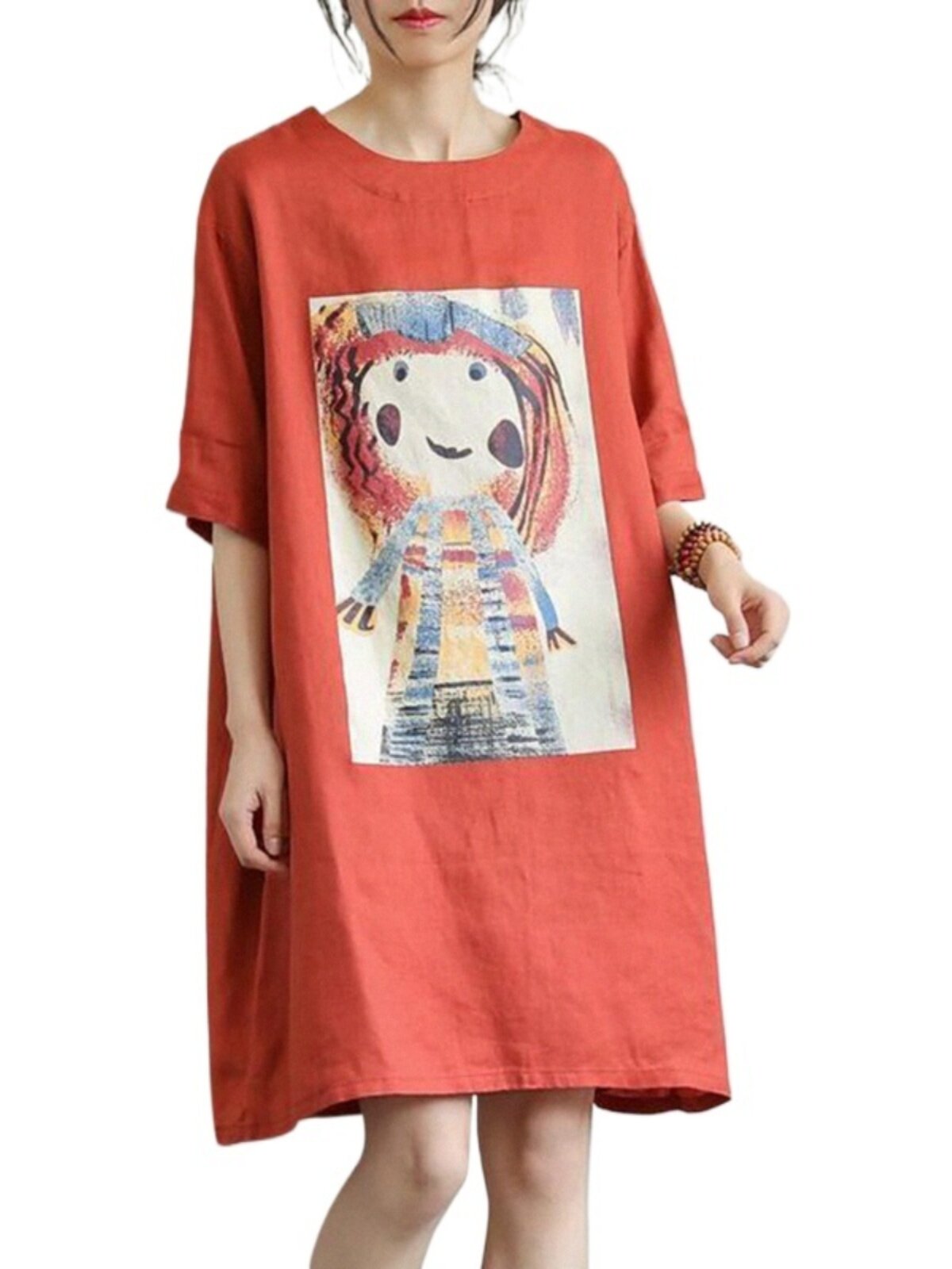 Мультяшная футболка, платье-футболка, длинная юбка, платье, большой размер, по фигуре, в западном стиле, средней длины, короткий рукав, с рукавом