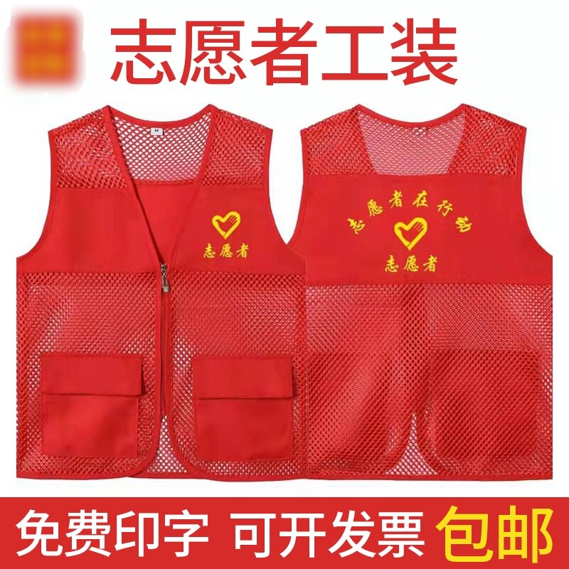 Волонтер жилет Custom Public Activity Clothing Summer Net Yarn Mahze Party Party Party Holder Red Vest логотип печати логотип