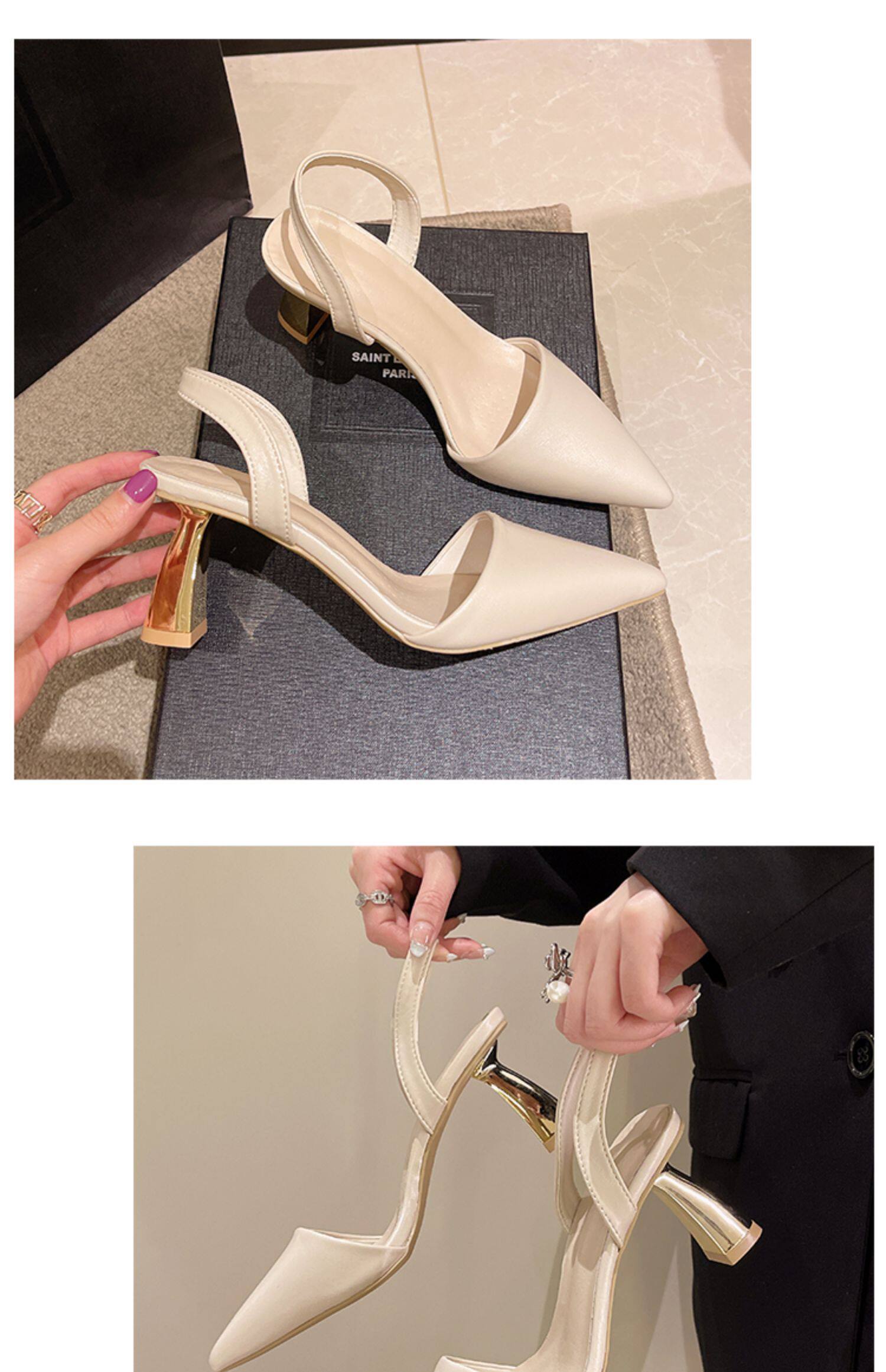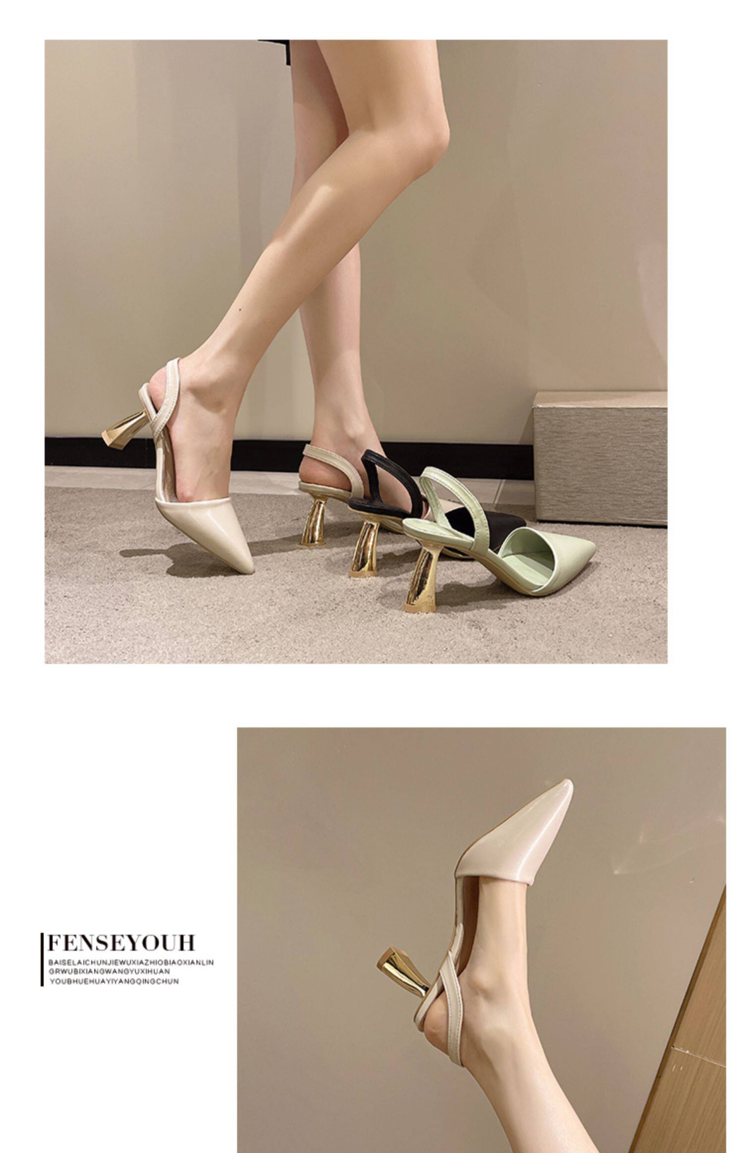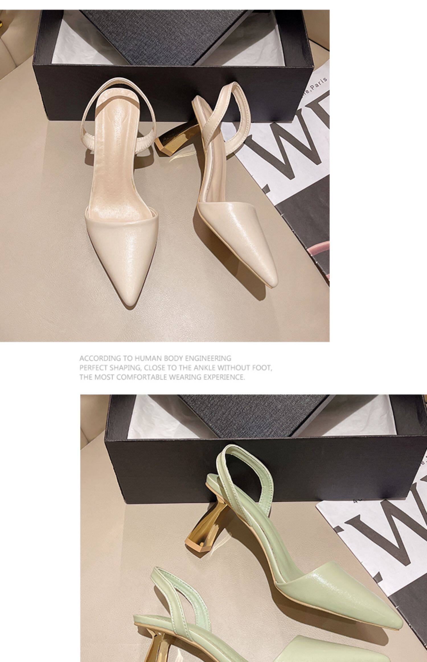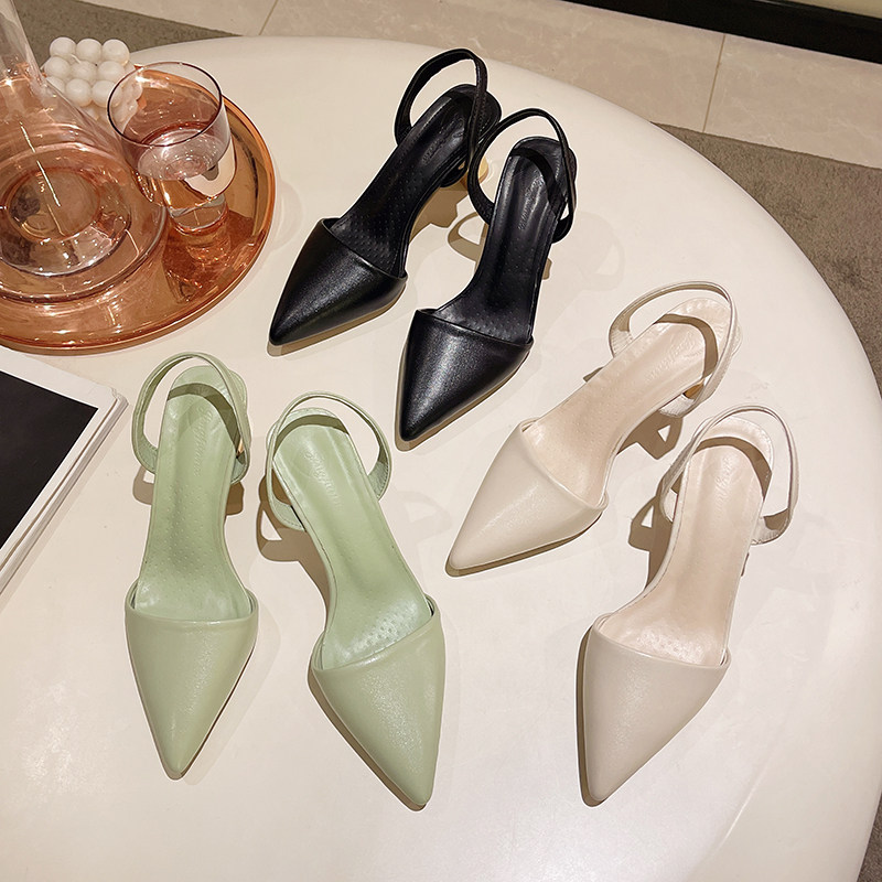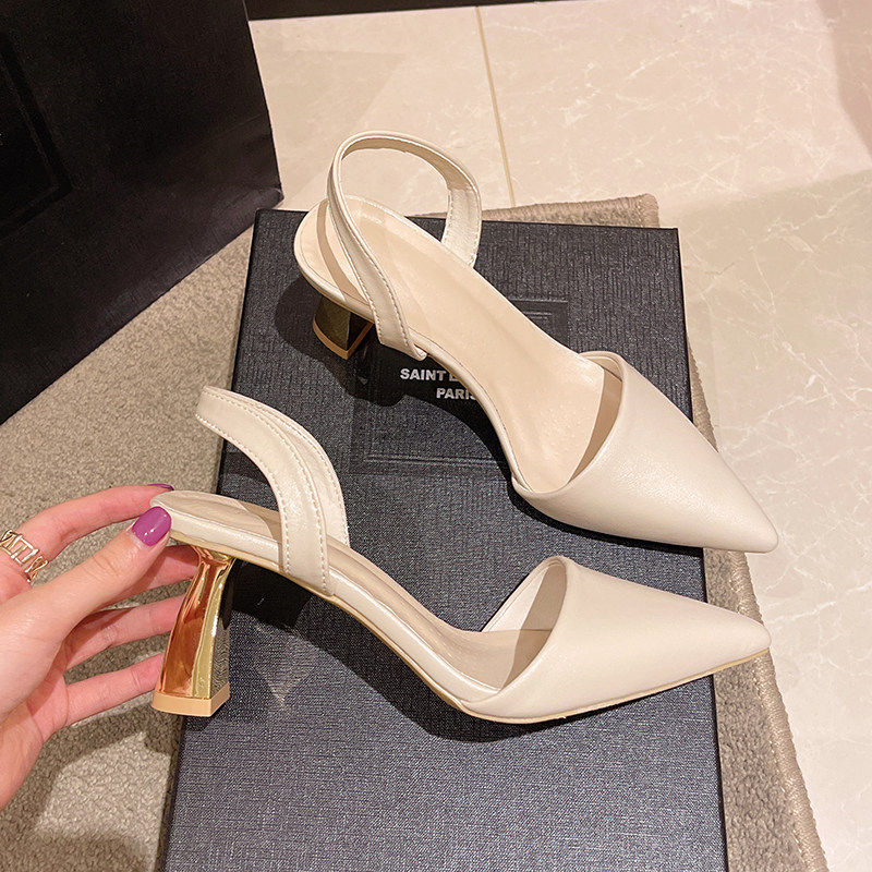 Сандалии, весенняя летняя нюдовая обувь с заостренным носом на высоком каблуке, французский ретро стиль, против усталых ног