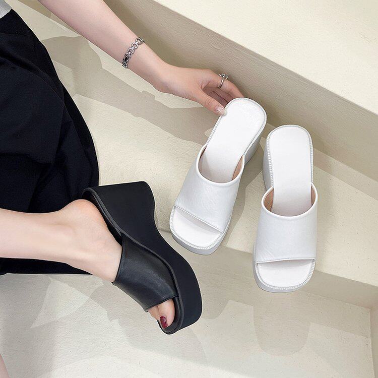 Сандалии из натуральной кожи для женской летней верхней одежды, модные туфли на танкетке 2025 года, новинка с квадратным носком, универсальные, легкие, туфли на толстой подошве, увеличивающие рост, на платформе.