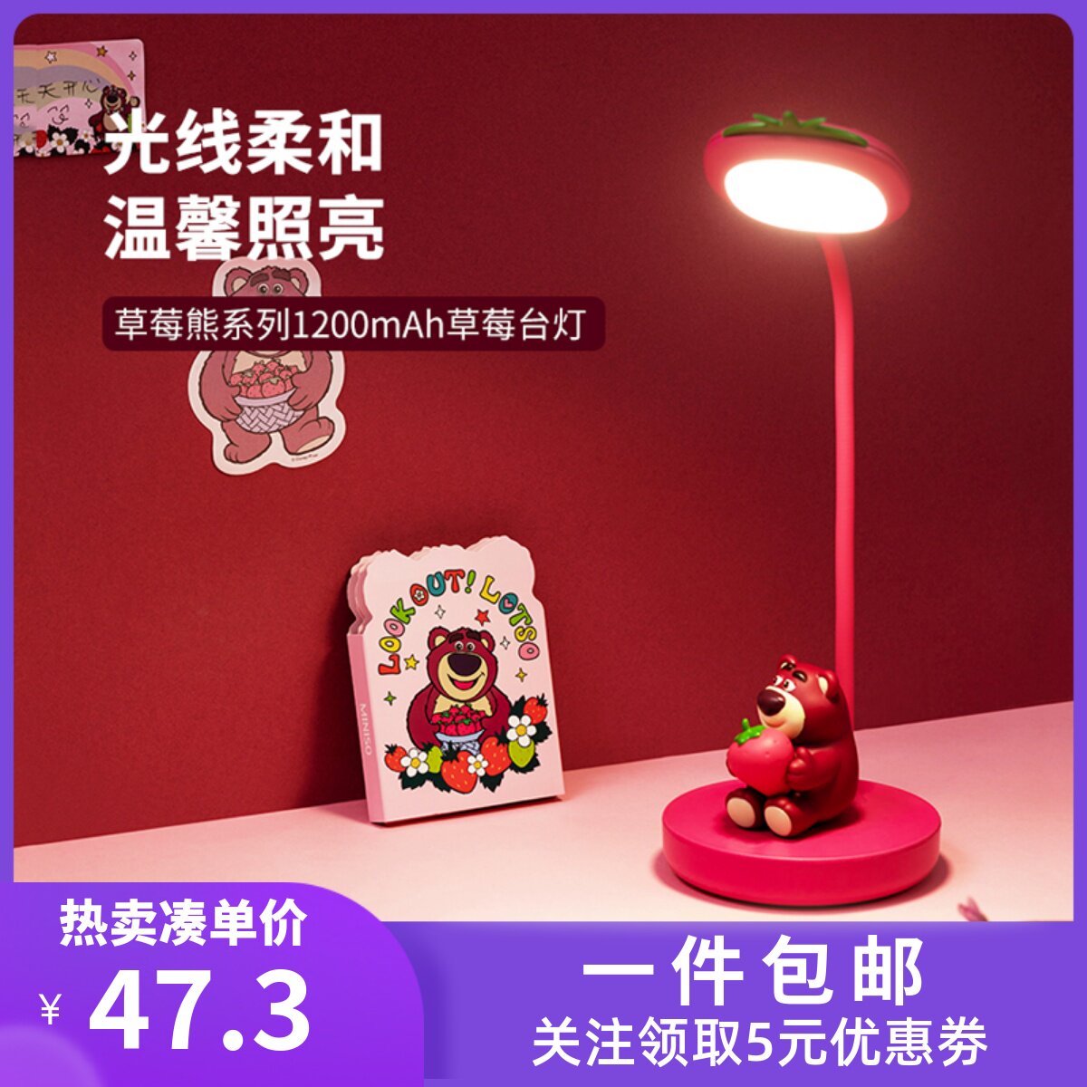 Miniso, клубника, обучающая настольная лампа, ночник для школьников, защита глаз