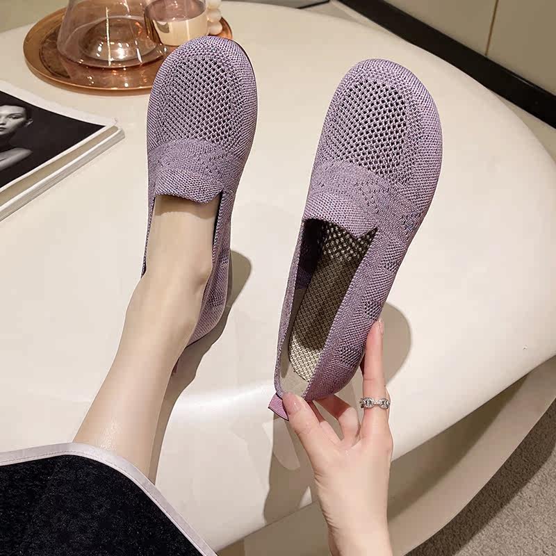 Летние слипоны, дышащая нескользящая плоская подошва обувь для матери для отдыха