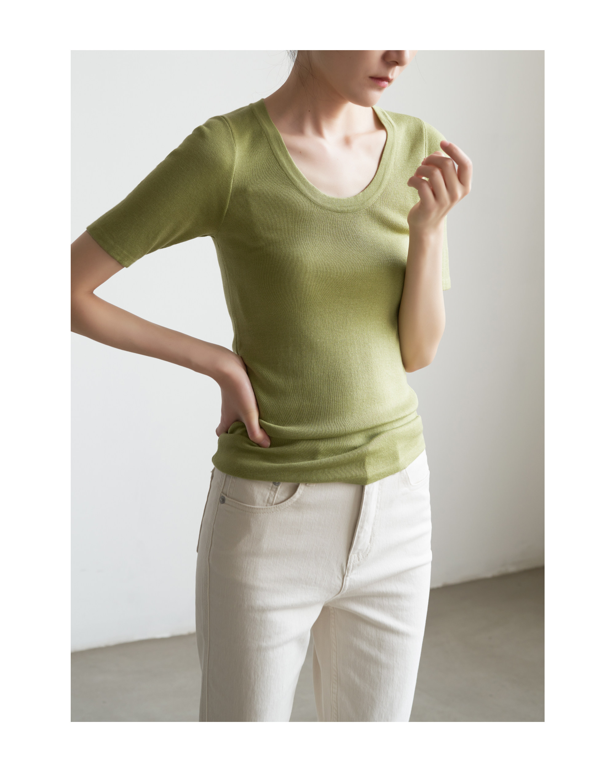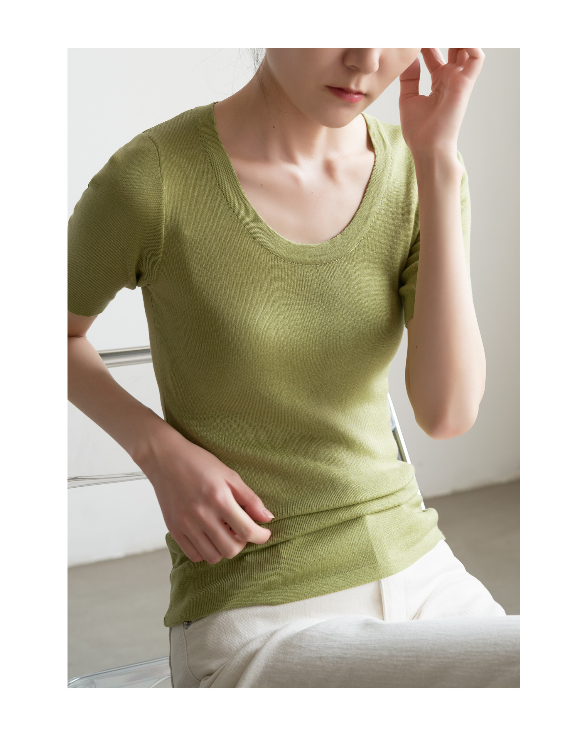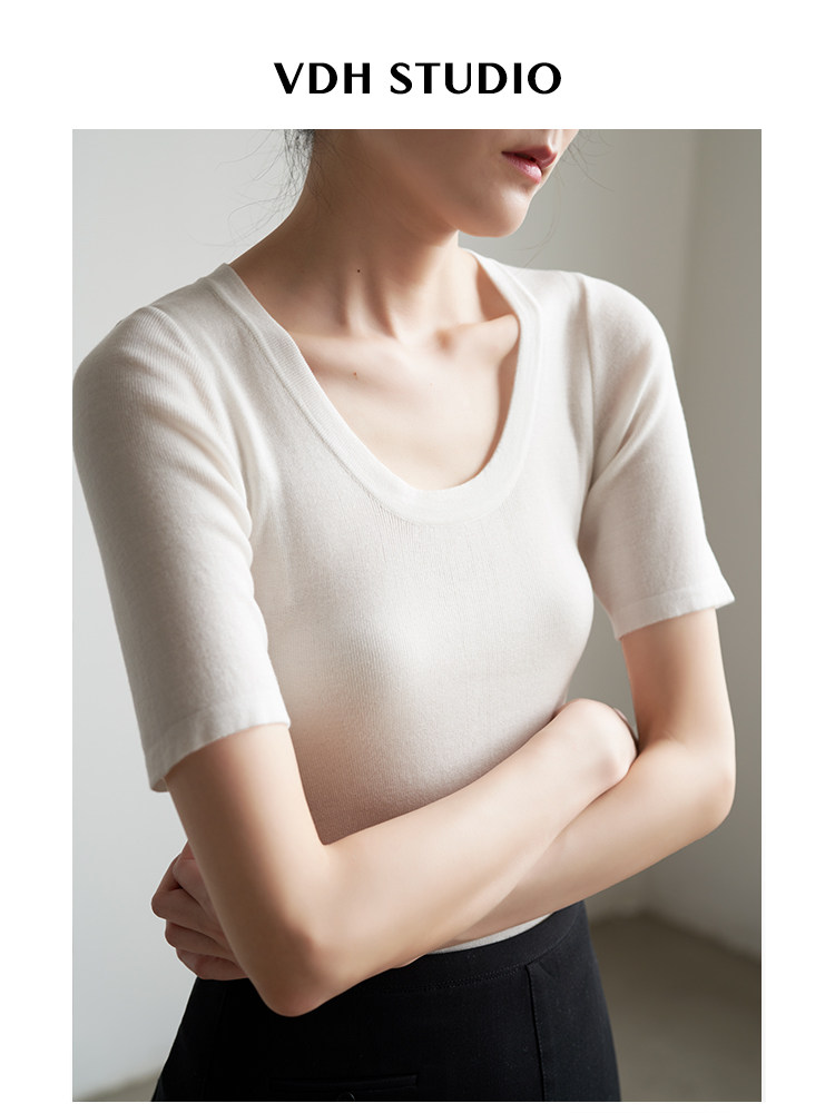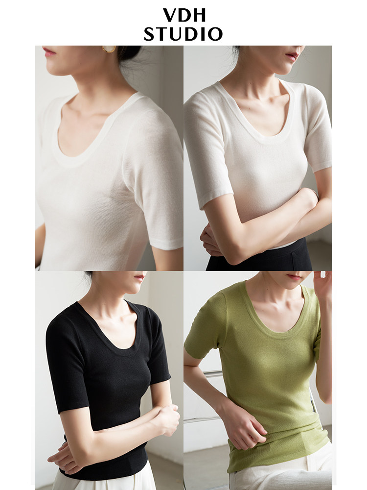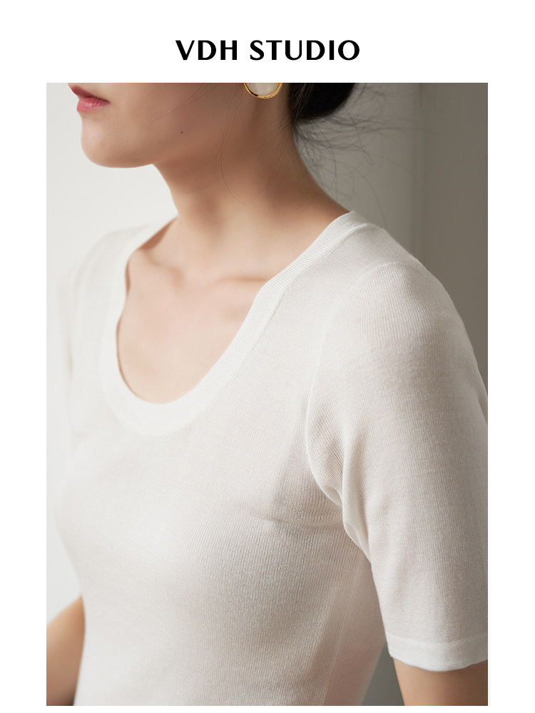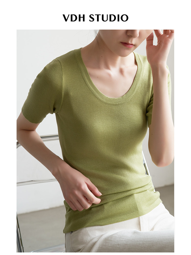 Шелковый трикотажный тонкий летний свитер, облегающий крой