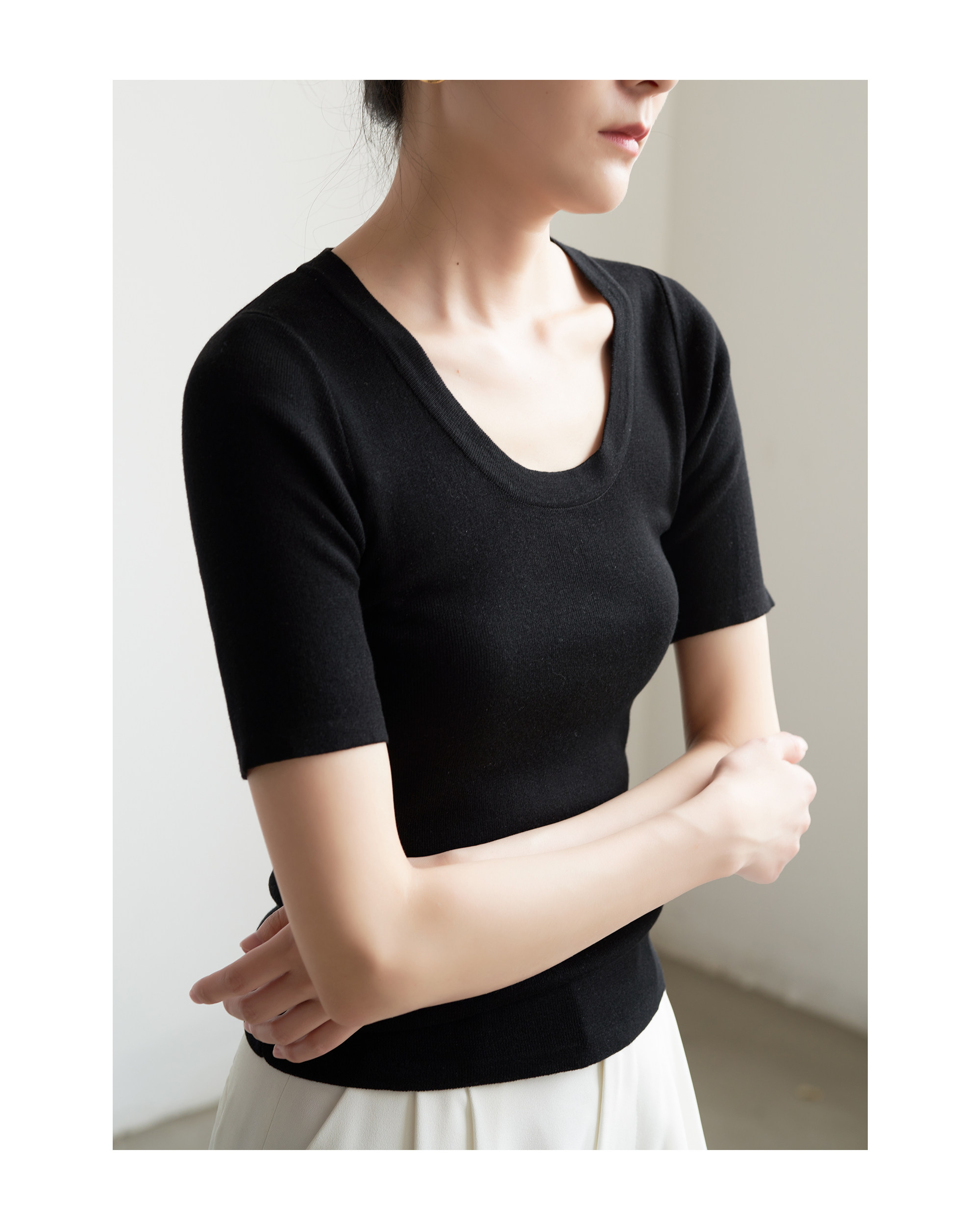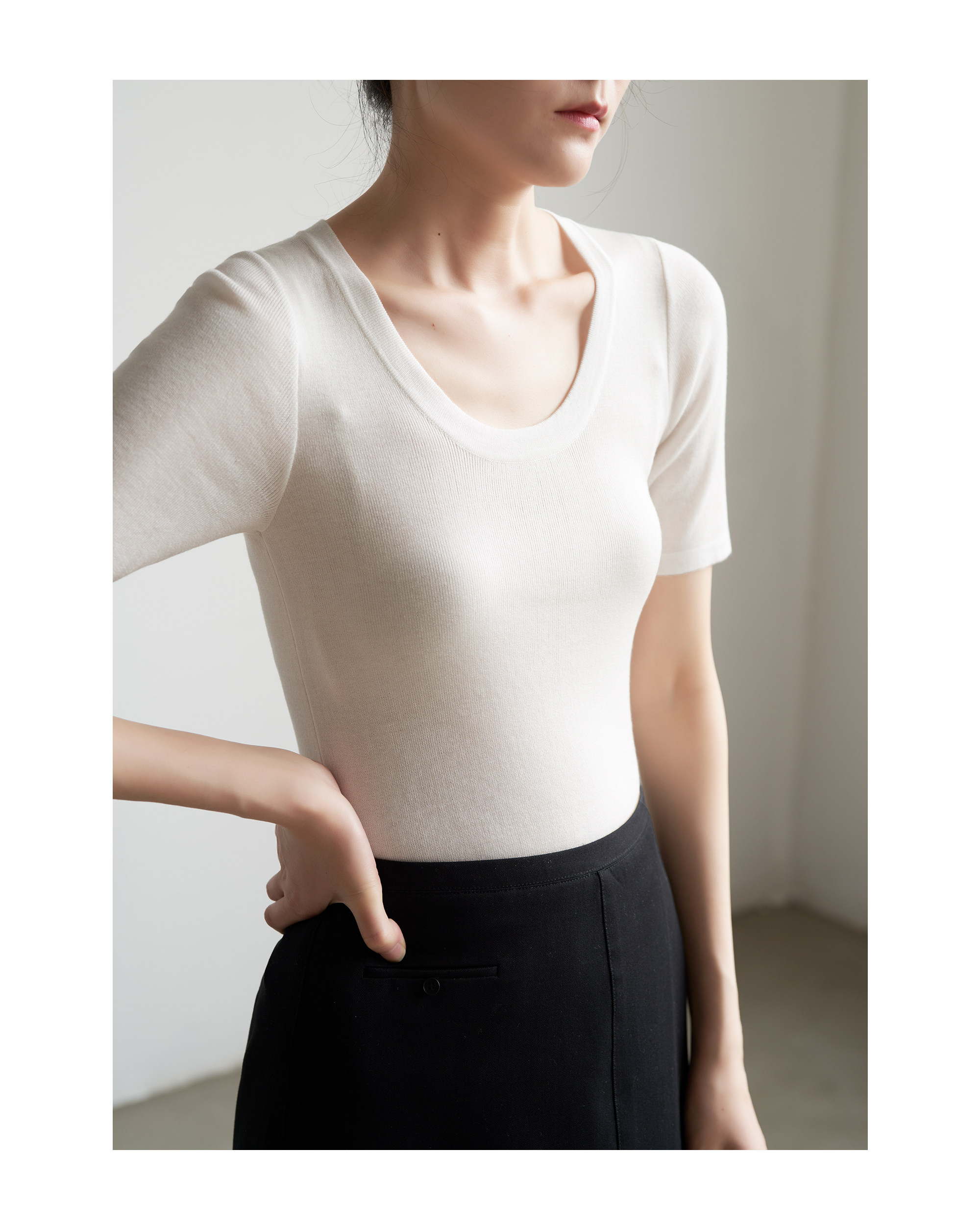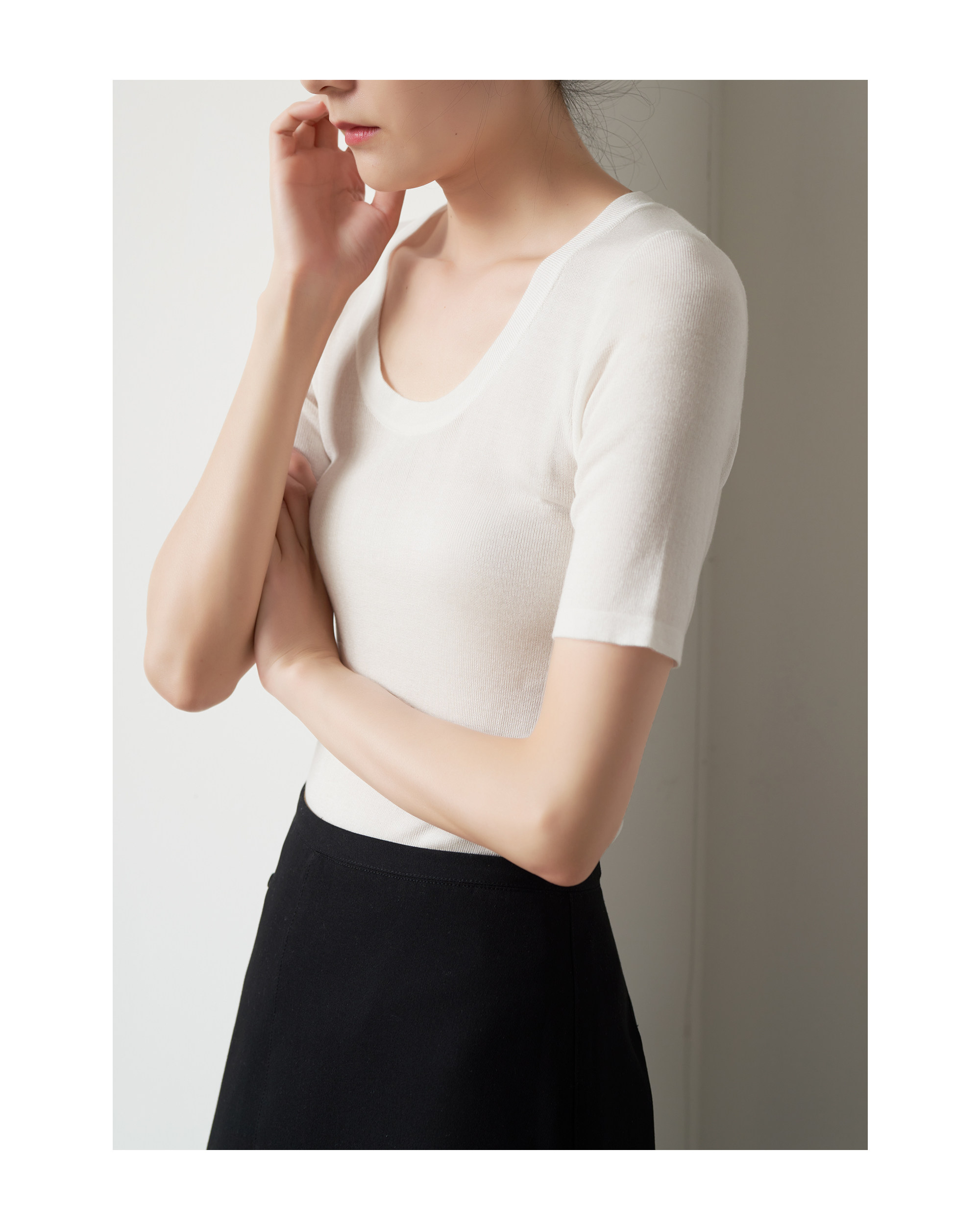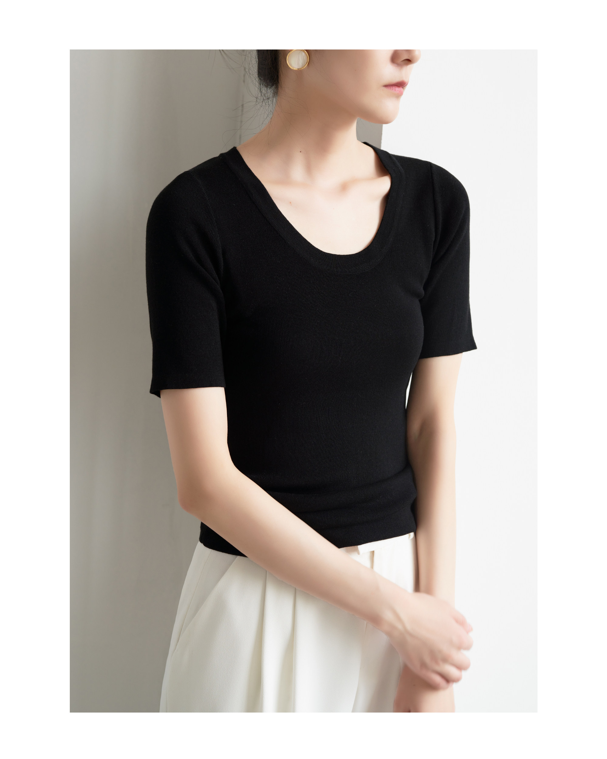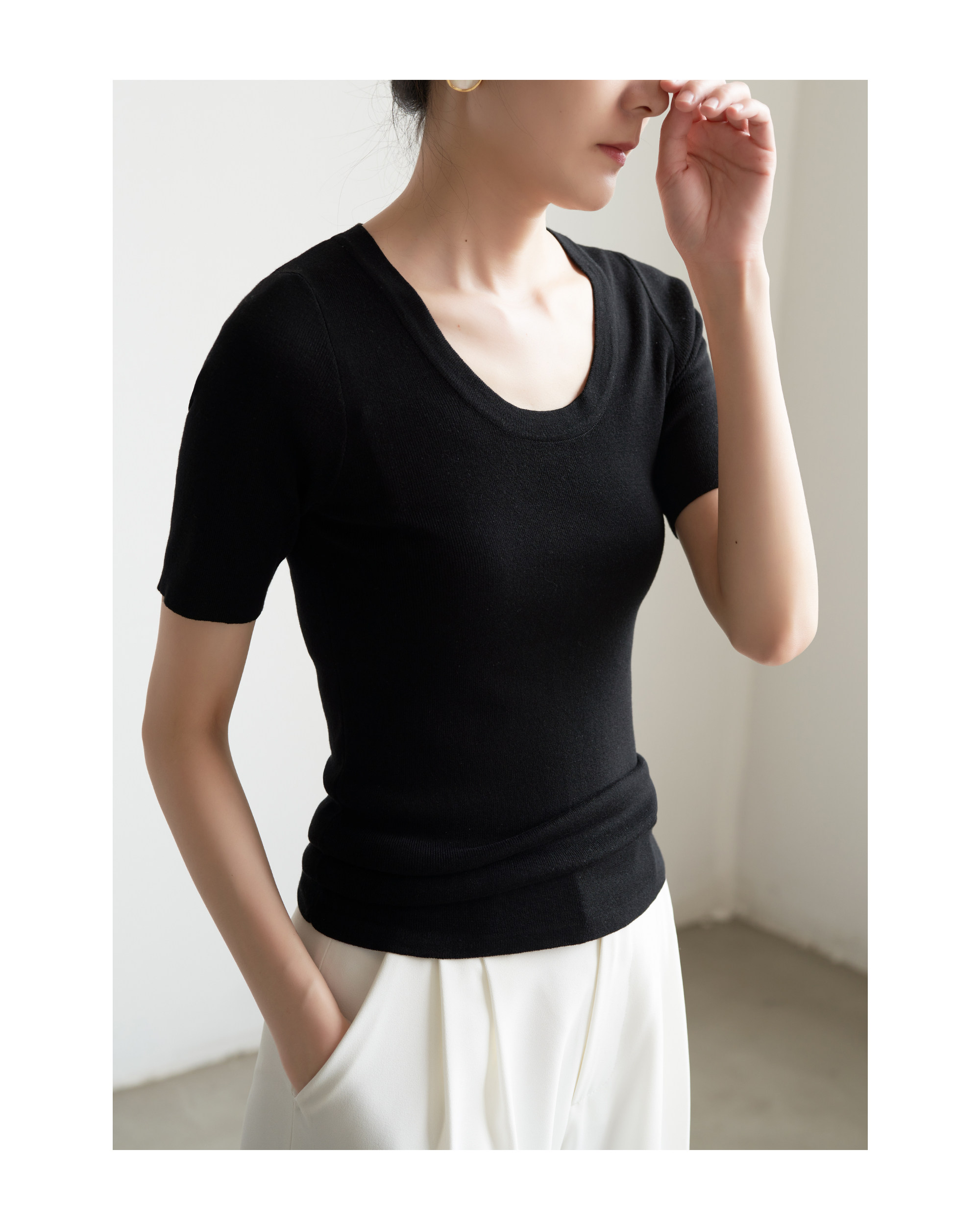 Шелковый трикотажный тонкий летний свитер, облегающий крой
