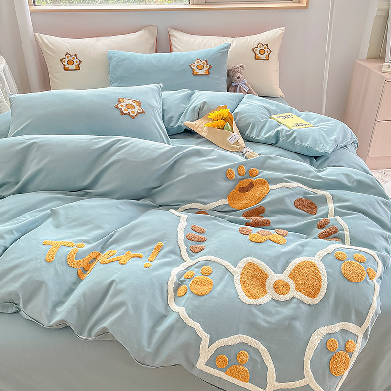 Мультяшный хлопковый комплект, хлопковая простыня, пододеяльник, покрывало, 4 предмета, 3 предмета