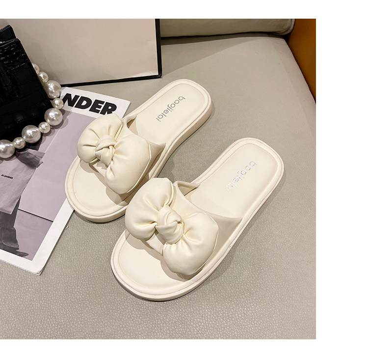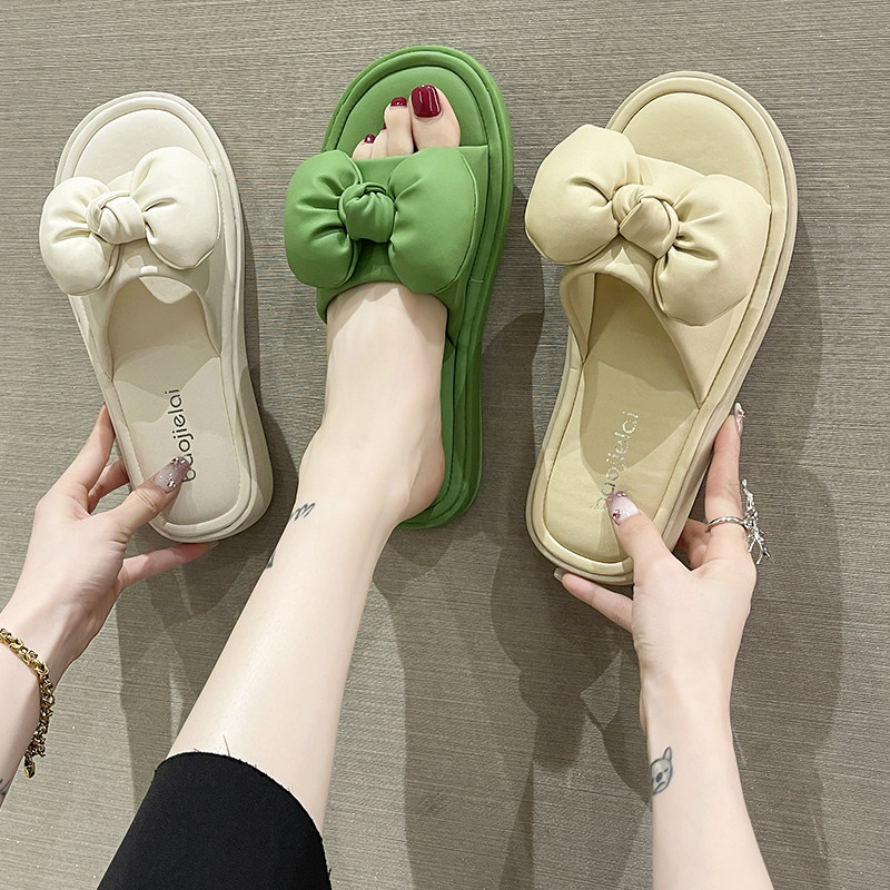 Тапочки с бантиком, универсальная летняя пляжная нескользящая обувь на плоской подошве, популярно в интернете