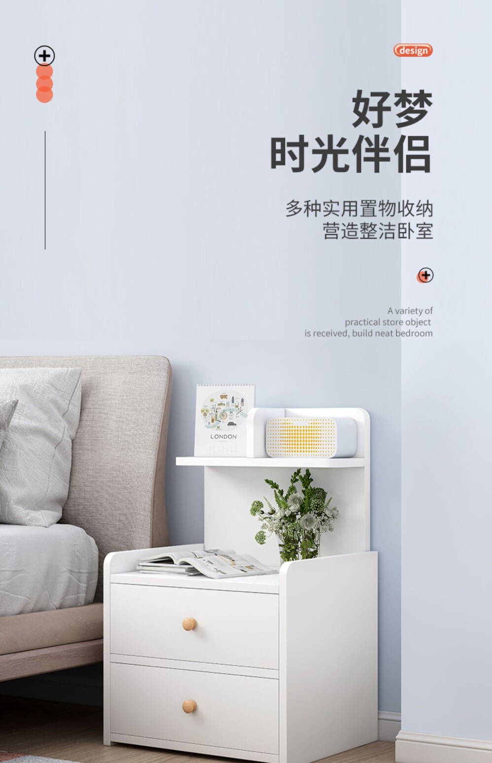 Спальня для кровати, спальня современная минималистская маленькая полка простые хранения хранения.