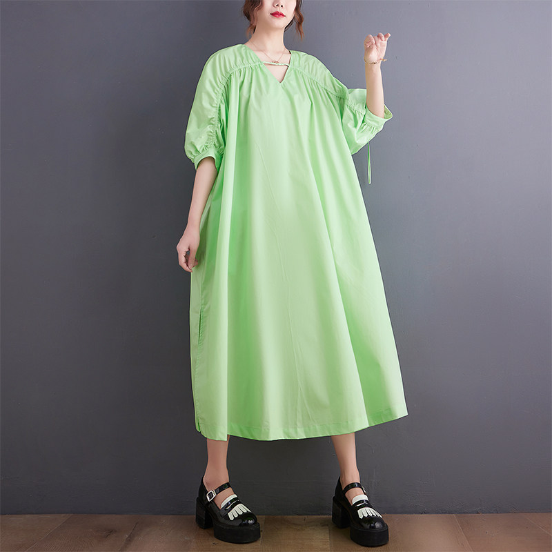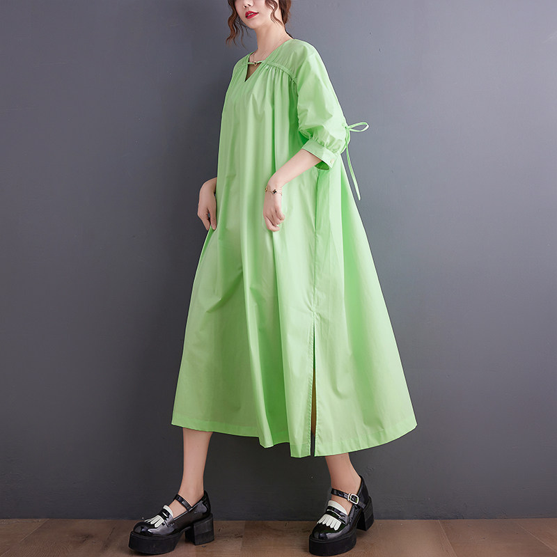 Цветное платье для отдыха, тонкая длинная юбка, большой размер, V-образный вырез, на шнурках, средней длины