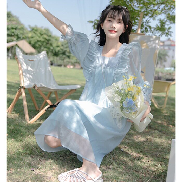 Кукла, летнее свежее платье, милая длинная длинная юбка, новая коллекция, французский стиль, А-силуэт, длина макси