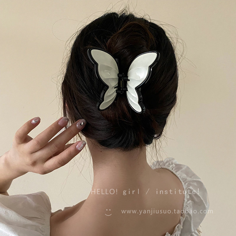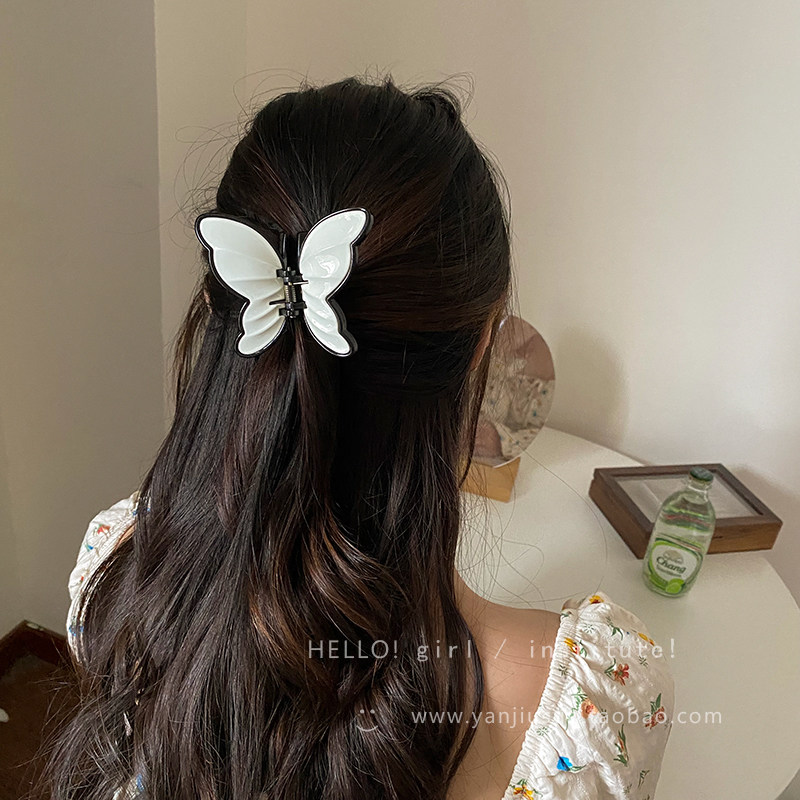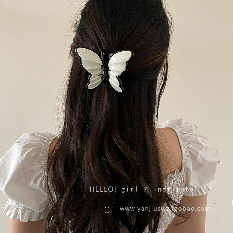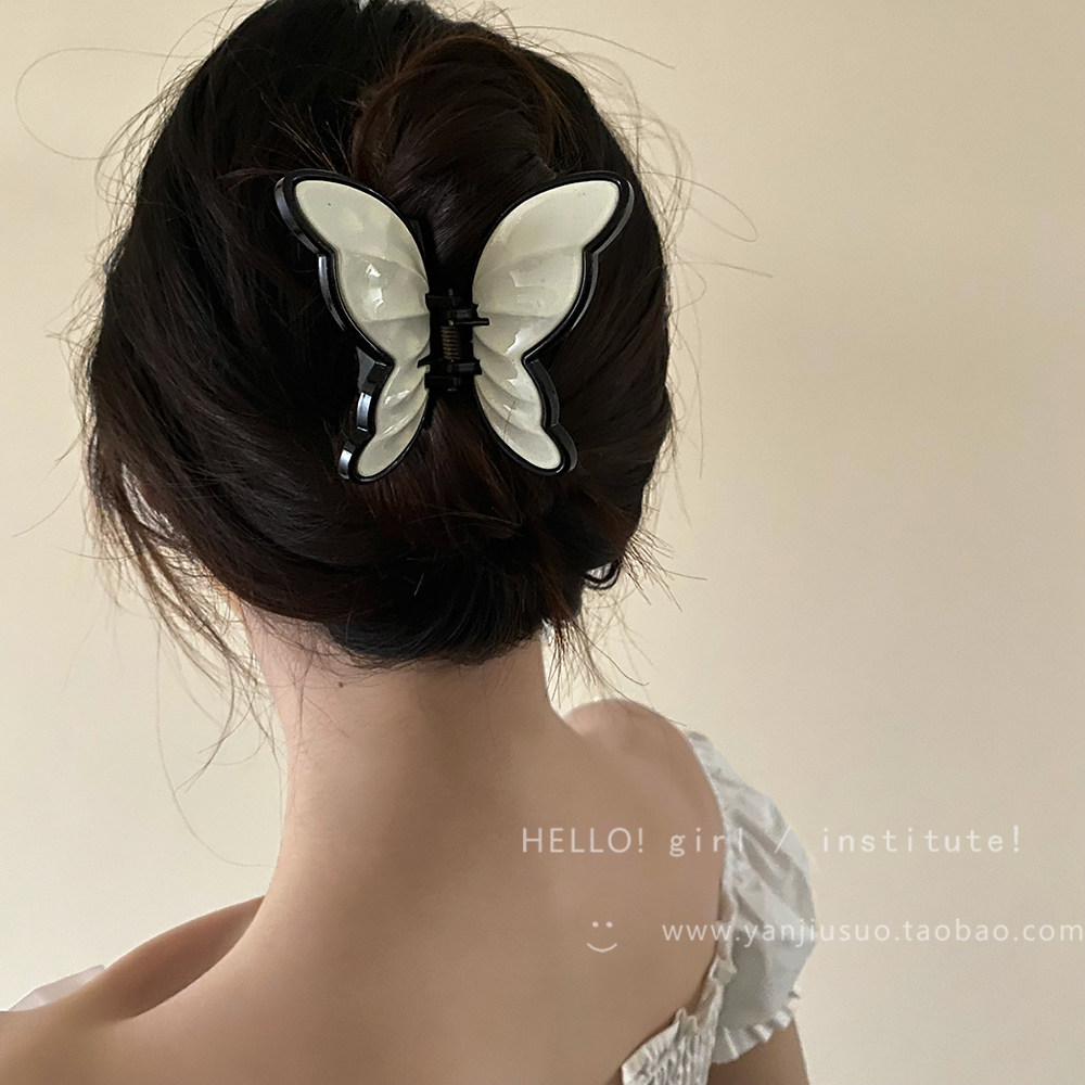 Ретро акриловая милая заколка-крабик с бабочкой, акула, заколка для волос, французский стиль, изысканный стиль, яркий броский стиль