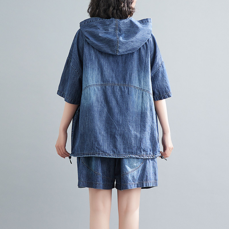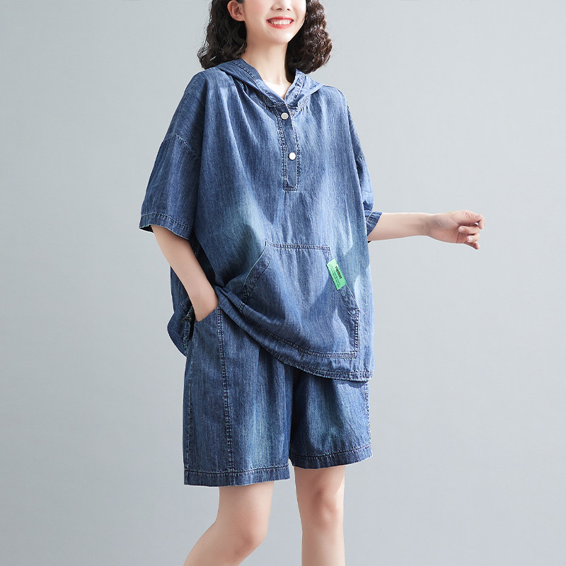 Летний джинсовый комплект, оверсайз, на шнурках