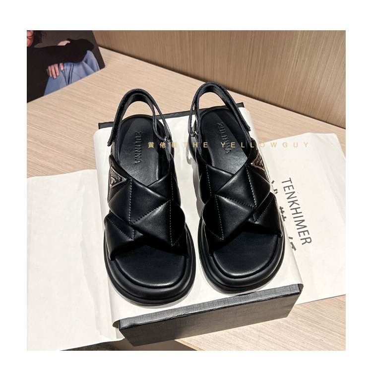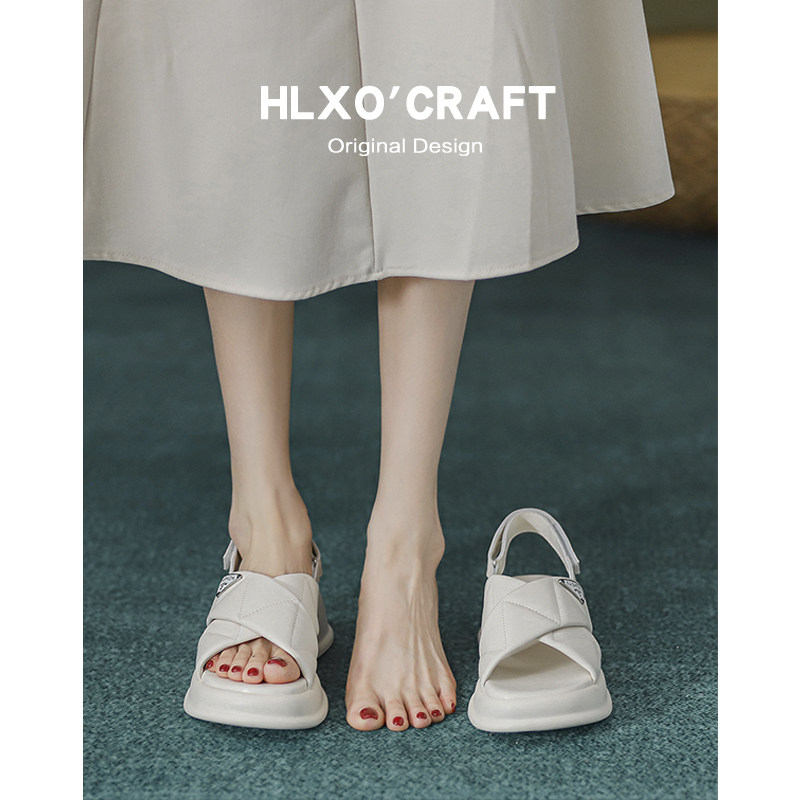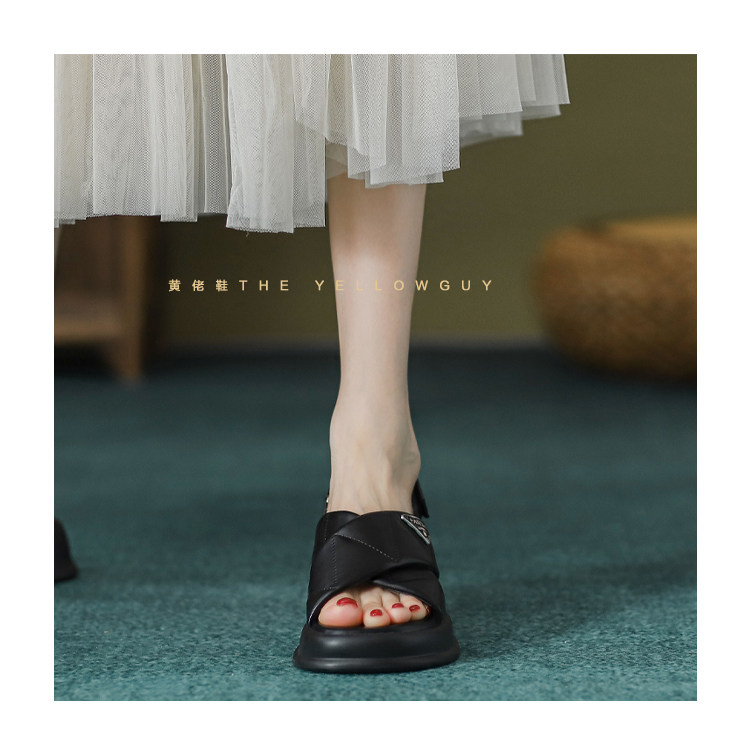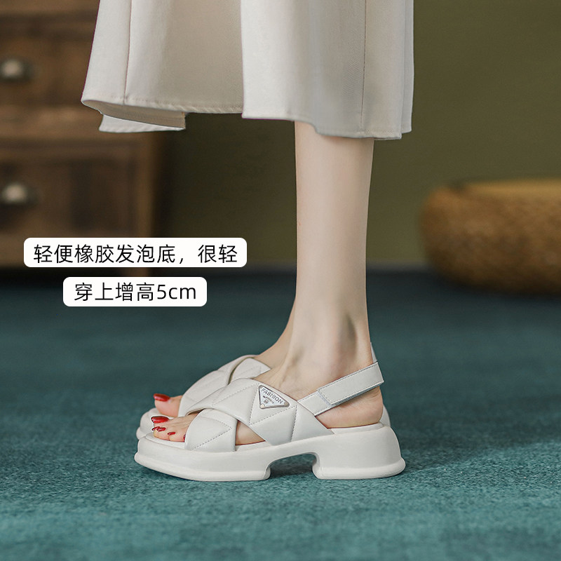 Сандалии, обувь, высокие слайдеры на платформе на липучке, тапочки, из натуральной кожи, 2023