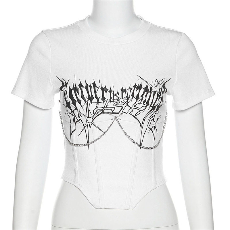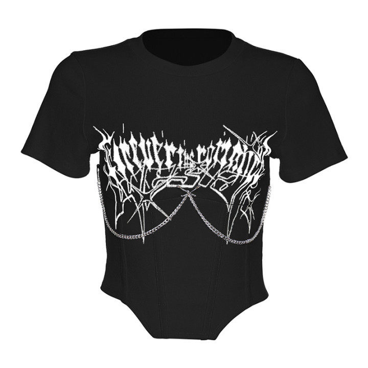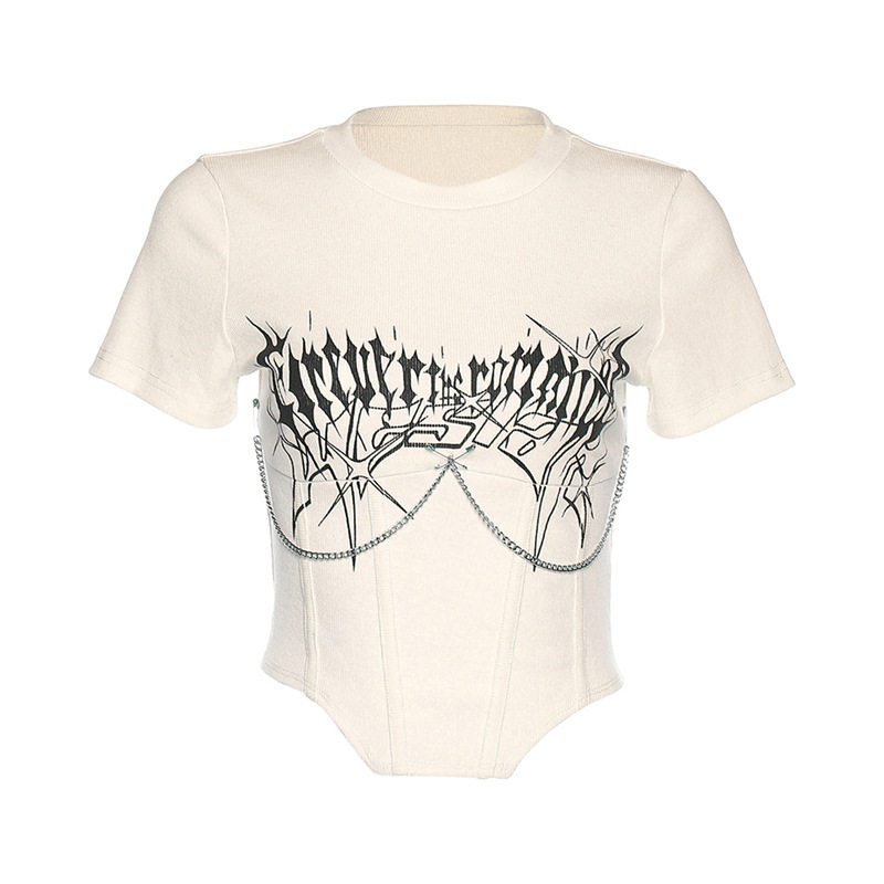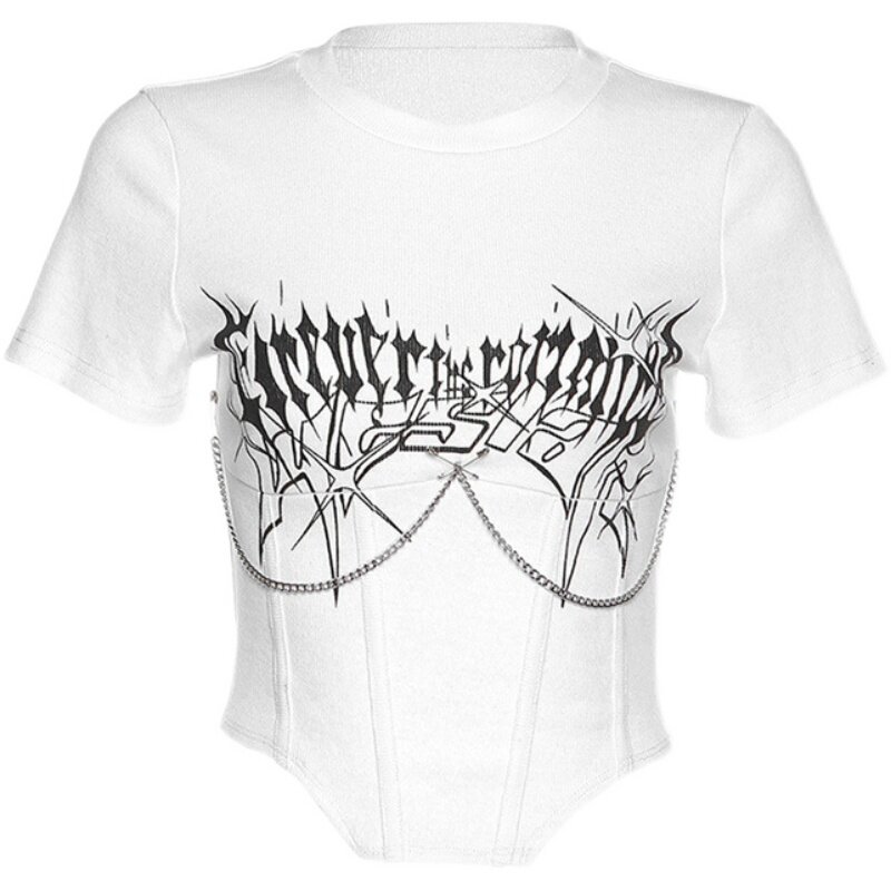 Брендовая футболка, дизайнерский короткий корсет, европейский стиль, тренд сезона