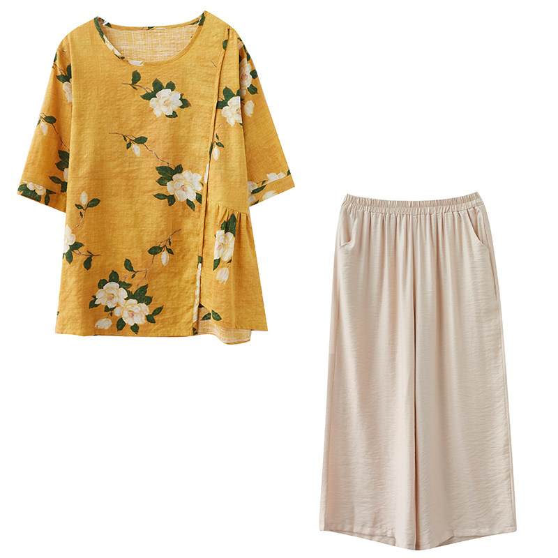 Летний комплект, футболка для матери, штаны для отдыха, большой размер, из хлопка и льна, оверсайз