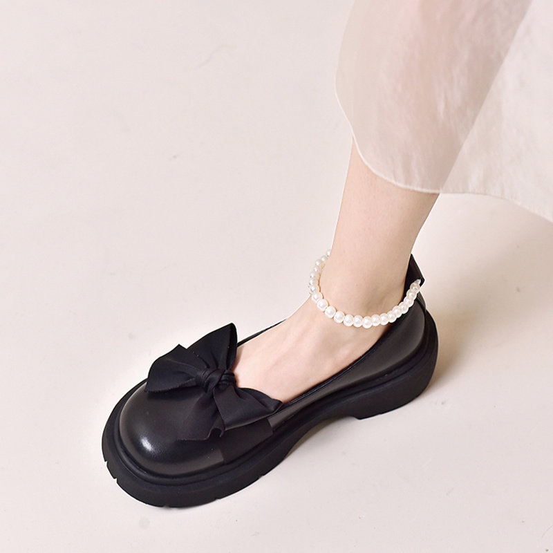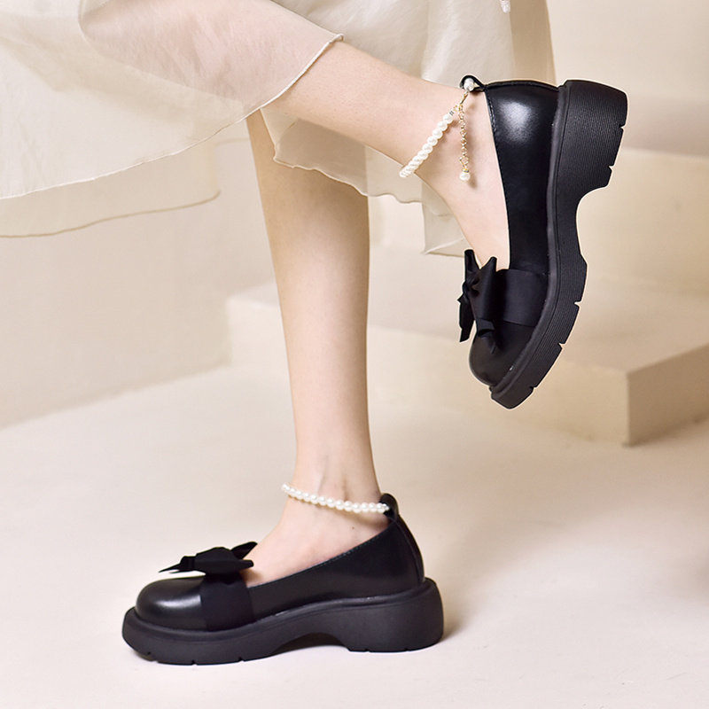 Летняя нескользящая универсальная обувь с бантиком на платформе для кожаной обуви, французский ретро стиль, коллекция 2022