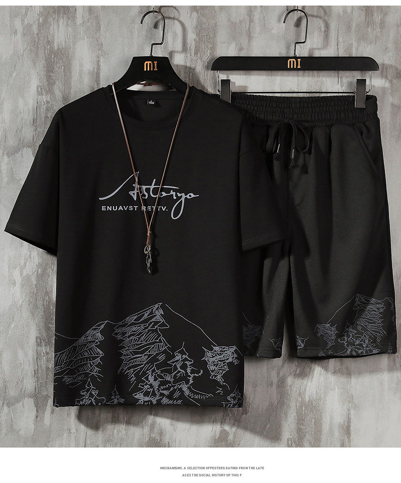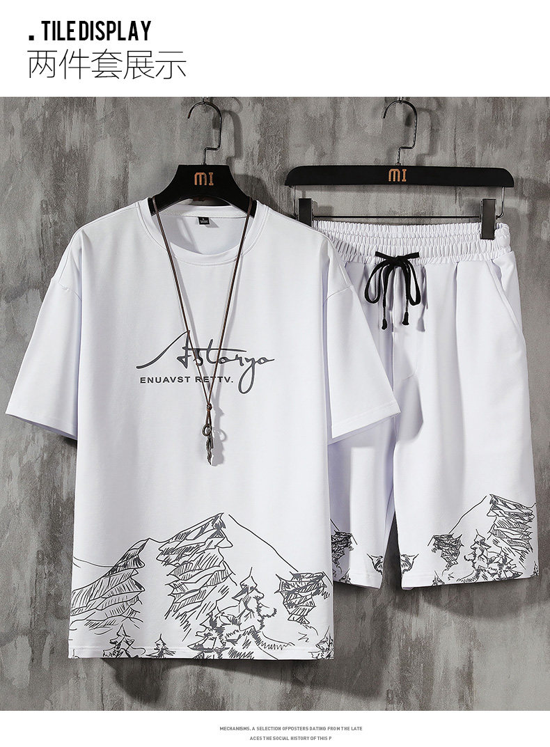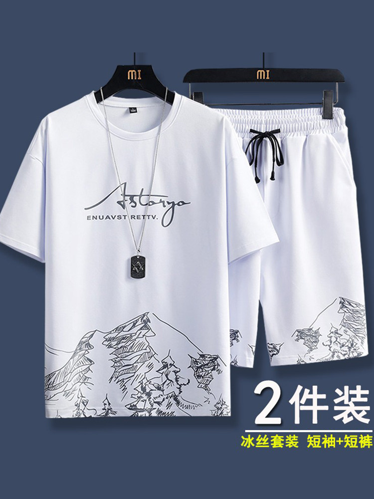 Тонкая быстросохнущая шелковая футболка с коротким рукавом, трендовый спортивный комплект для отдыха, оверсайз