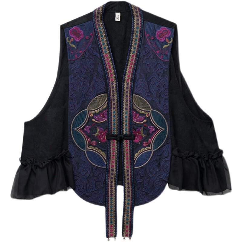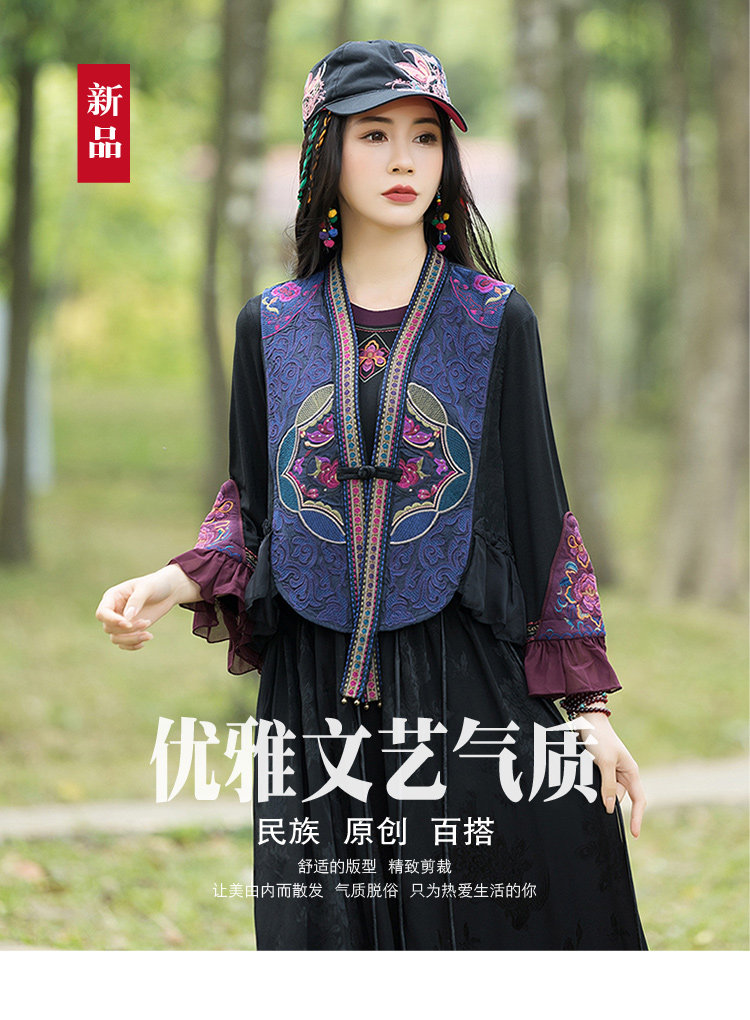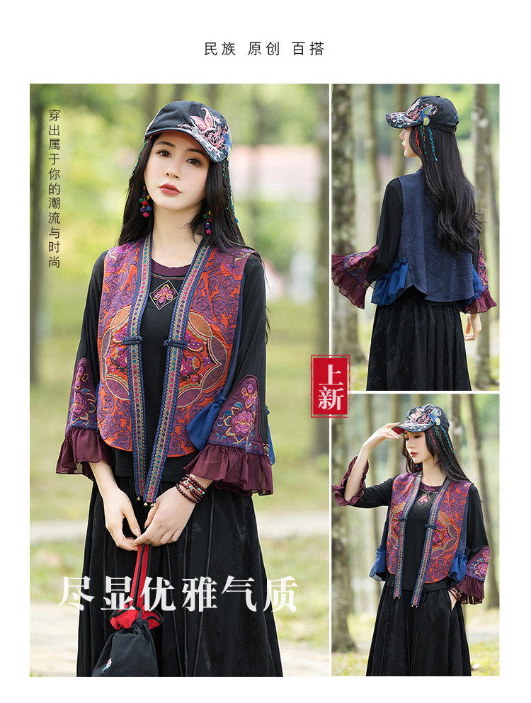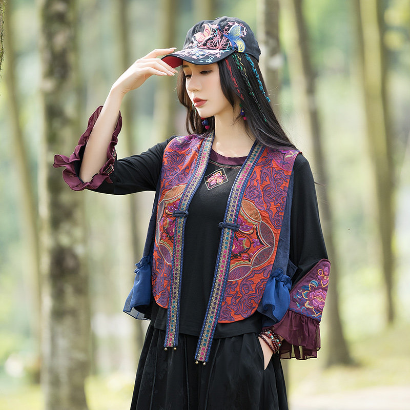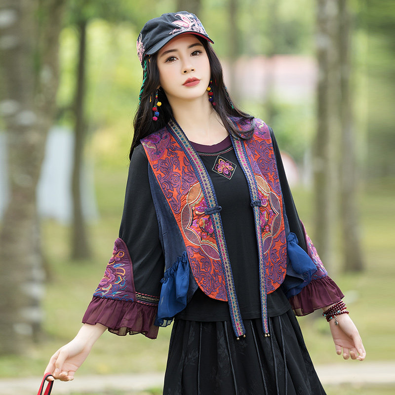 Этнический весенний летний тонкий короткий жилет, куртка, этнический стиль, 2024 года, с вышивкой