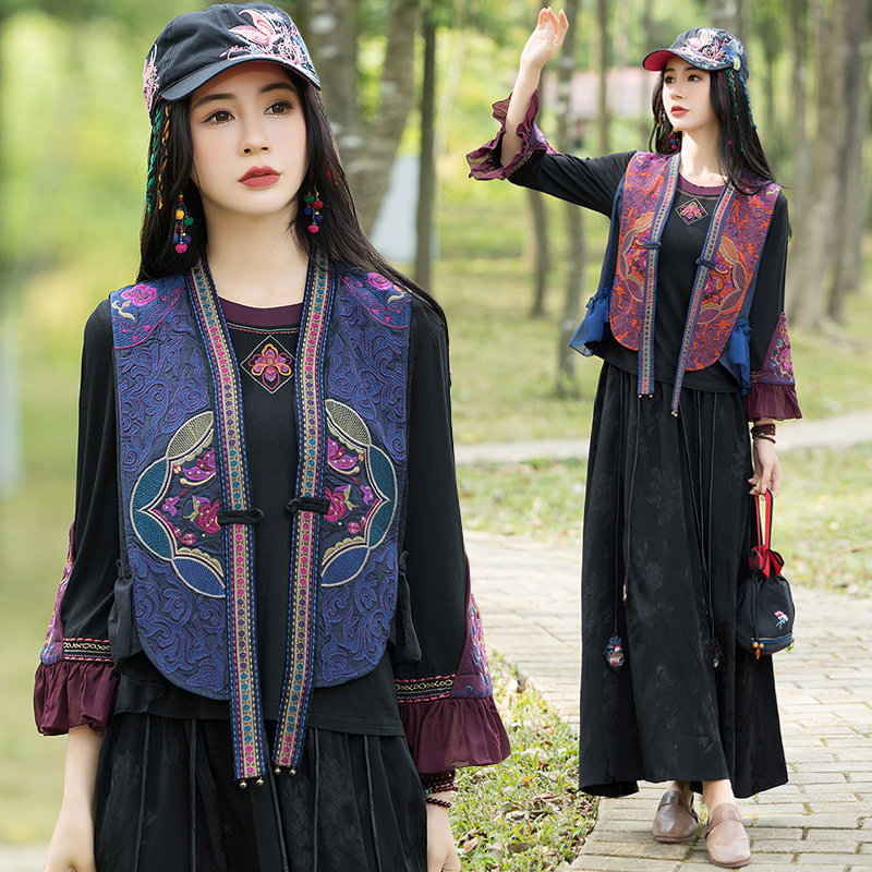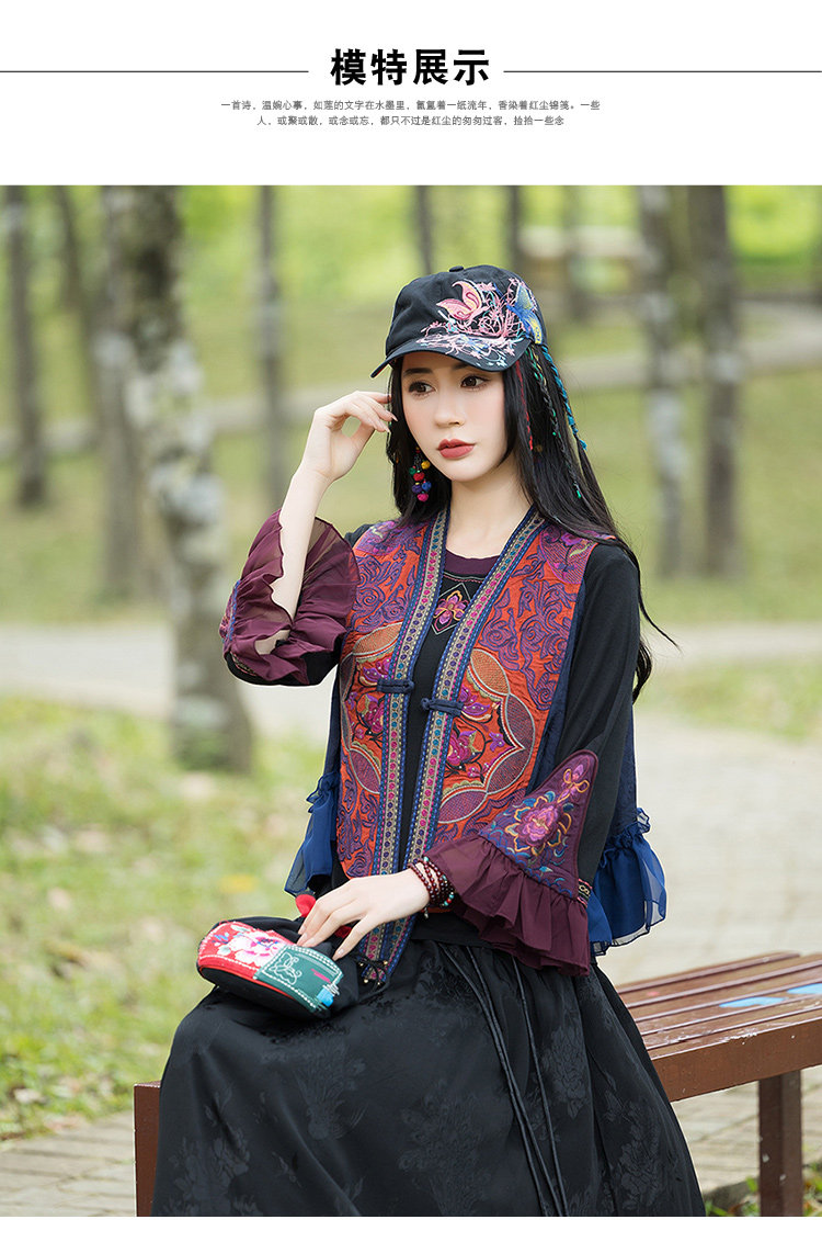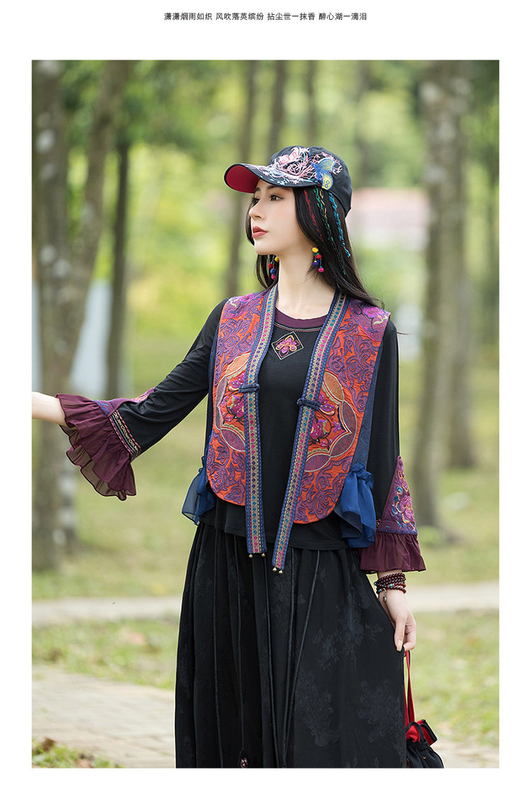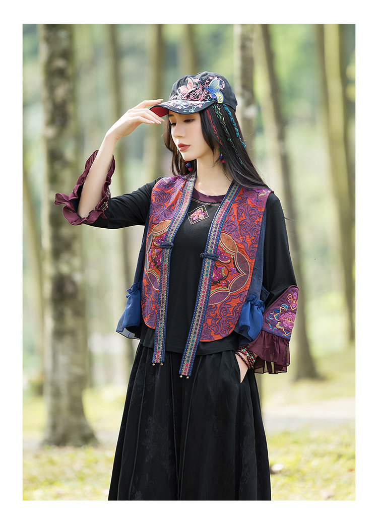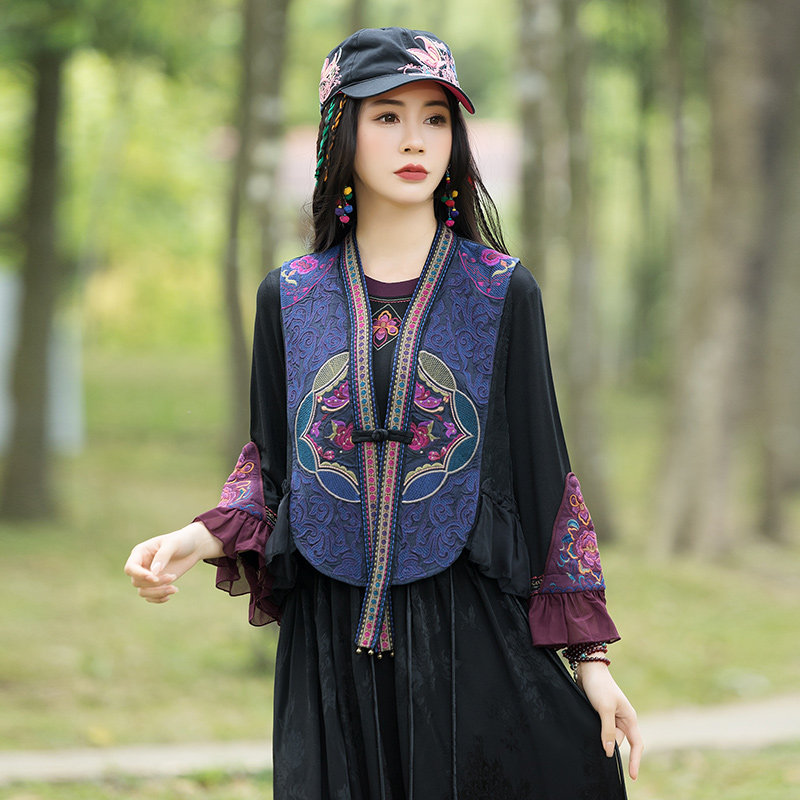 Этнический весенний летний тонкий короткий жилет, куртка, этнический стиль, 2024 года, с вышивкой