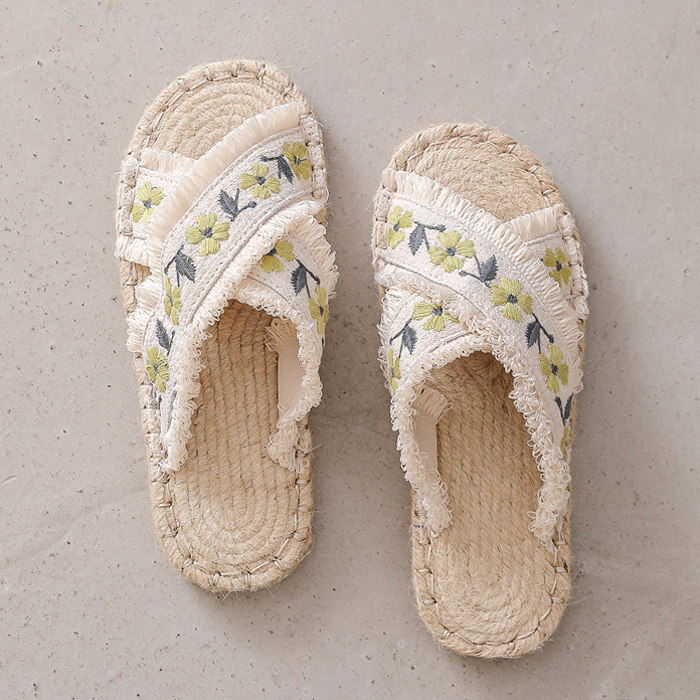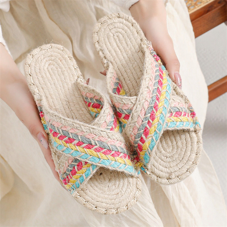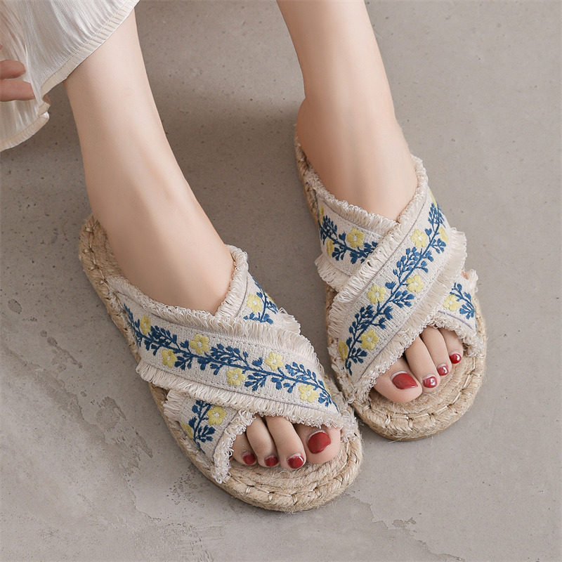 Летние этнические слипоны, соломенные тапочки, сандалии, этнический стиль