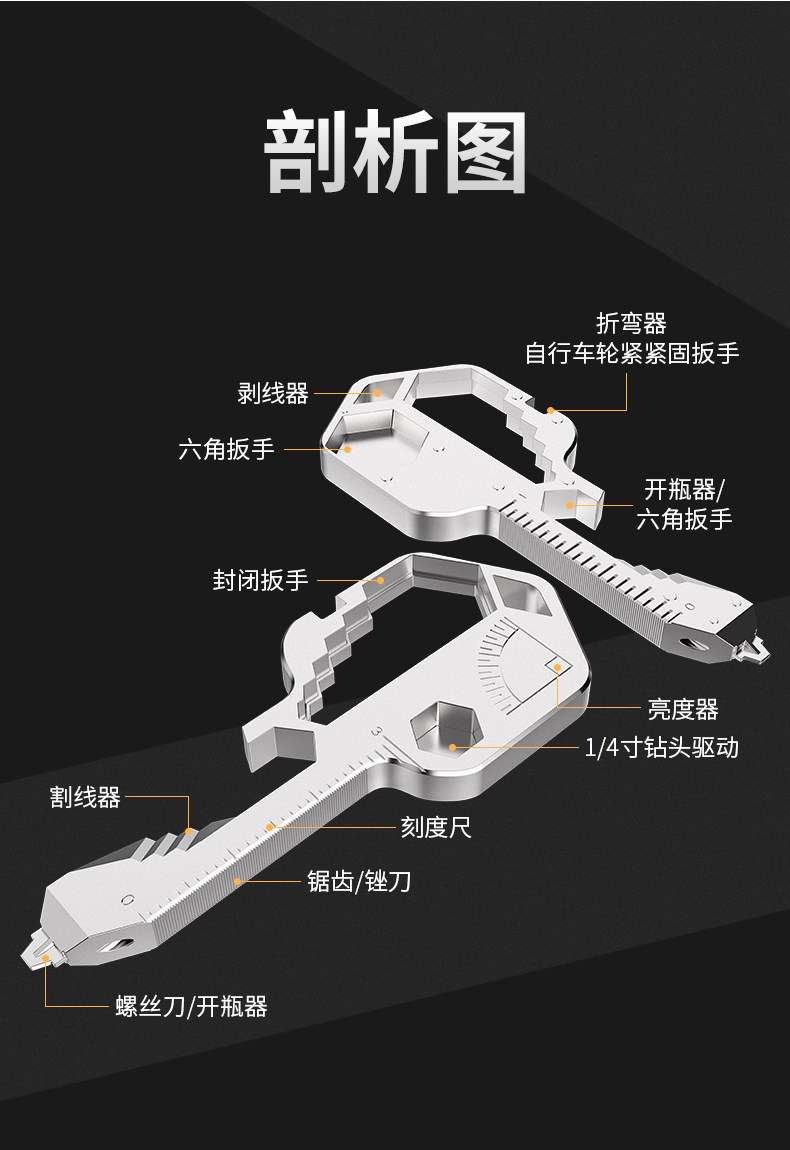 - 【24 -IN -One】 Серебряный ключ -нож