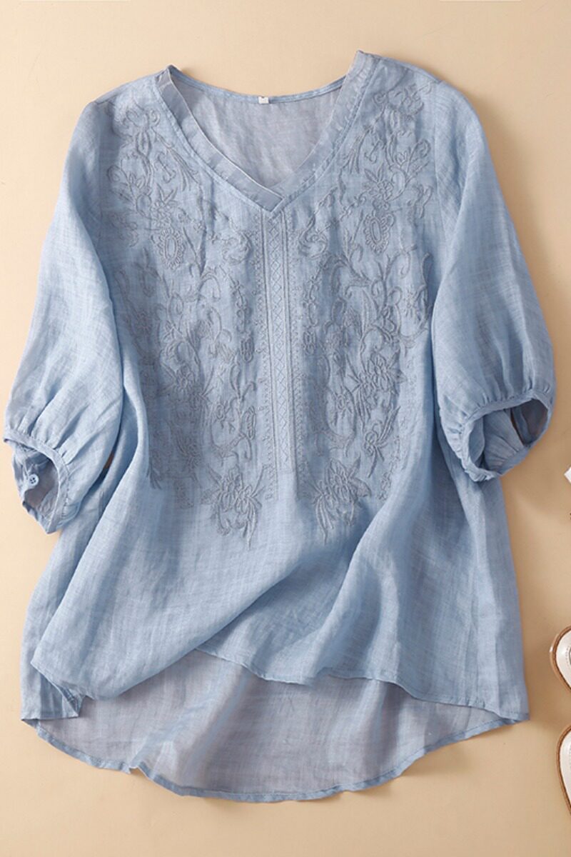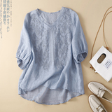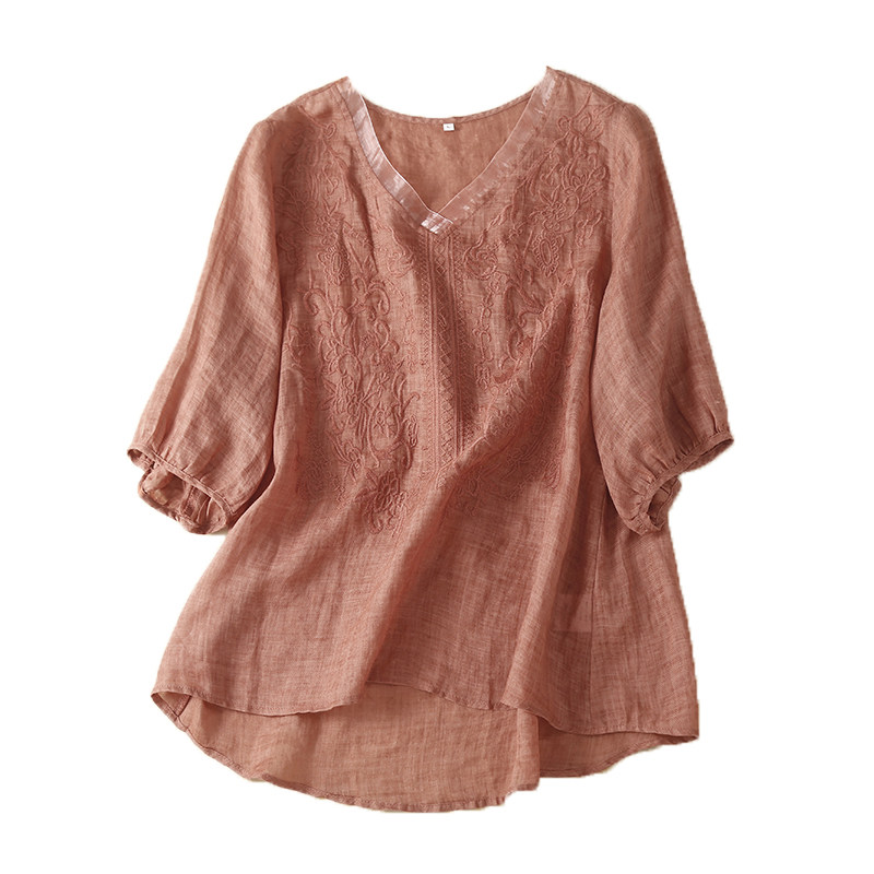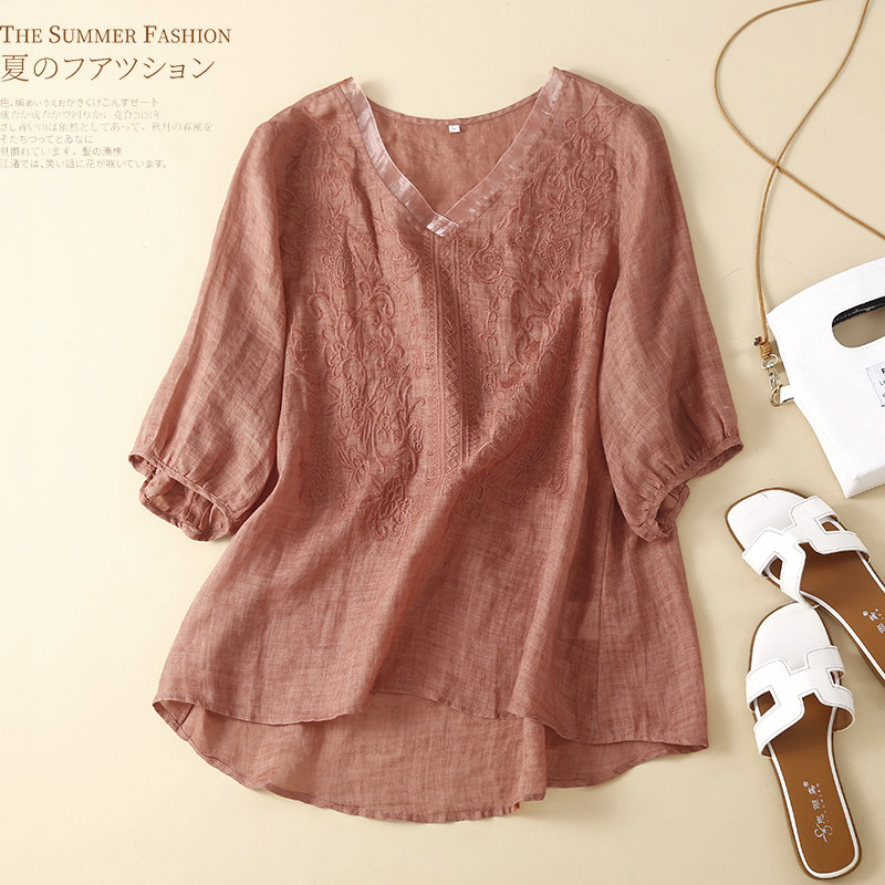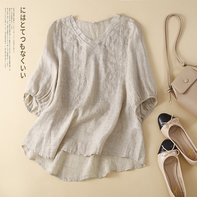 (Трансграничная торговля), футболка, фонарь, с вышивкой, V-образный вырез, с рукавом
