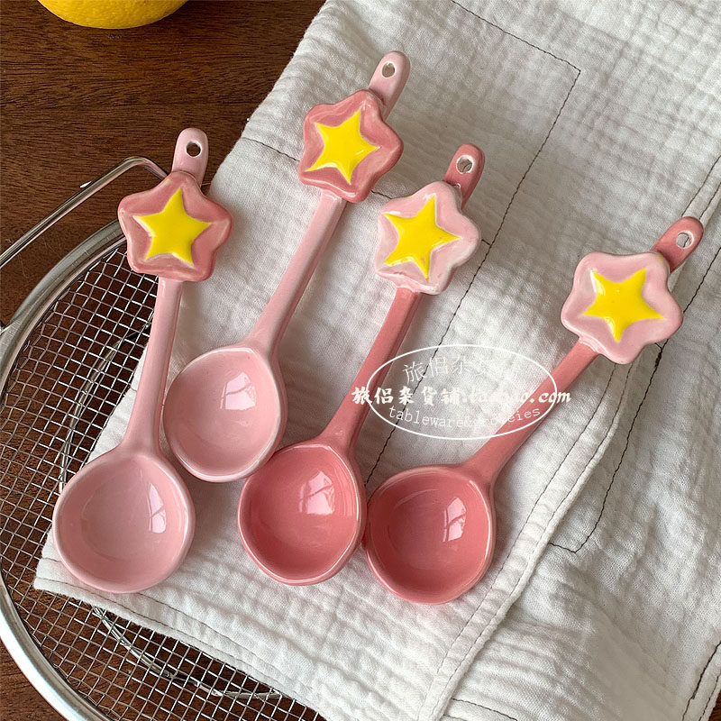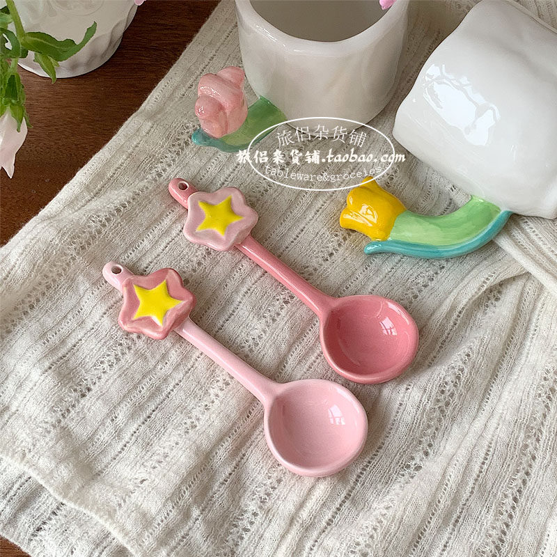 Girl Heart Star Ceramic Spoon Dessert Sweed Fan Tablet Table Princess Spoon розовый милый скелет ins ins ins