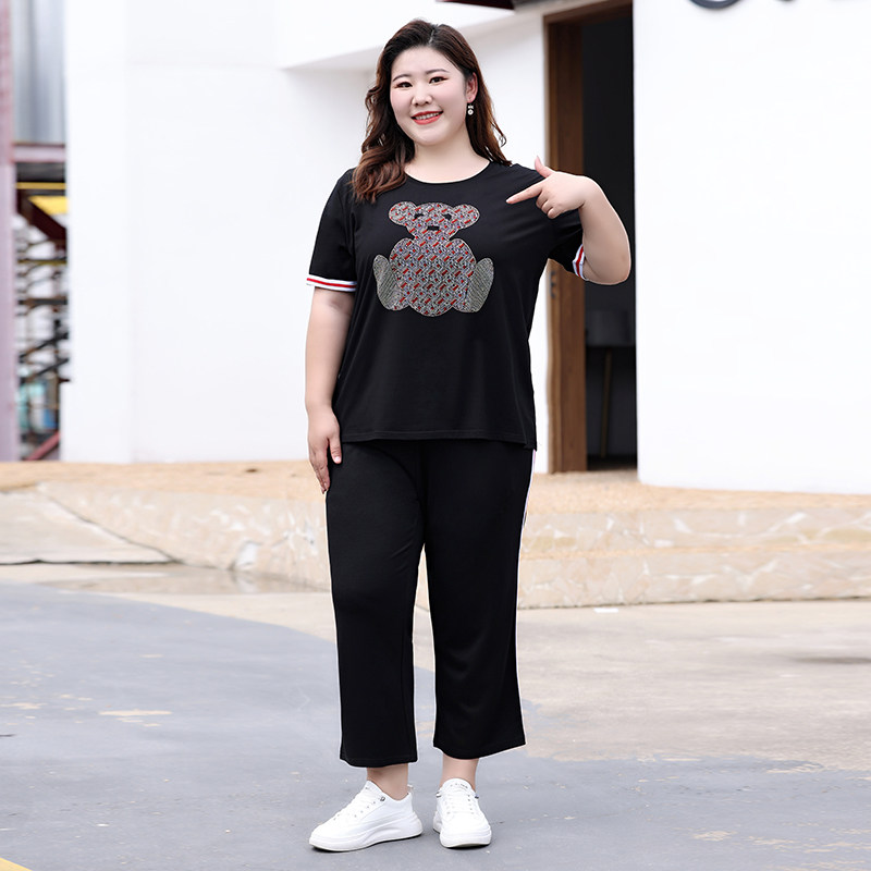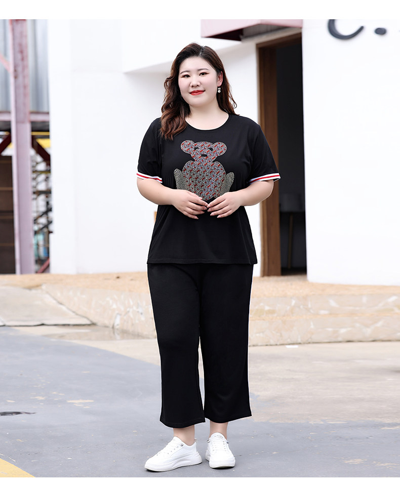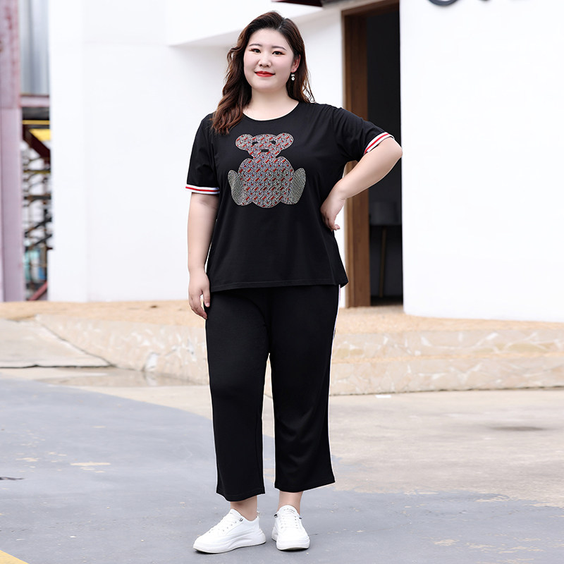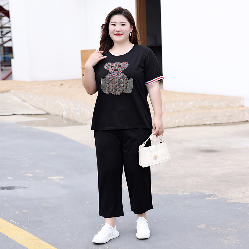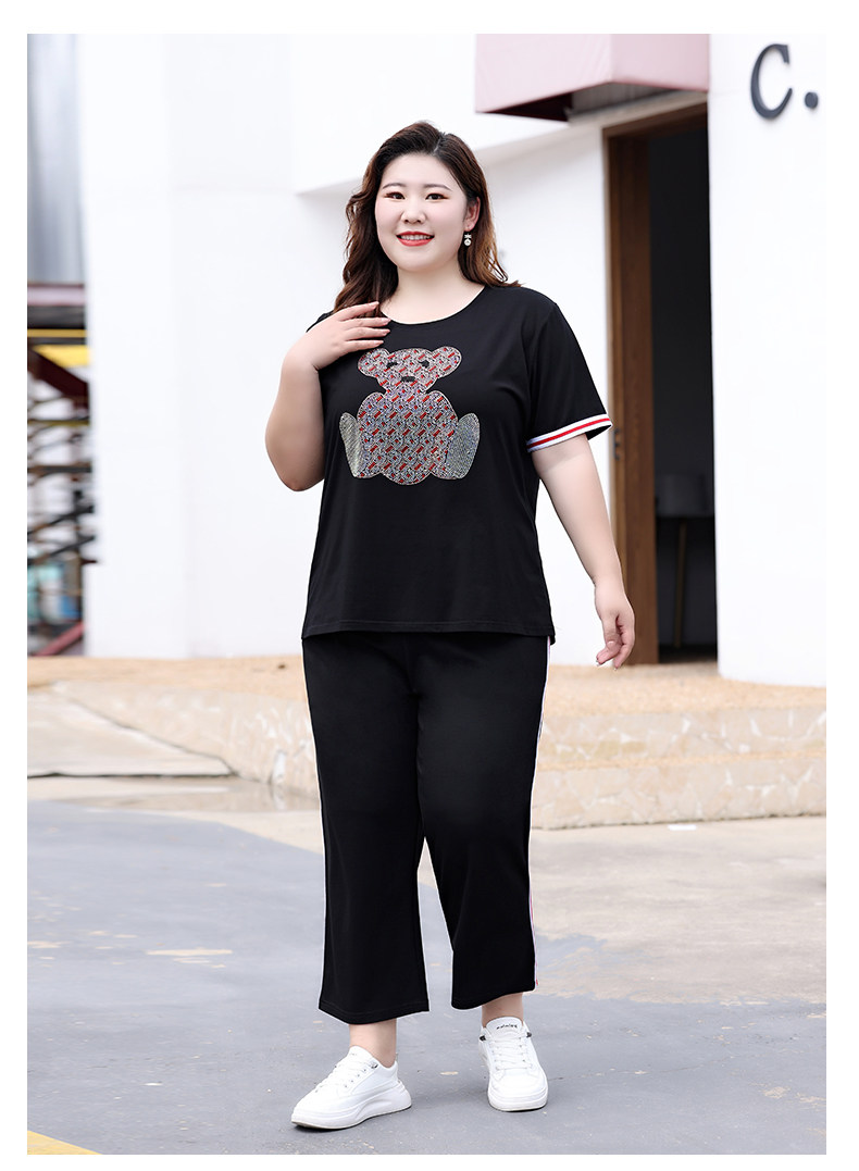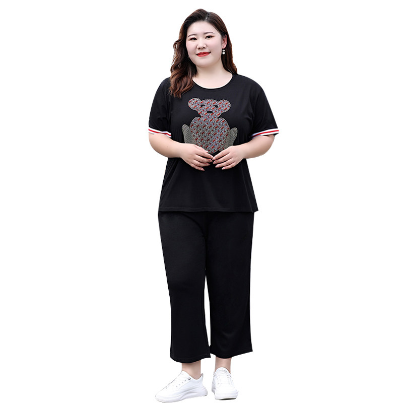 Летний комплект, футболка с коротким рукавом, штаны, большой размер