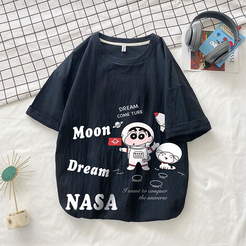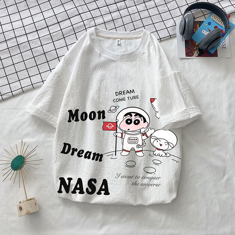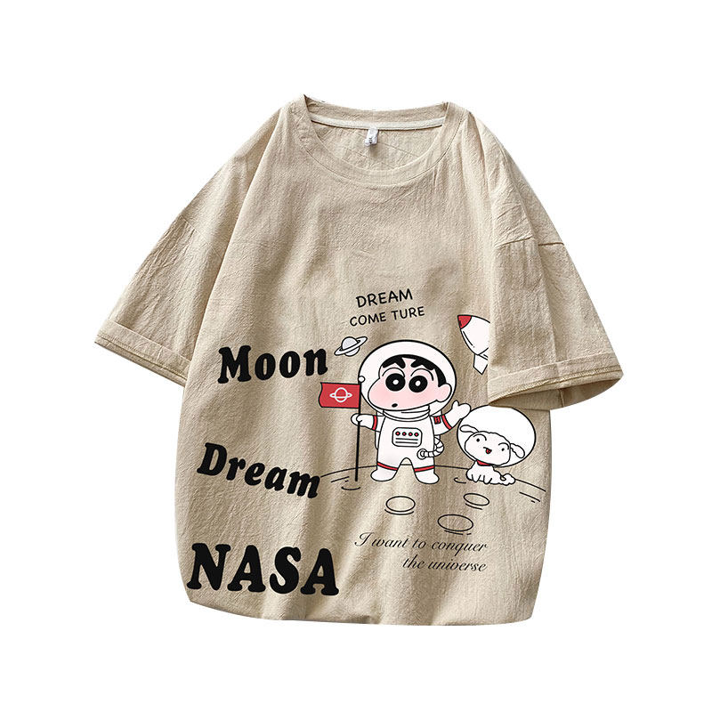 Мелки, японская мультяшная футболка с коротким рукавом, оверсайз, из хлопка и льна