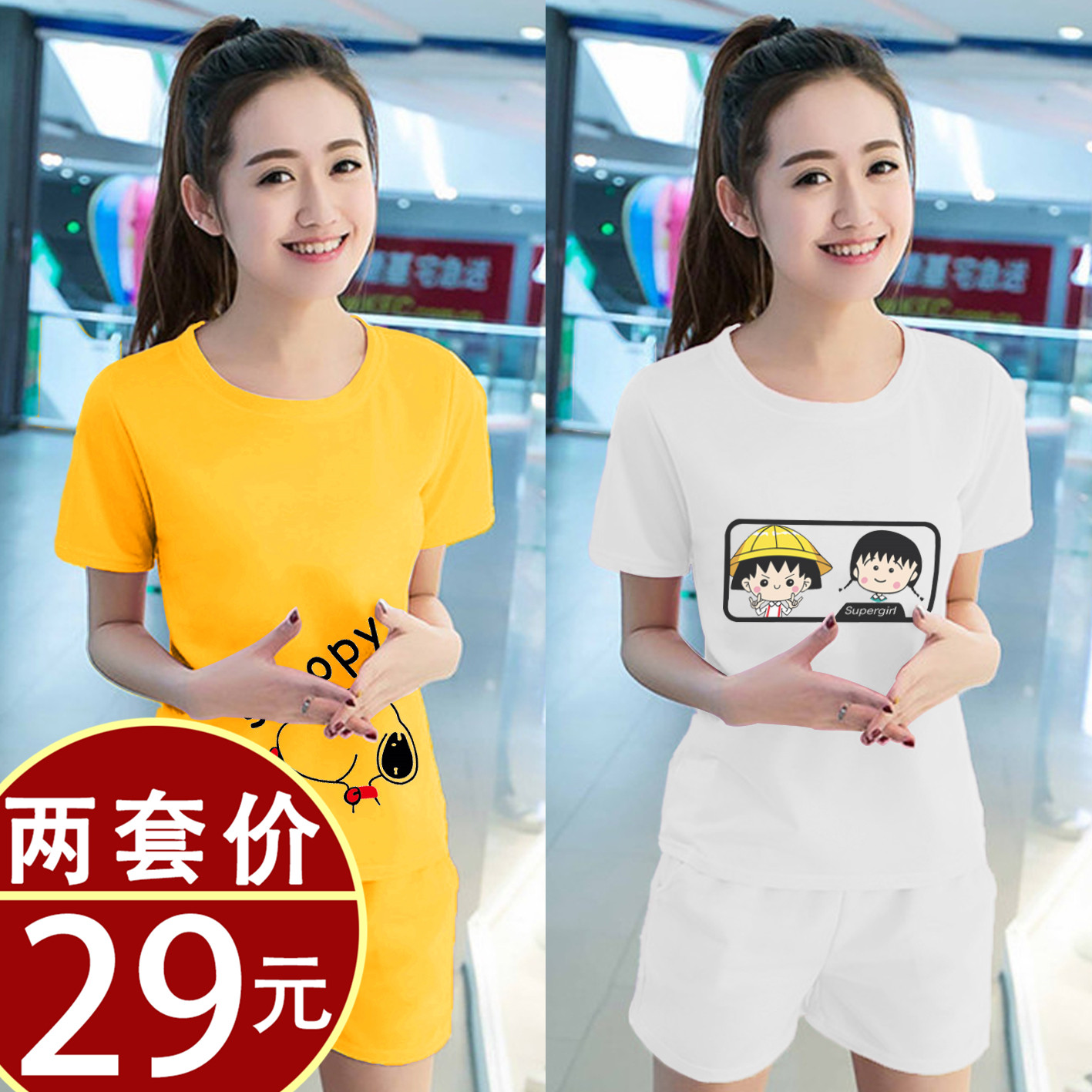 Модные нарукавники, летний комплект, футболка для отдыха, штаны, свободный крой, короткий рукав