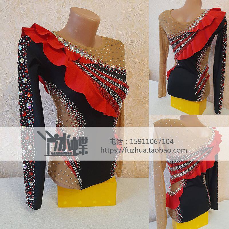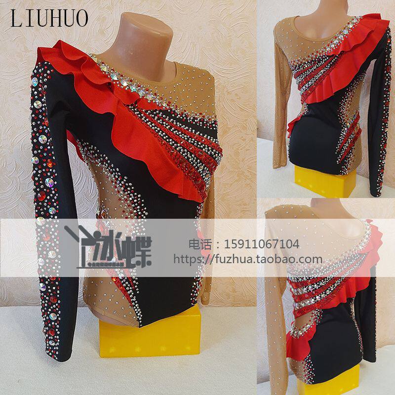 Liuhuo Художественная гимнастика одежда Фитнеса конкурса, девочки и дети, индивидуальные черлидинг фитнес, черный и красный BD1372