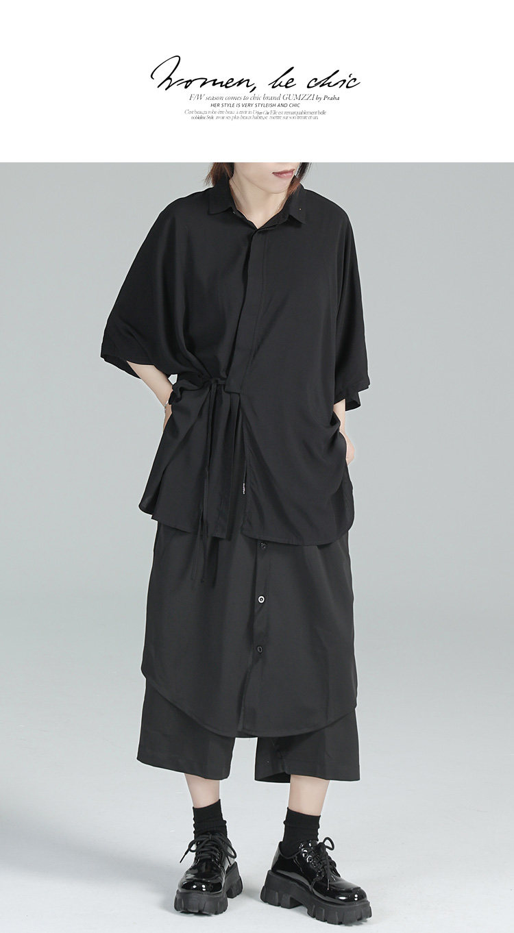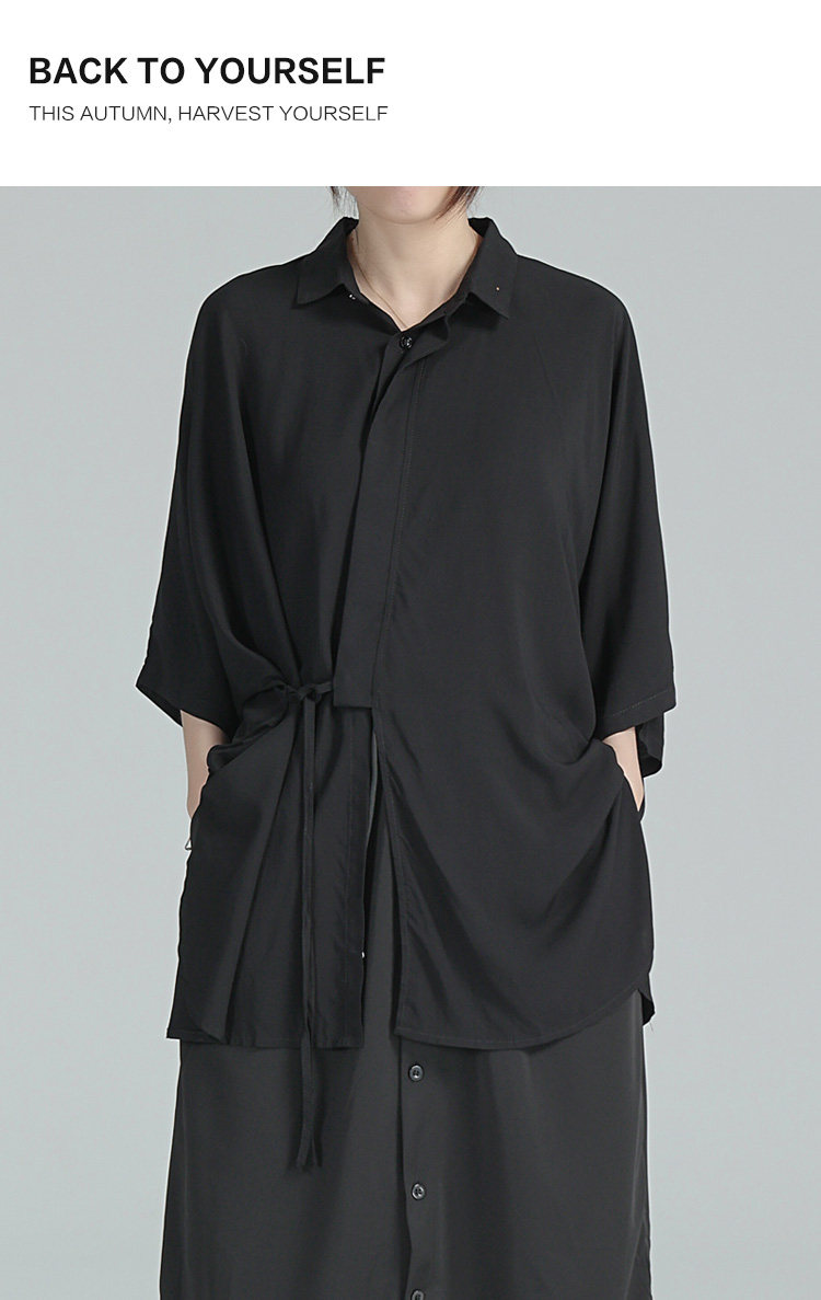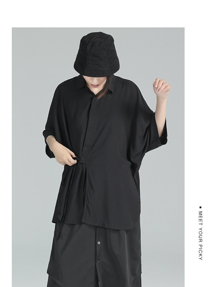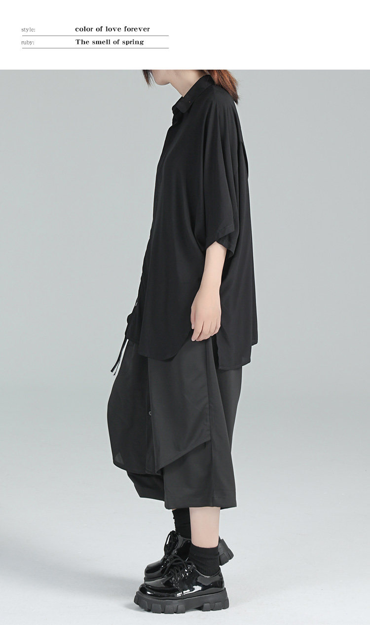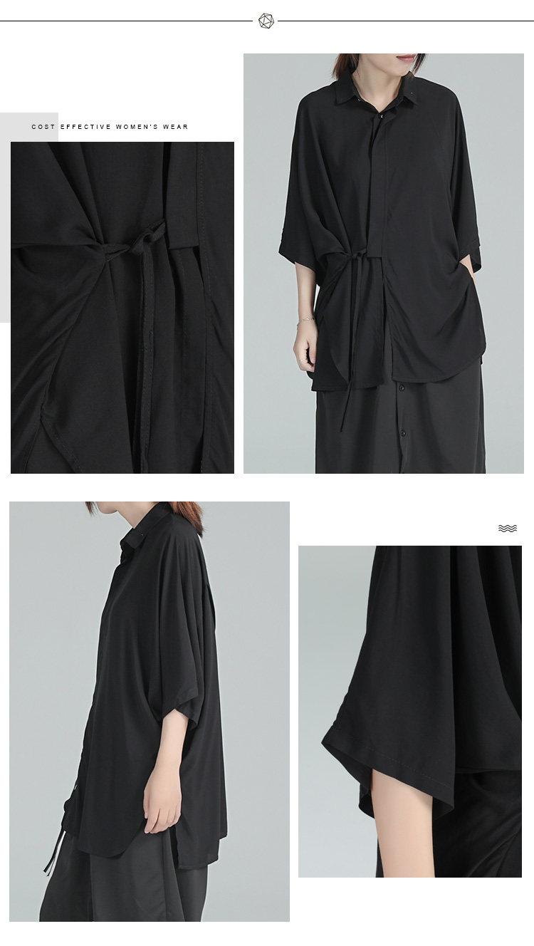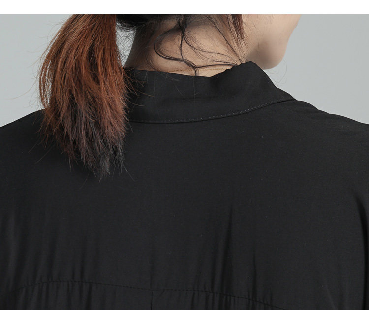 Дизайнерская летняя черная тонкая рубашка, тренд сезона, свободный крой