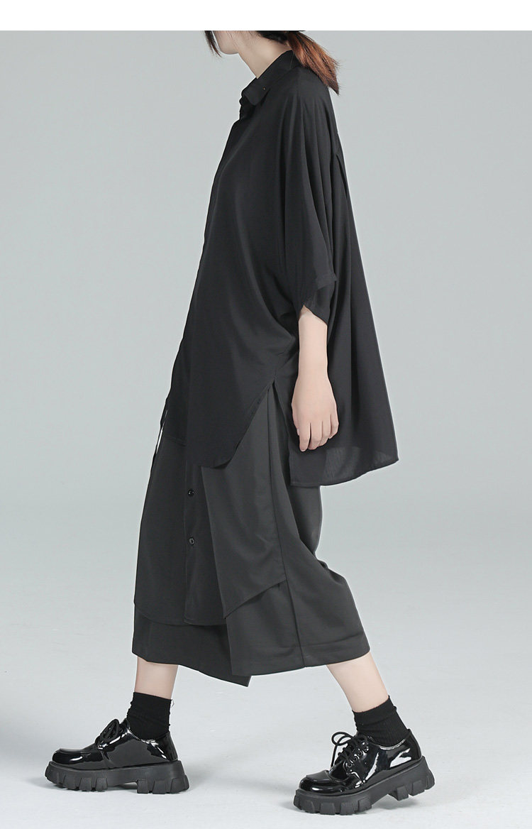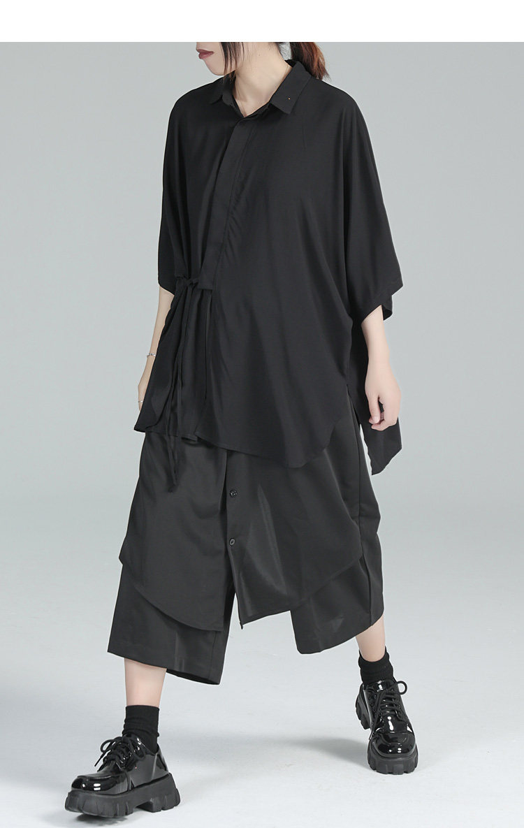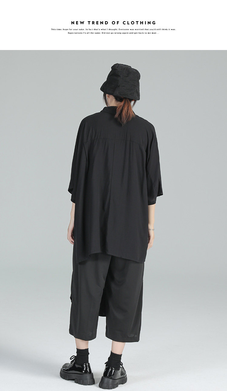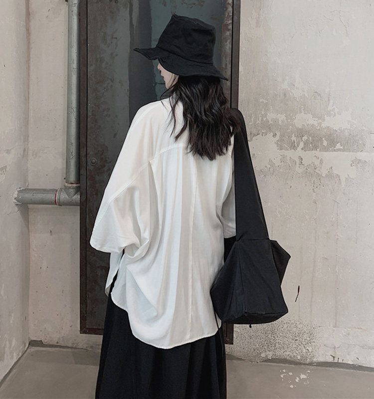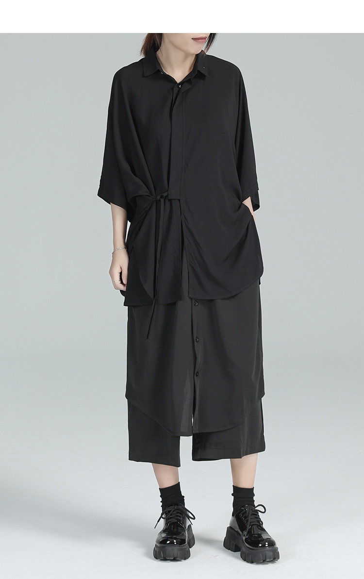 Дизайнерская летняя черная тонкая рубашка, тренд сезона, свободный крой