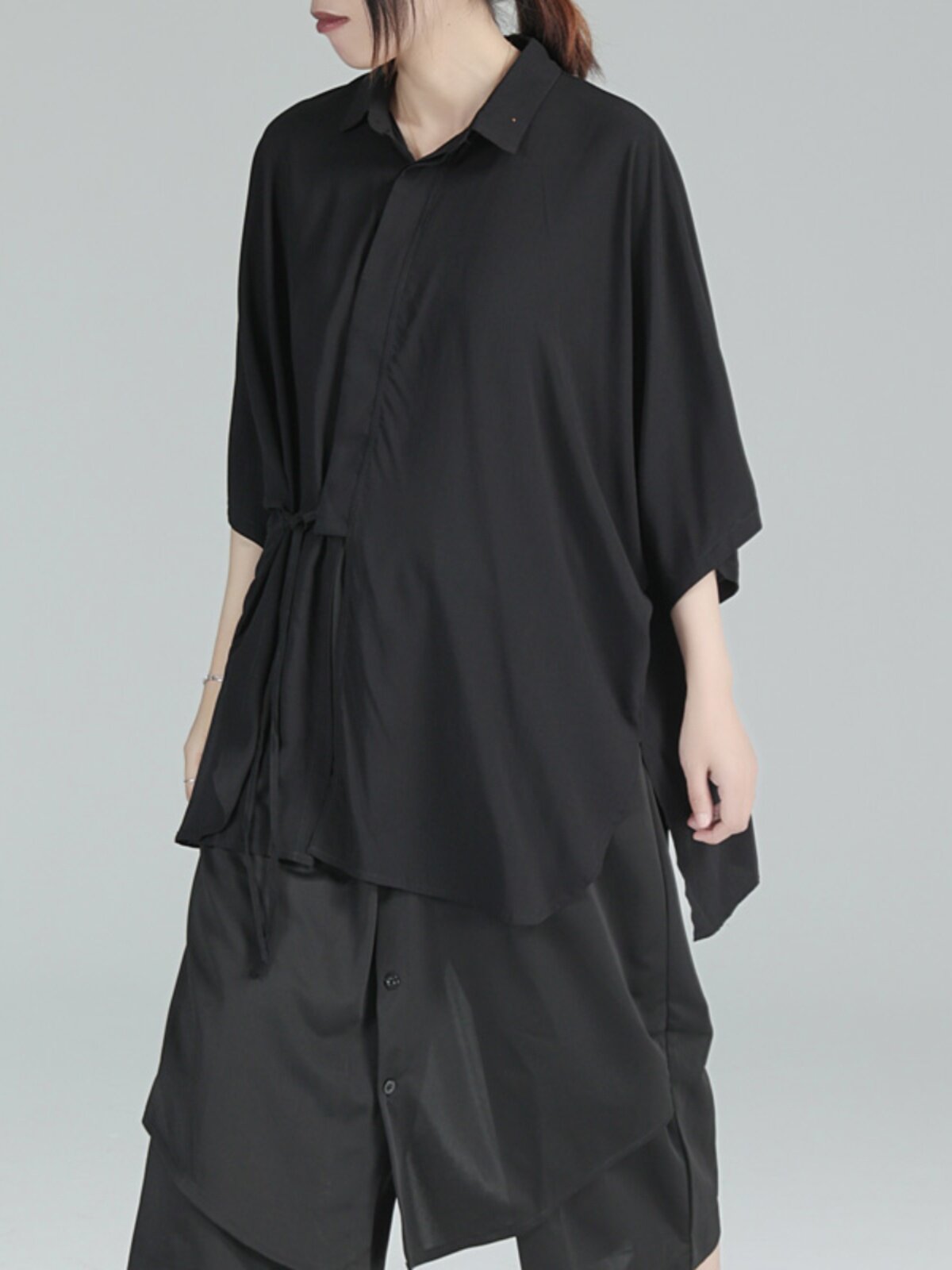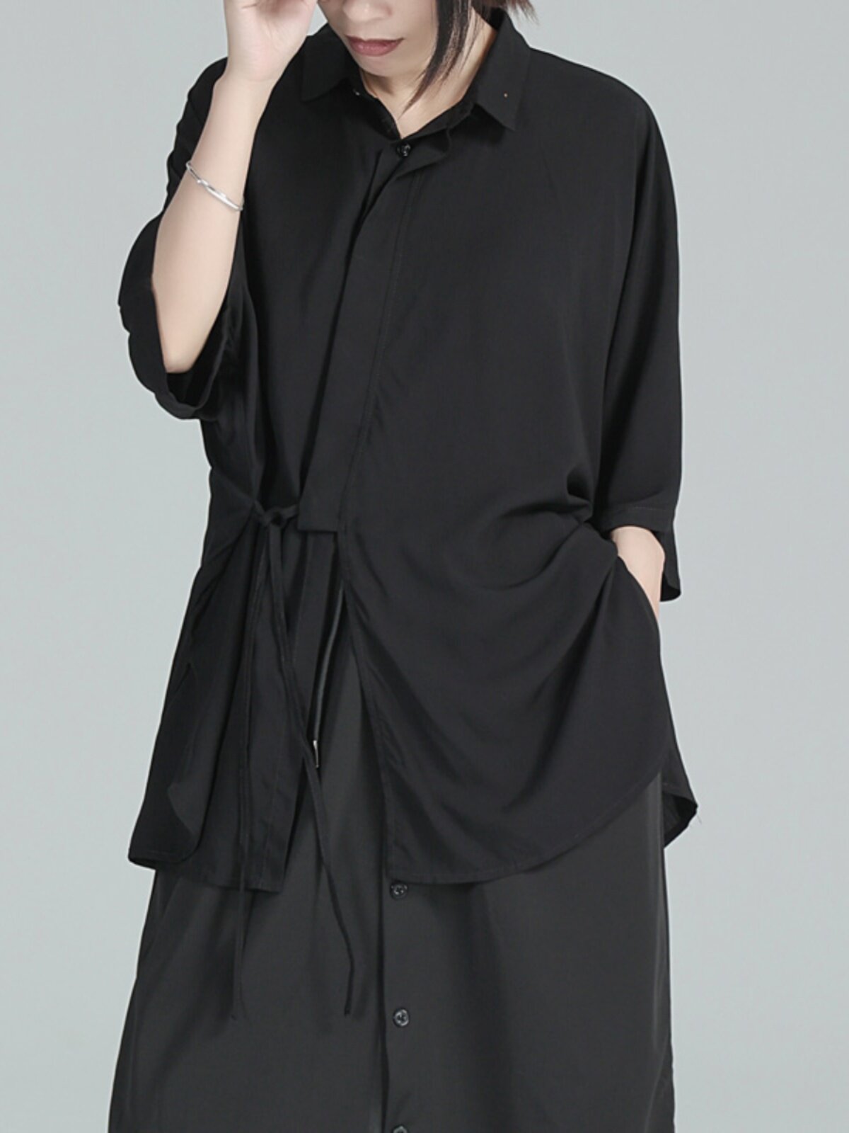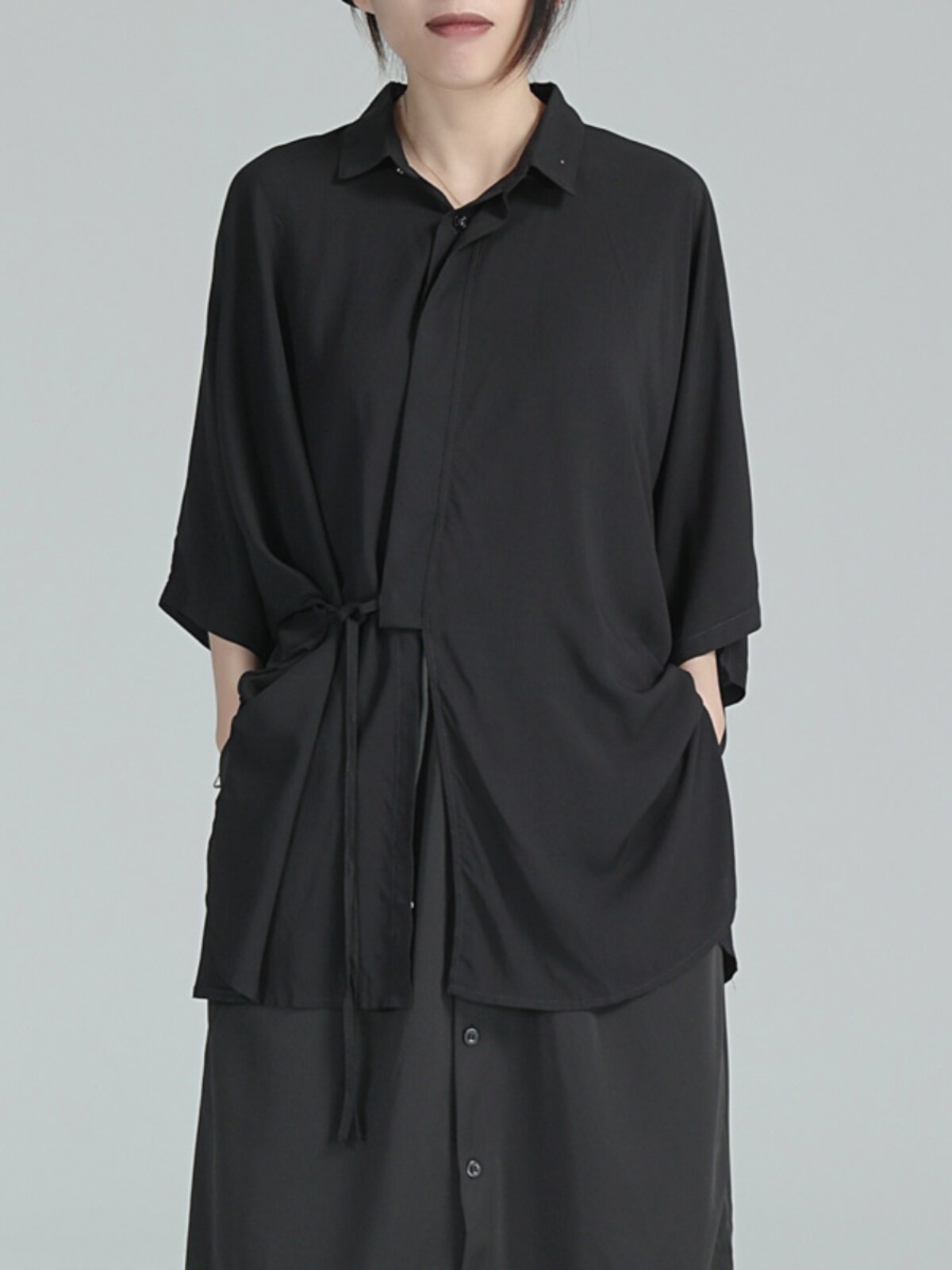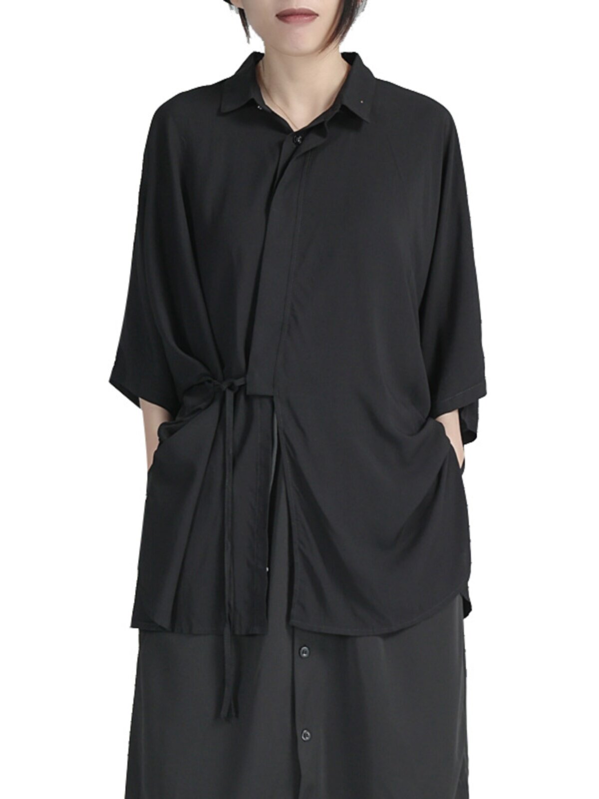 Дизайнерская летняя черная тонкая рубашка, тренд сезона, свободный крой