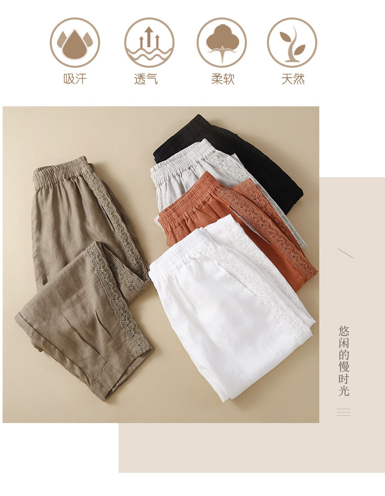 Штаны, из хлопка и льна, большой размер, эластичная талия
