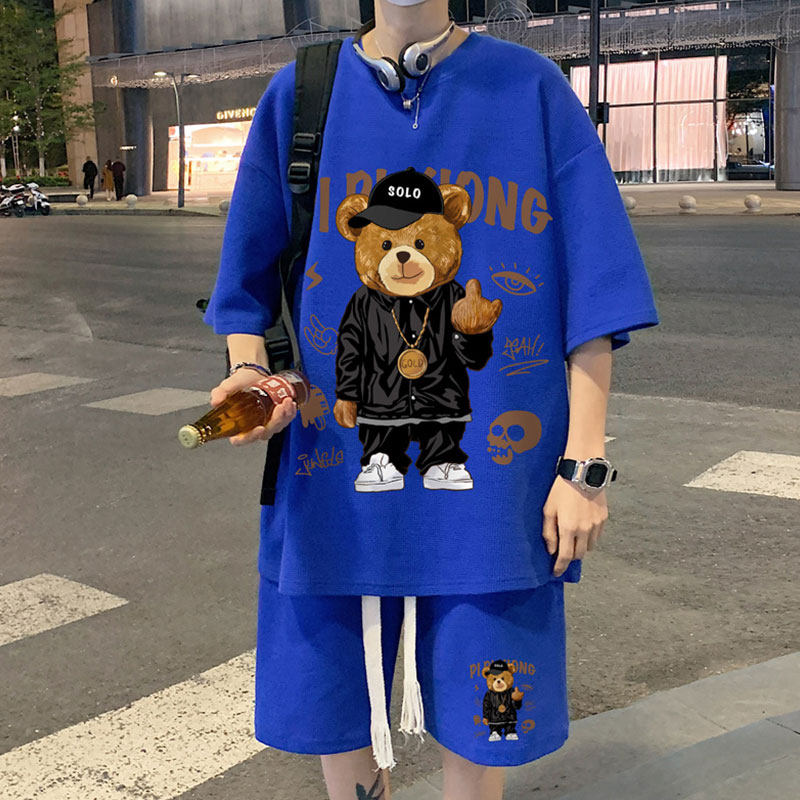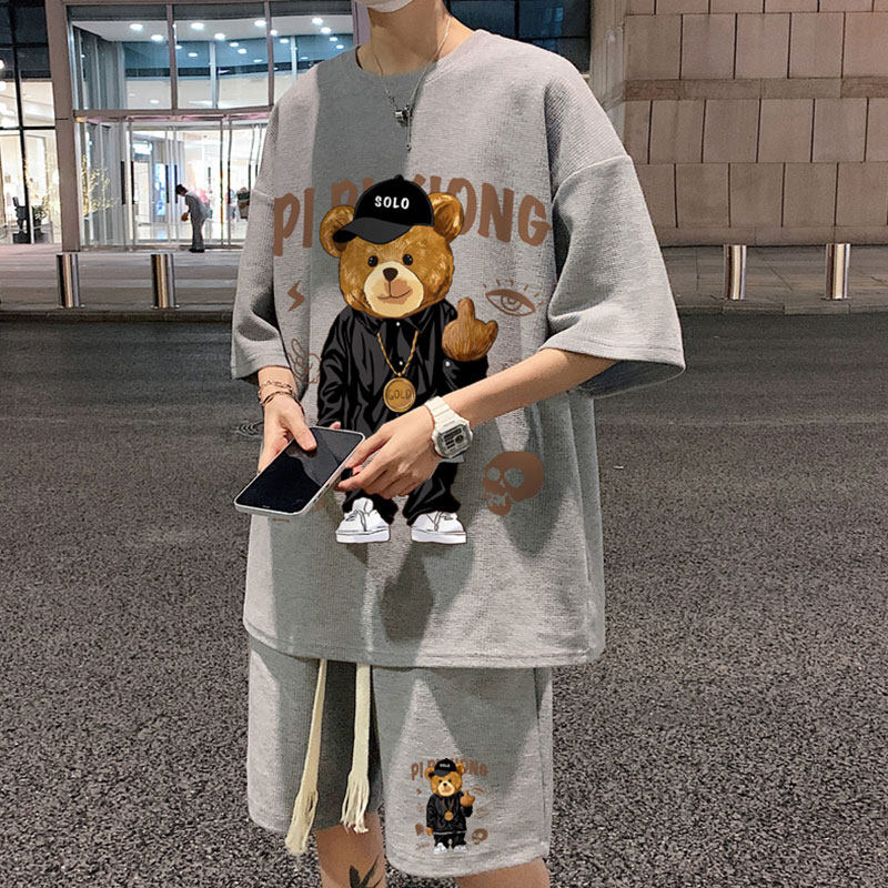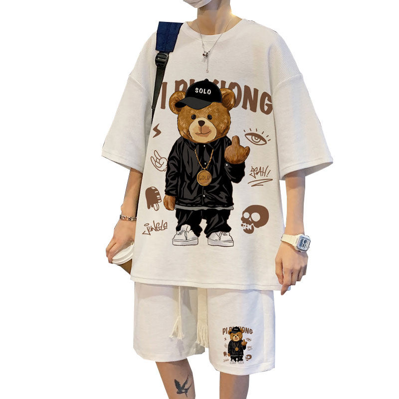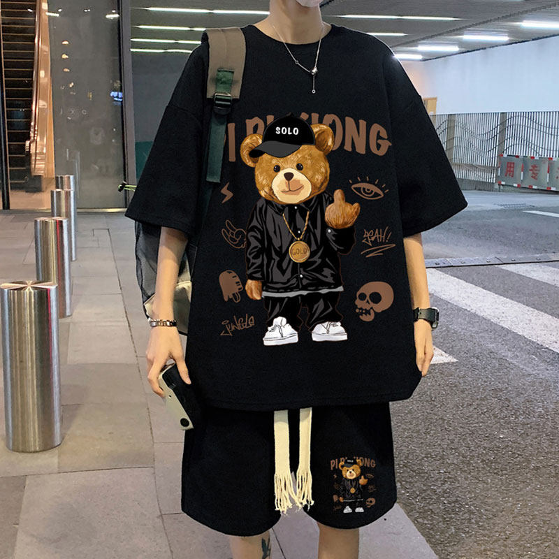 Летний комплект, футболка в стиле хип-хоп, с медвежатами, в американском стиле