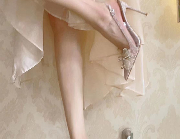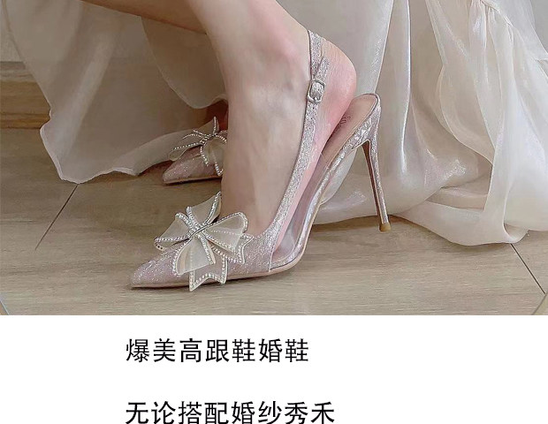 Свадебные туфли, обувь для невесты, летняя подходит с юбкой с заостренным носом на высоком каблуке