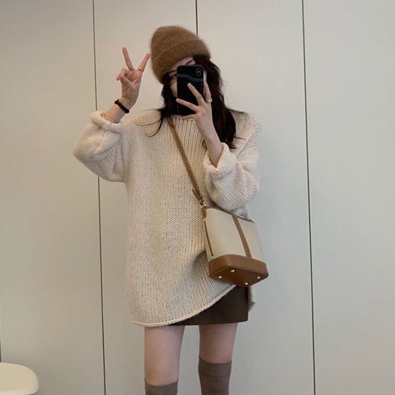 Первая любовь Paradise Spring и осенью грубым игольчатым свитером свободный ленивый стиль Топ -женский стиль моды в стиле моды белый олень Yang zi Ju jingyi