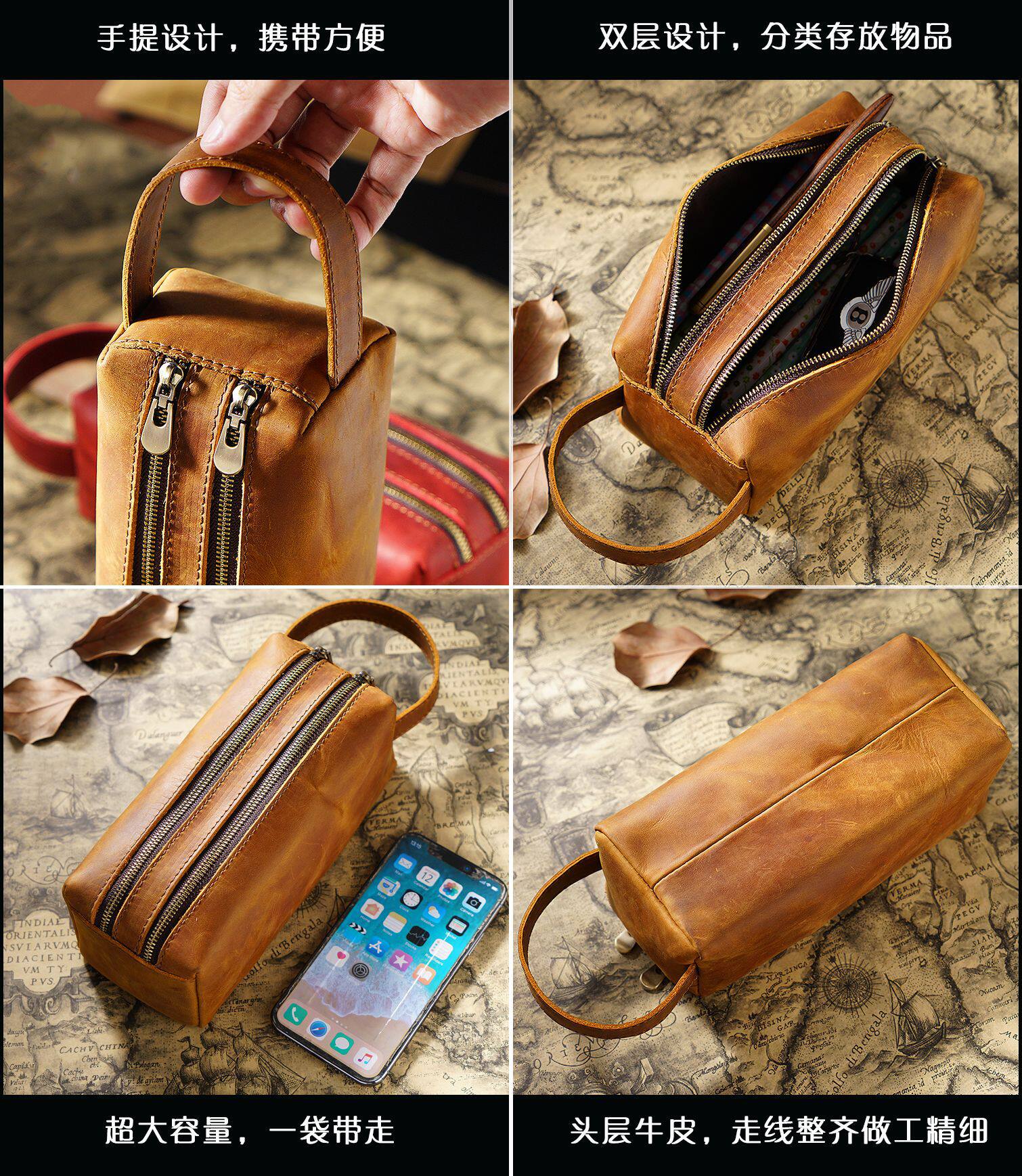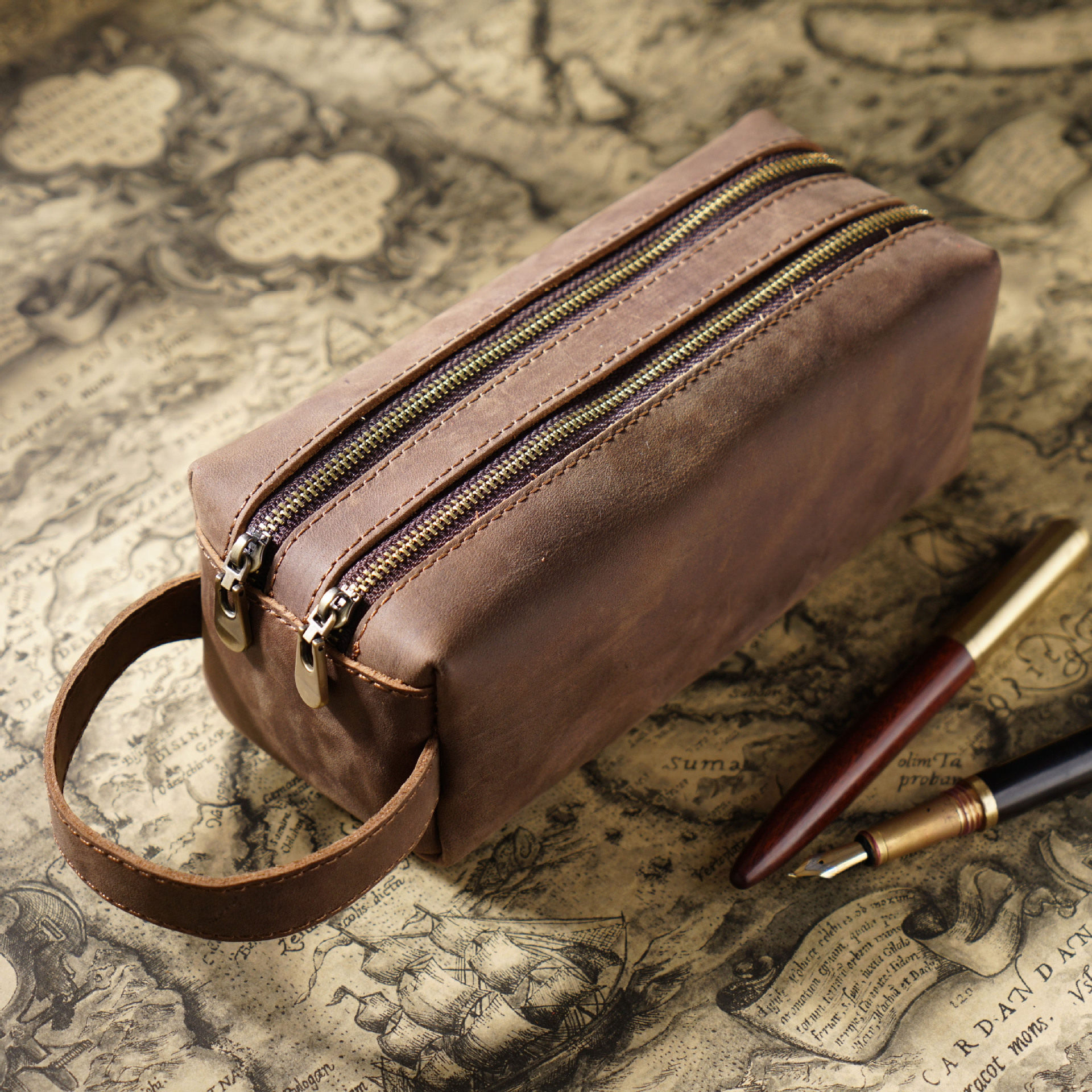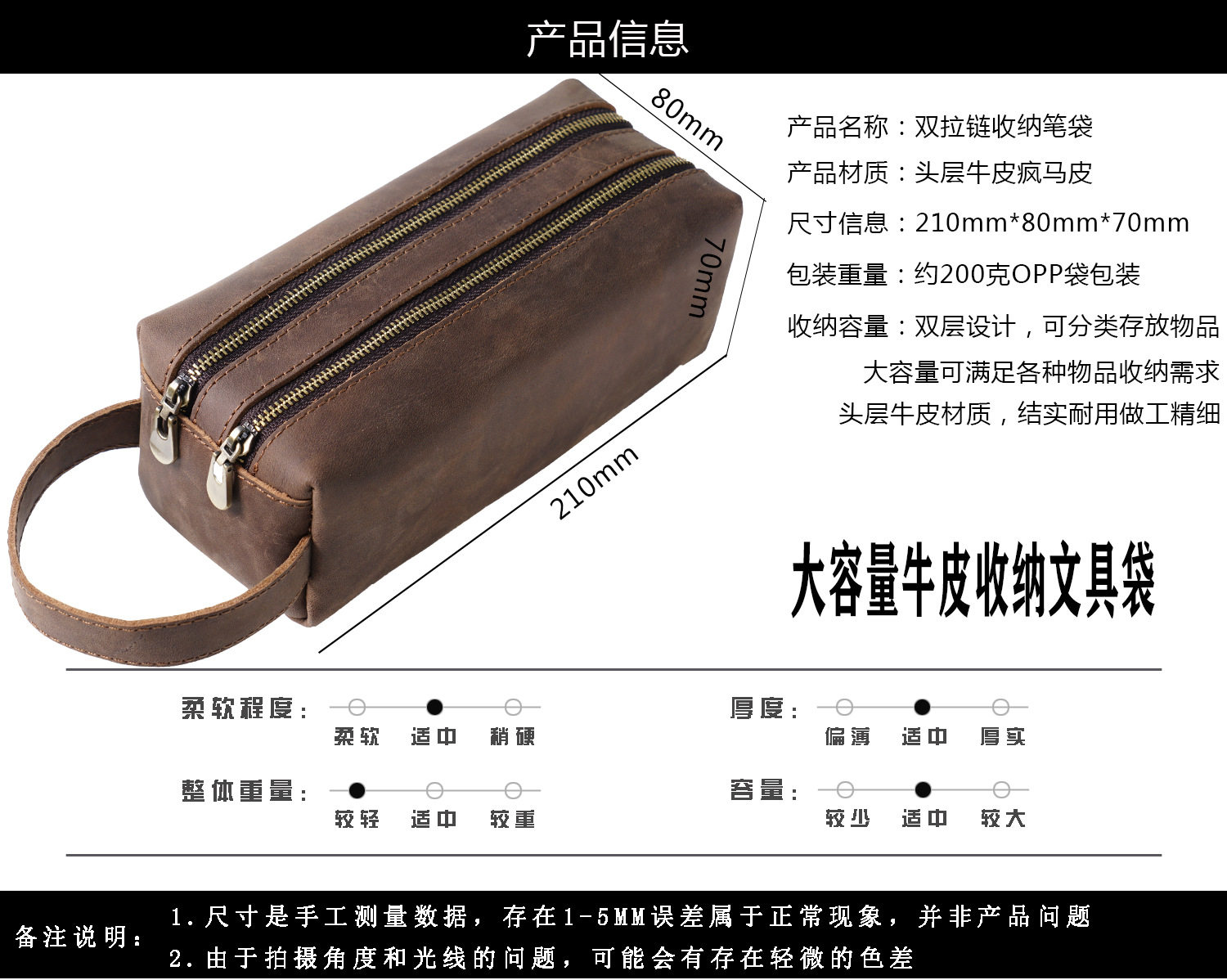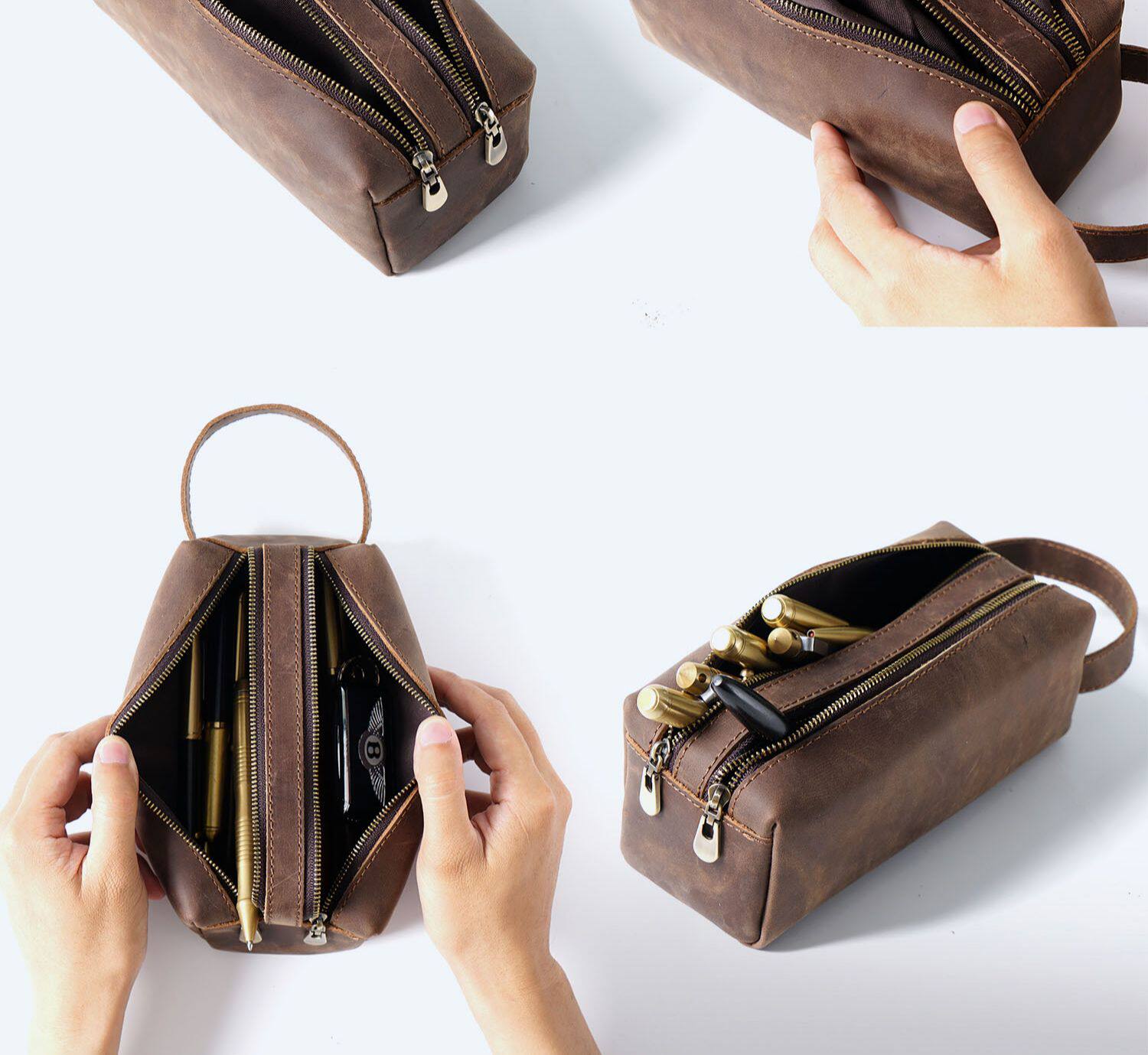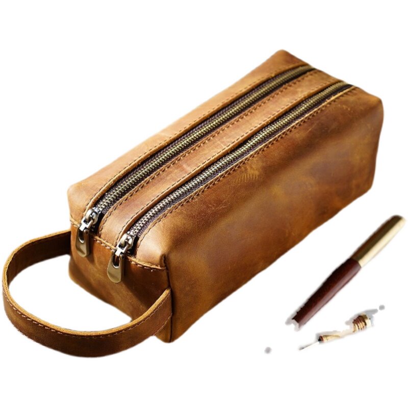 Вместительный и большой пенал, ретро канцтовары подходит для мужчин и женщин, кожаная сумка-органайзер, DIY, из натуральной кожи, воловья кожа