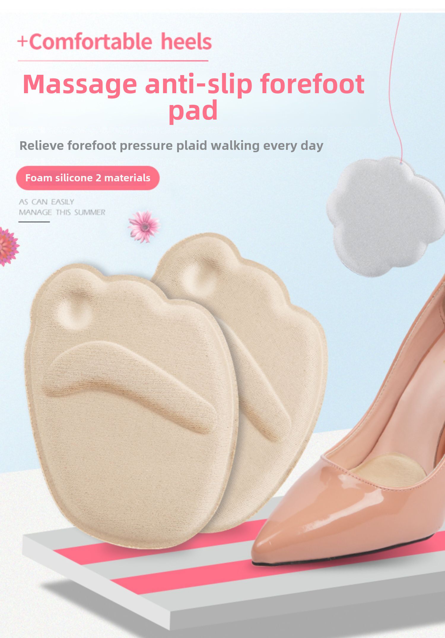 Противоболевые нескользящие туфли на высоком каблуке, полустельки, впитывают пот и запах