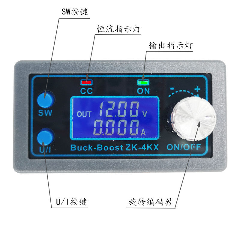 5.3. Установите постоянное значение потока(То есть максимальное значение тока модуля позволяет выход) -В нормальном интерфейсеКоротко нажмите кнопку U/I, чтобы ввести интерфейс постоянного тока настройки.Затем нажмите кнопку U/I, чтобы переключиться на настройку постоянного значения потока. Вы можете видеть, что определенный с постоянным значением потока мерцает, вращаясь влево и вправо, что можно отрегулировать.Вы можете выбрать, какое из постоянного значения потока можно выбрать.После того, как настройка завершена, нажмите кнопку U/I, выйдите из интерфейса постоянного тока настройки и вернитесь к нормальному интерфейсу.Или после остановки операции 10S автоматически возвращается к нормальному интерфейсу.