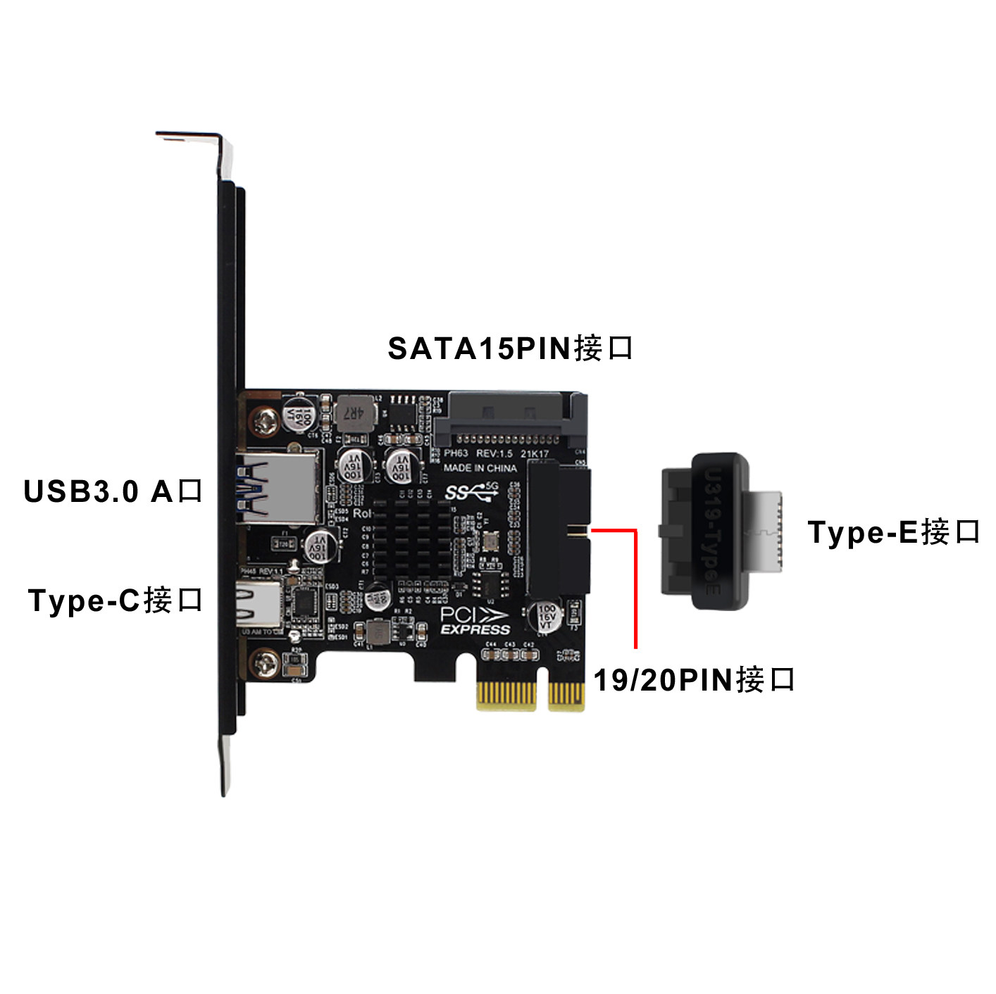 PH63S Computer PCIe до USB3.0A Port Typec Front Typree 19p20p Полный интерфейс карта расширения