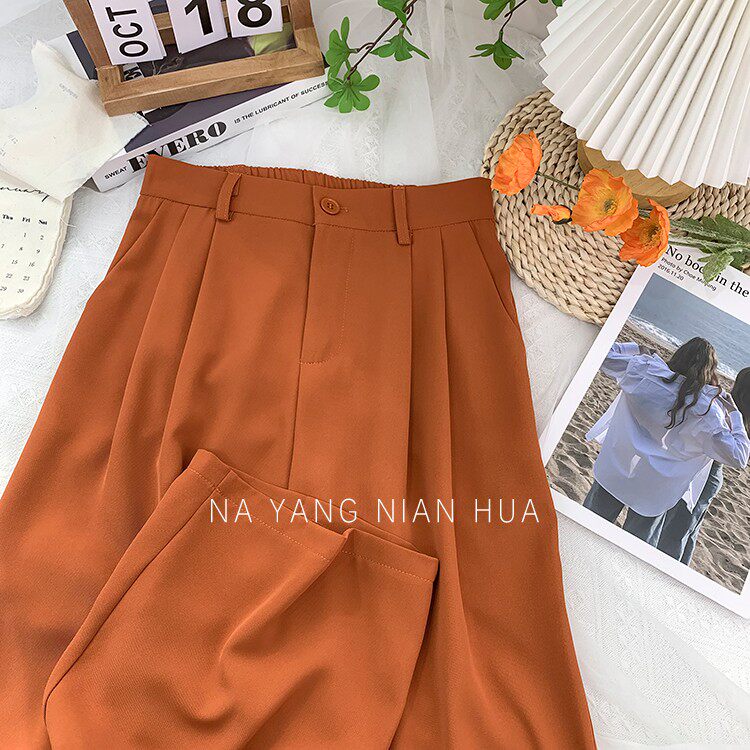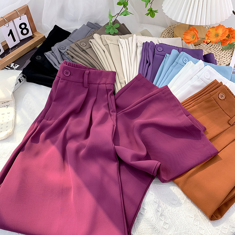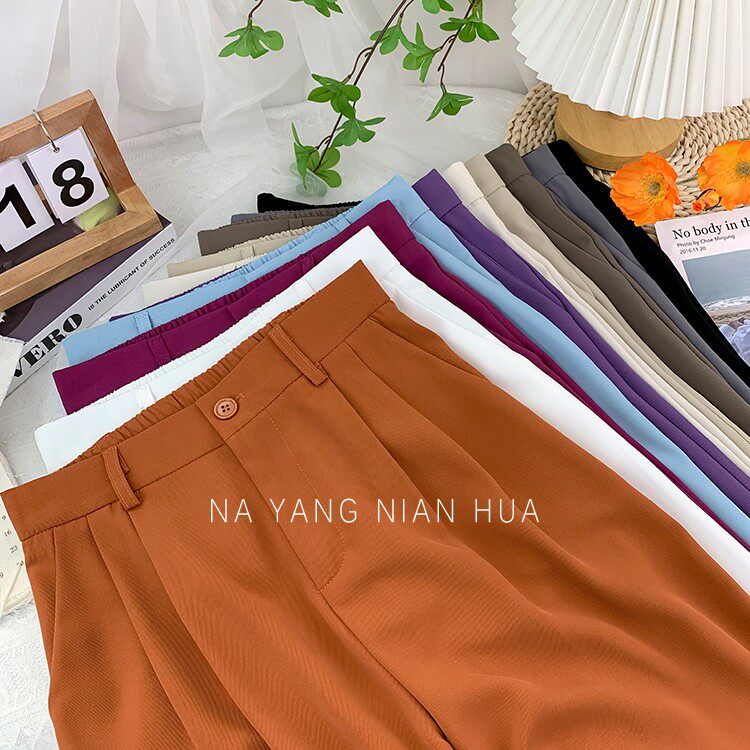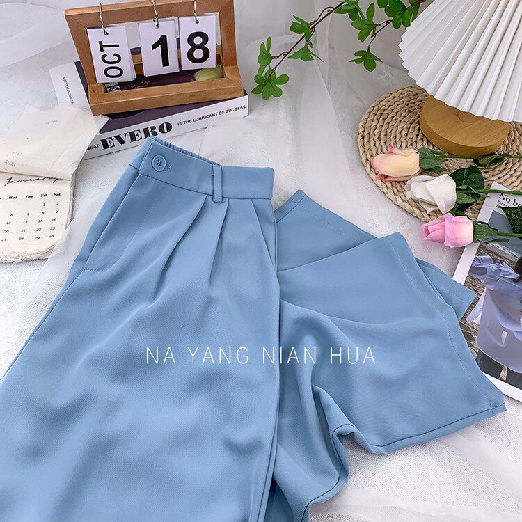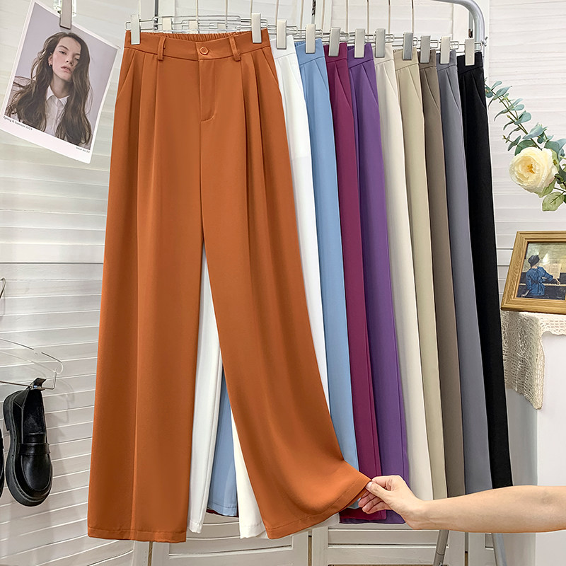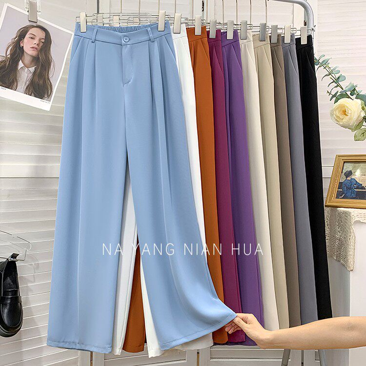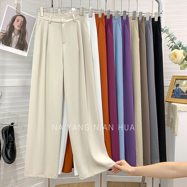 Шелковый костюм, шифоновые штаны, изысканный стиль, свободный прямой крой