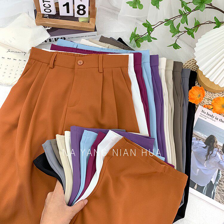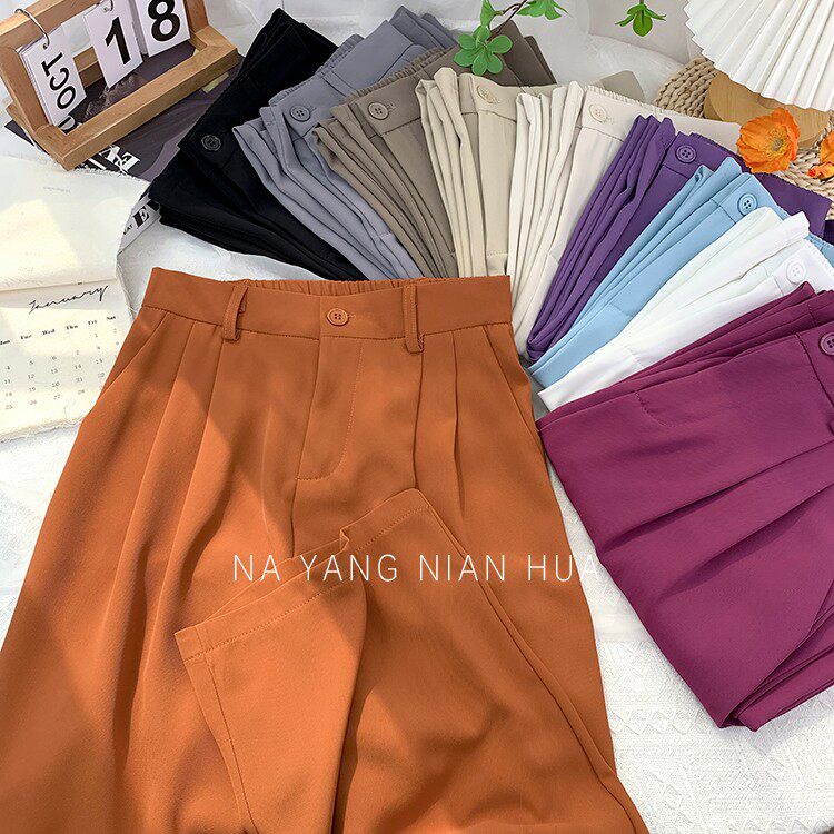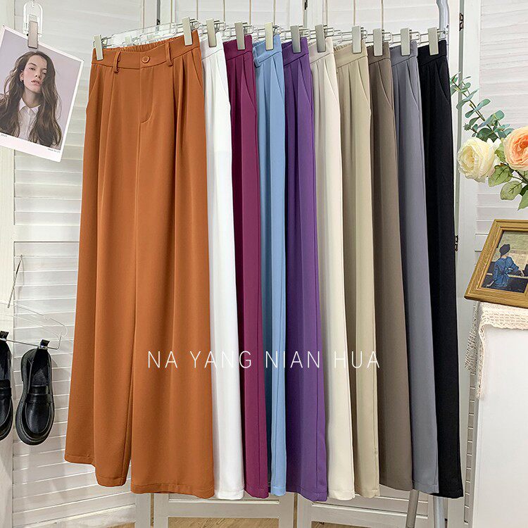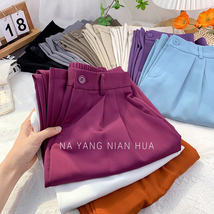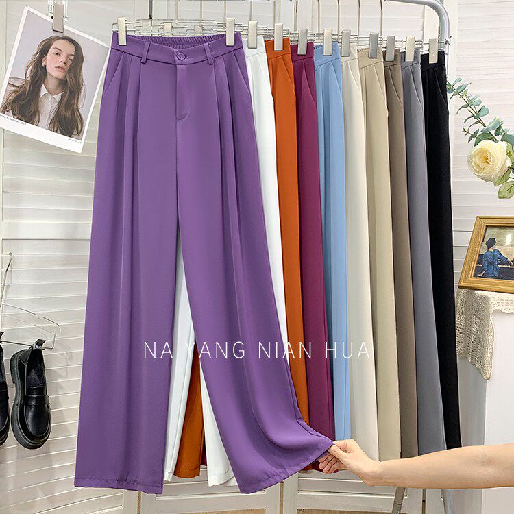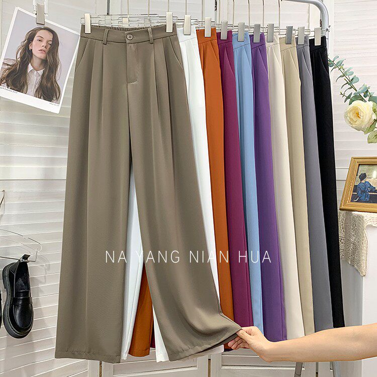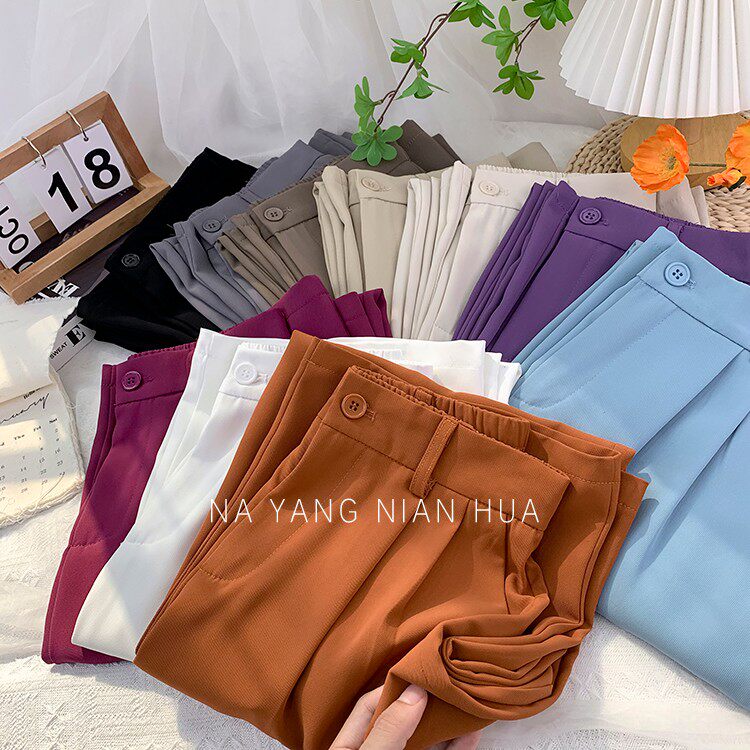 Шелковый костюм, шифоновые штаны, изысканный стиль, свободный прямой крой