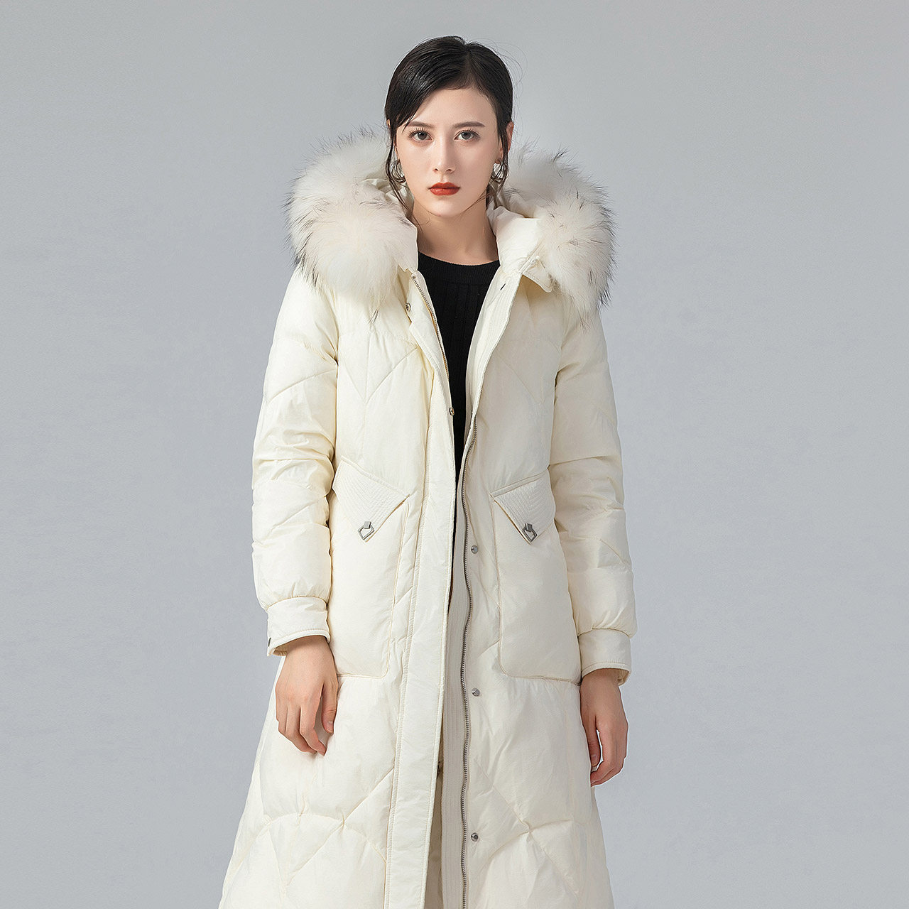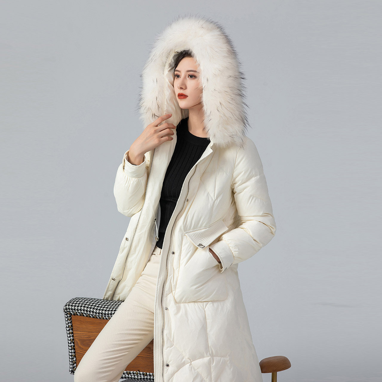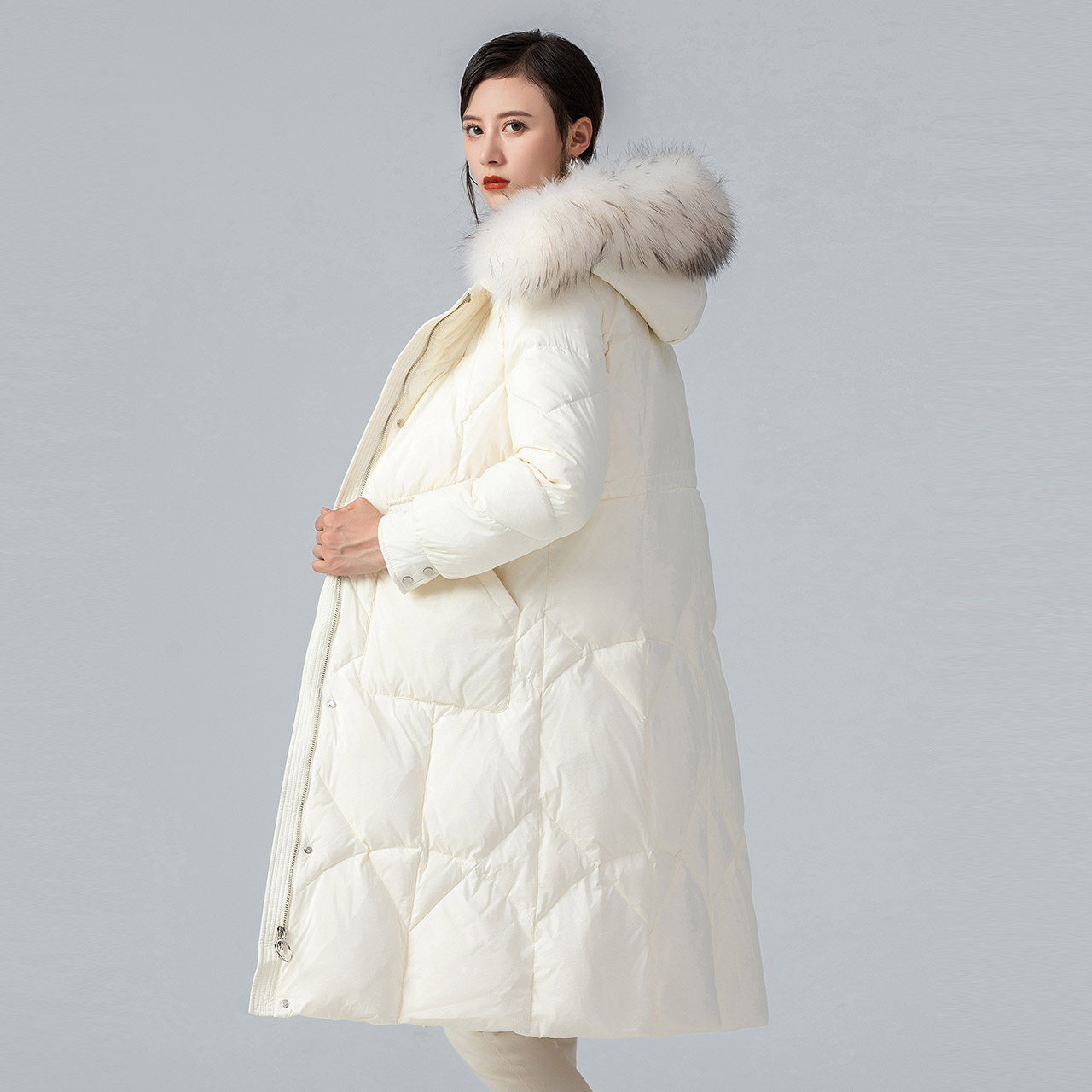 Демисезонный длинный элитный пуховик для отдыха, средней длины