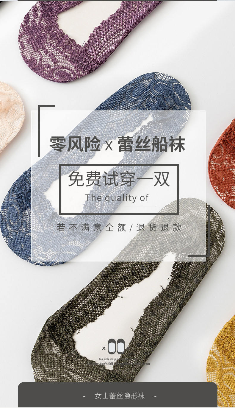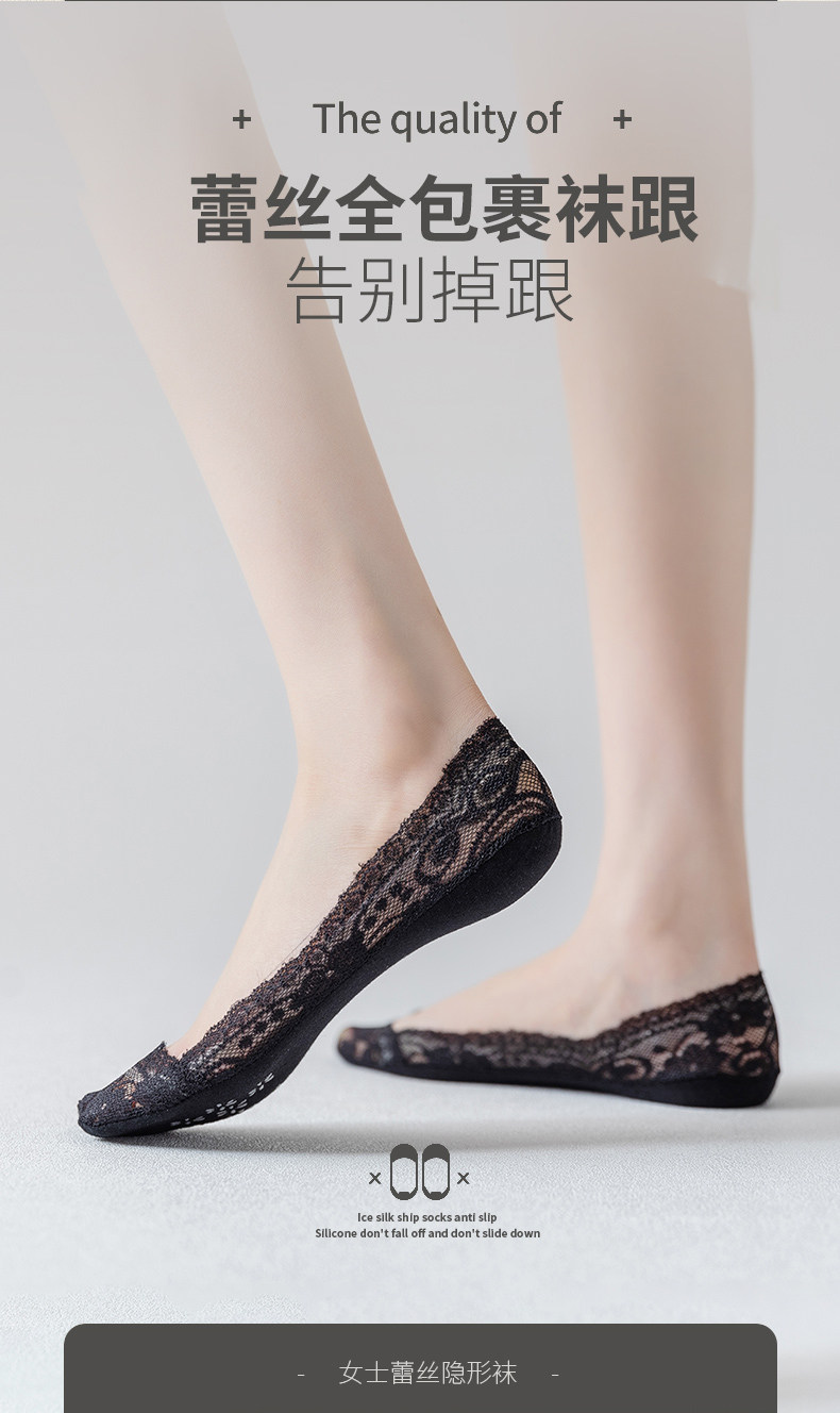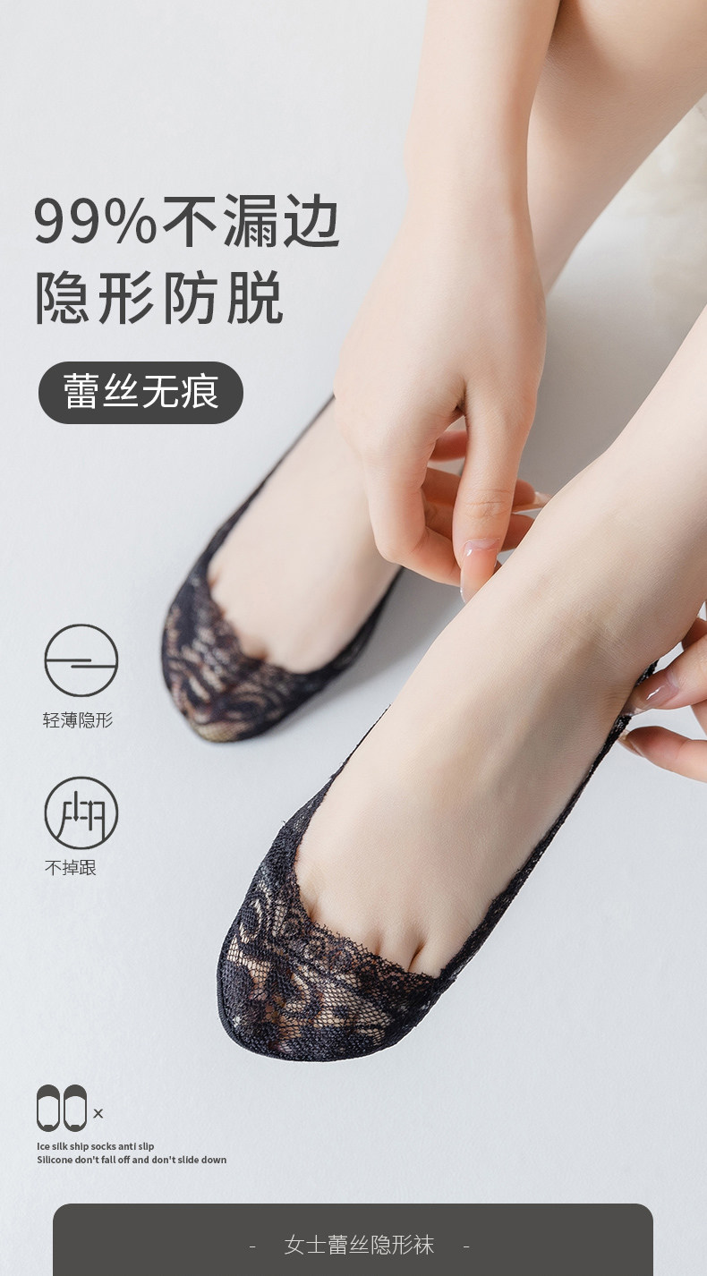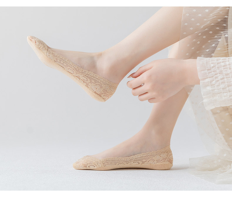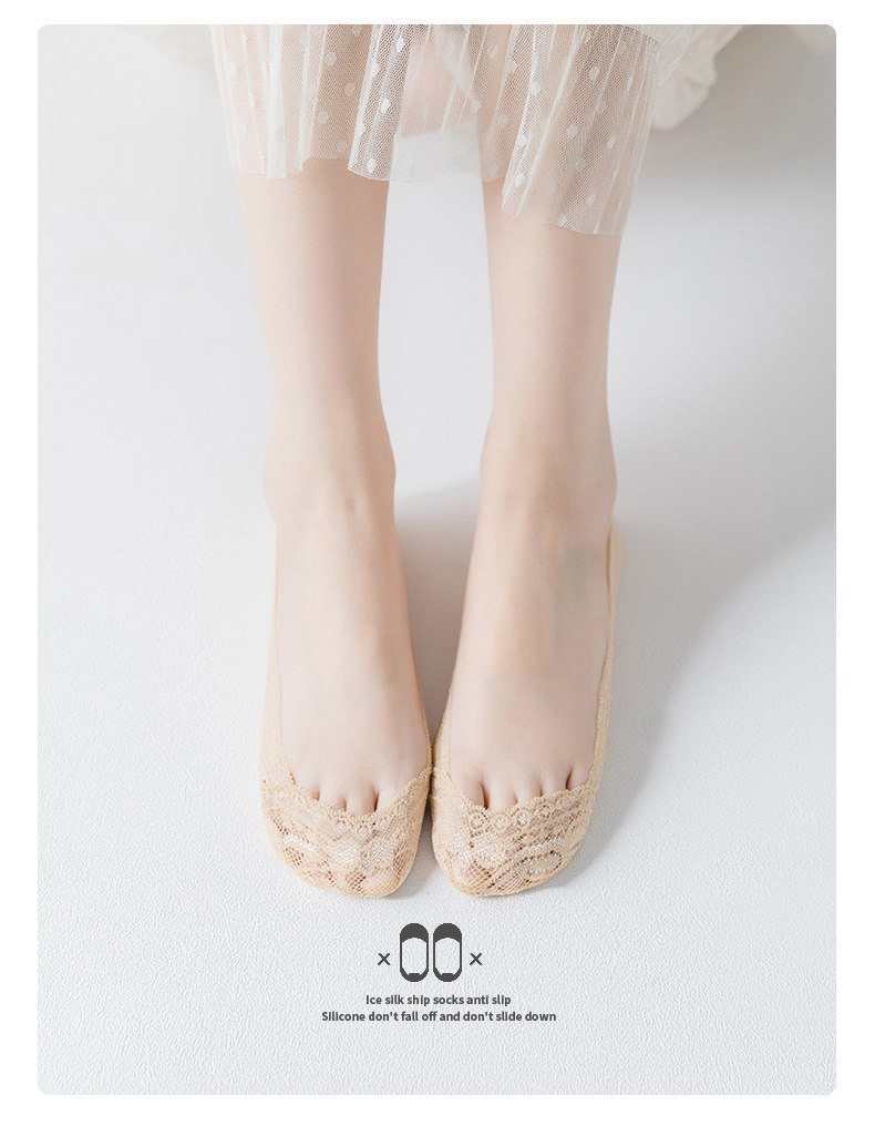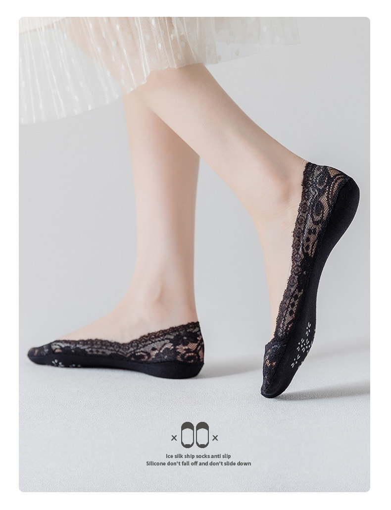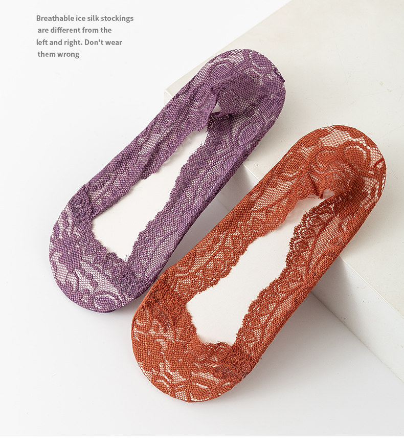 Летние тонкие кружевные хлопковые шелковые невидимые нескользящие носки