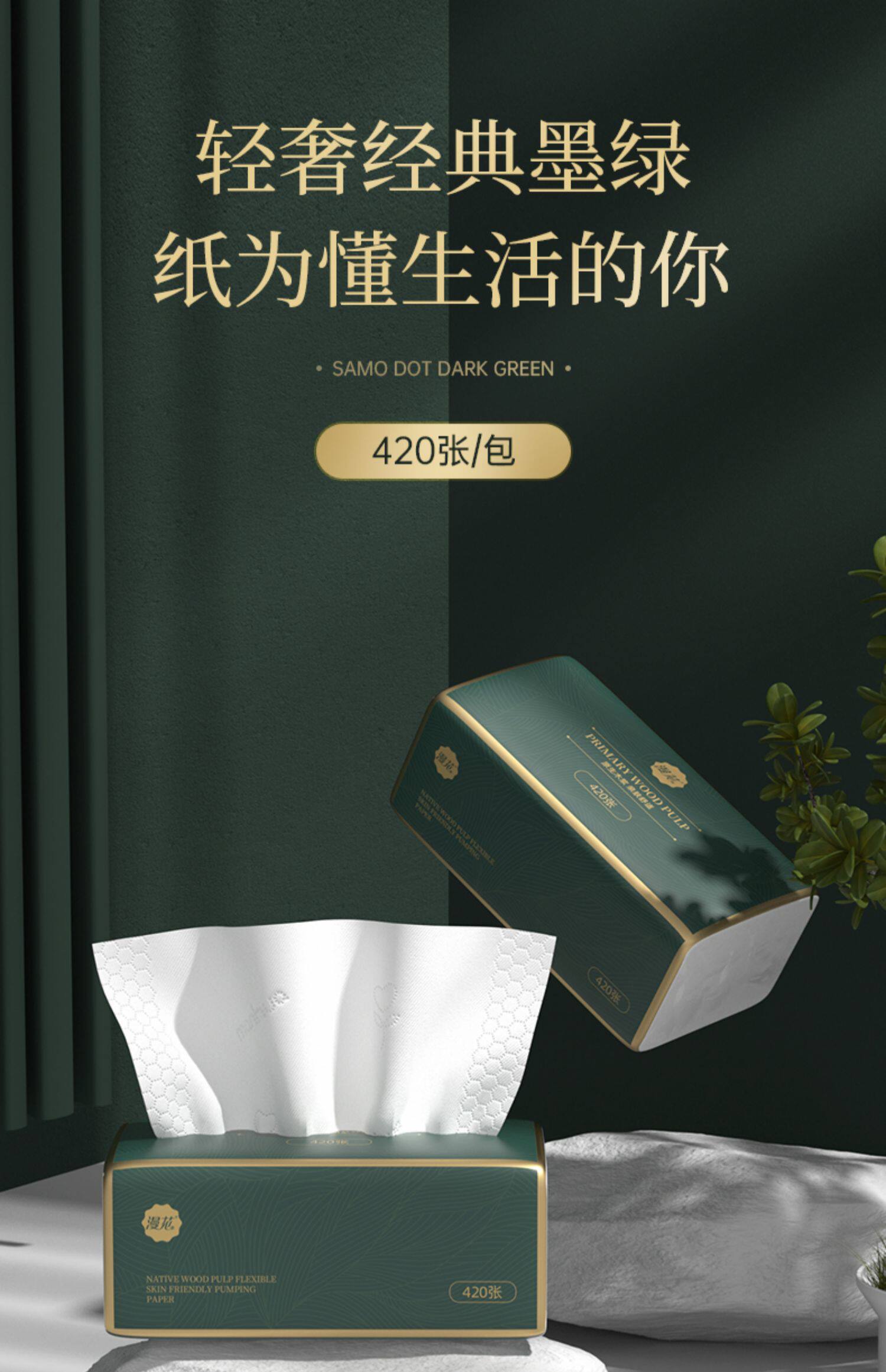 Манхуа 20 больших мешков с темно -зеленым насосом Домашнее салфетка фасада, салфетка, туалетная бумажная полотенца, цельная коробка оптом большой номер большой размеры